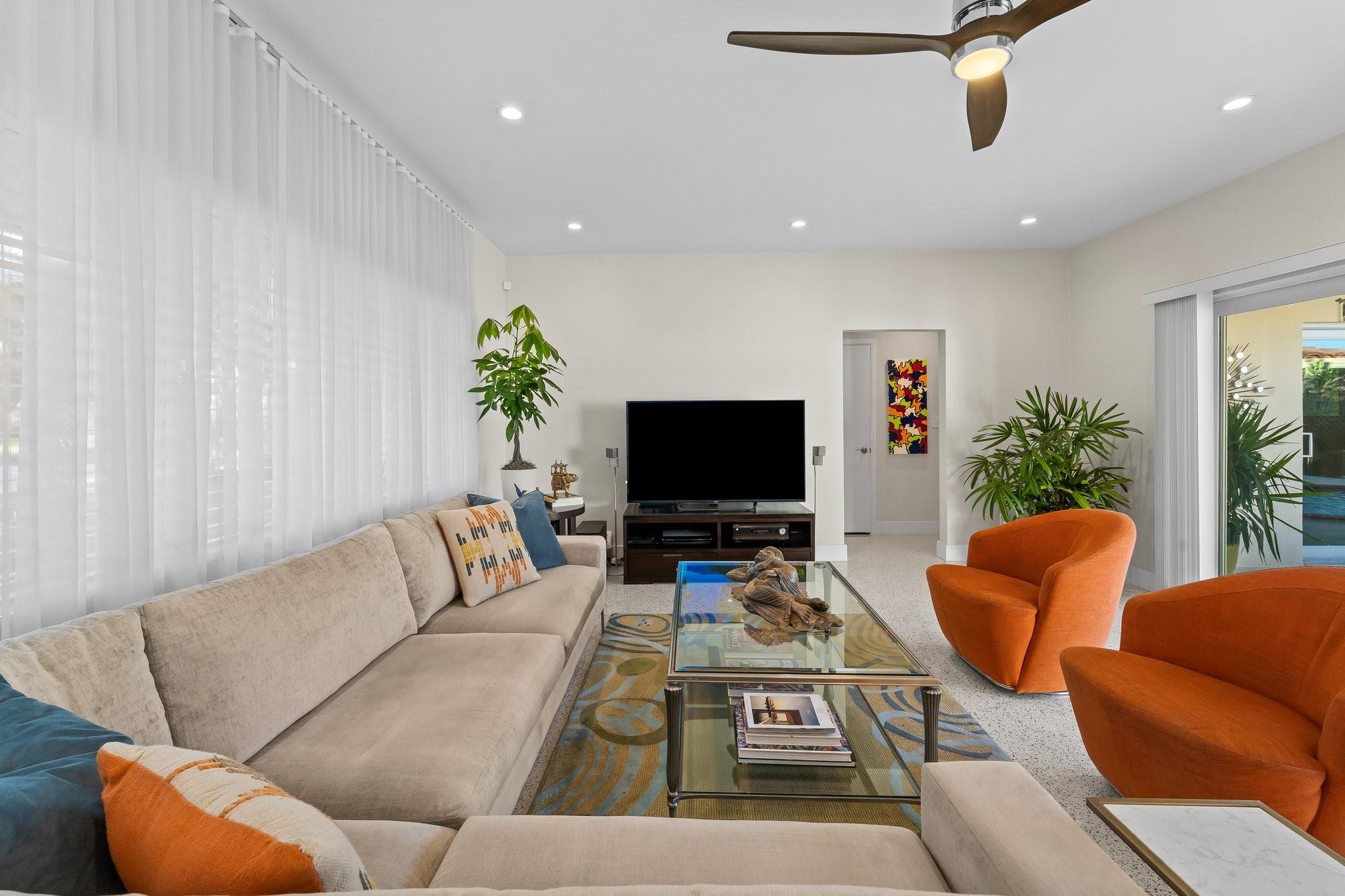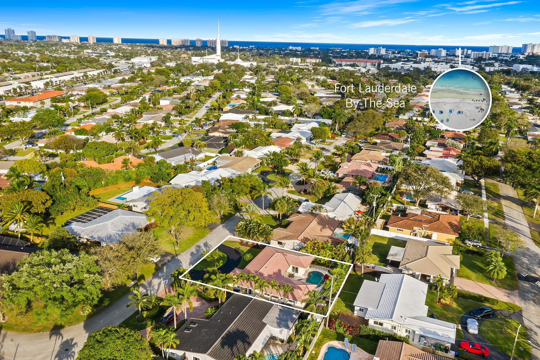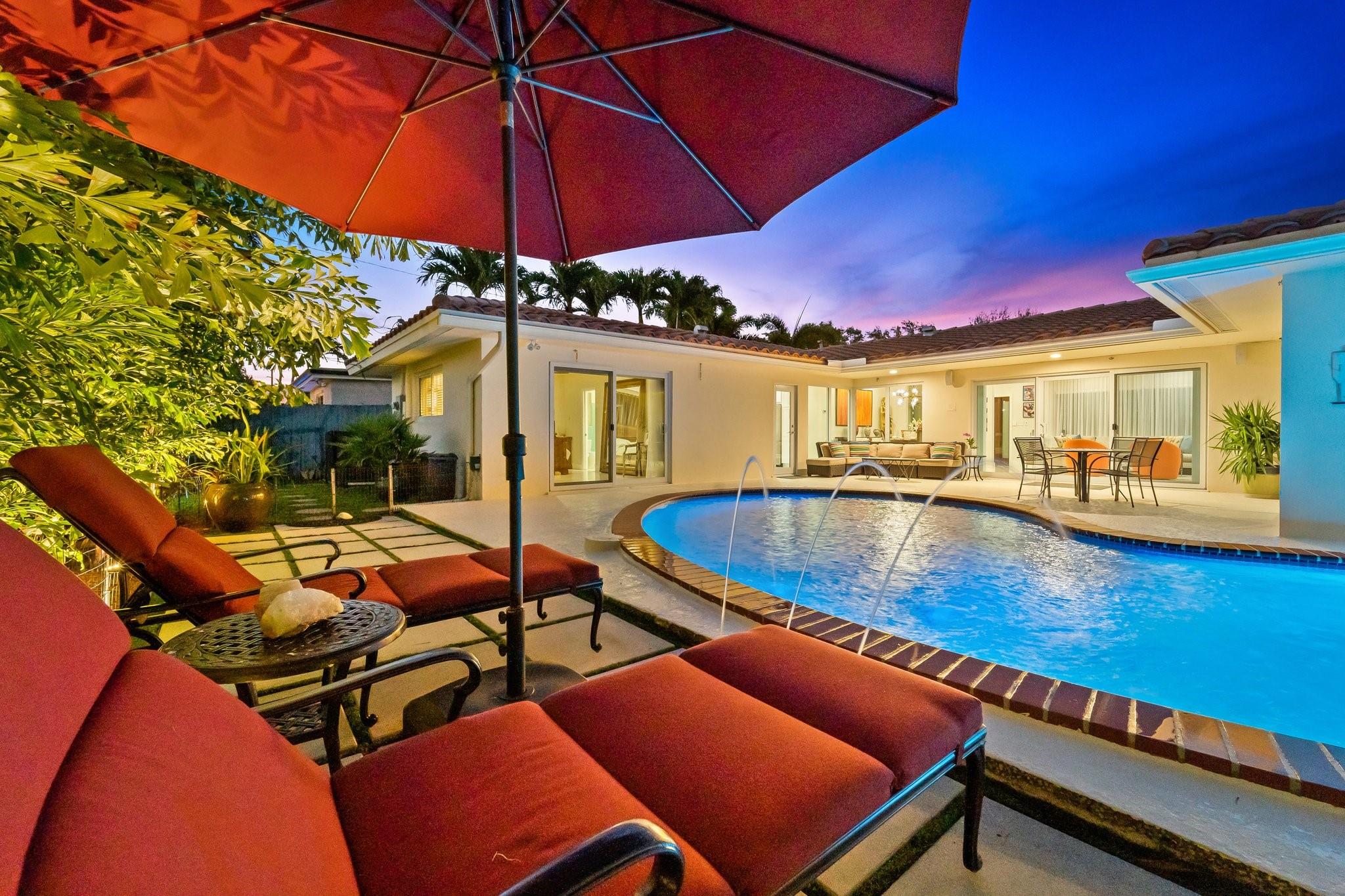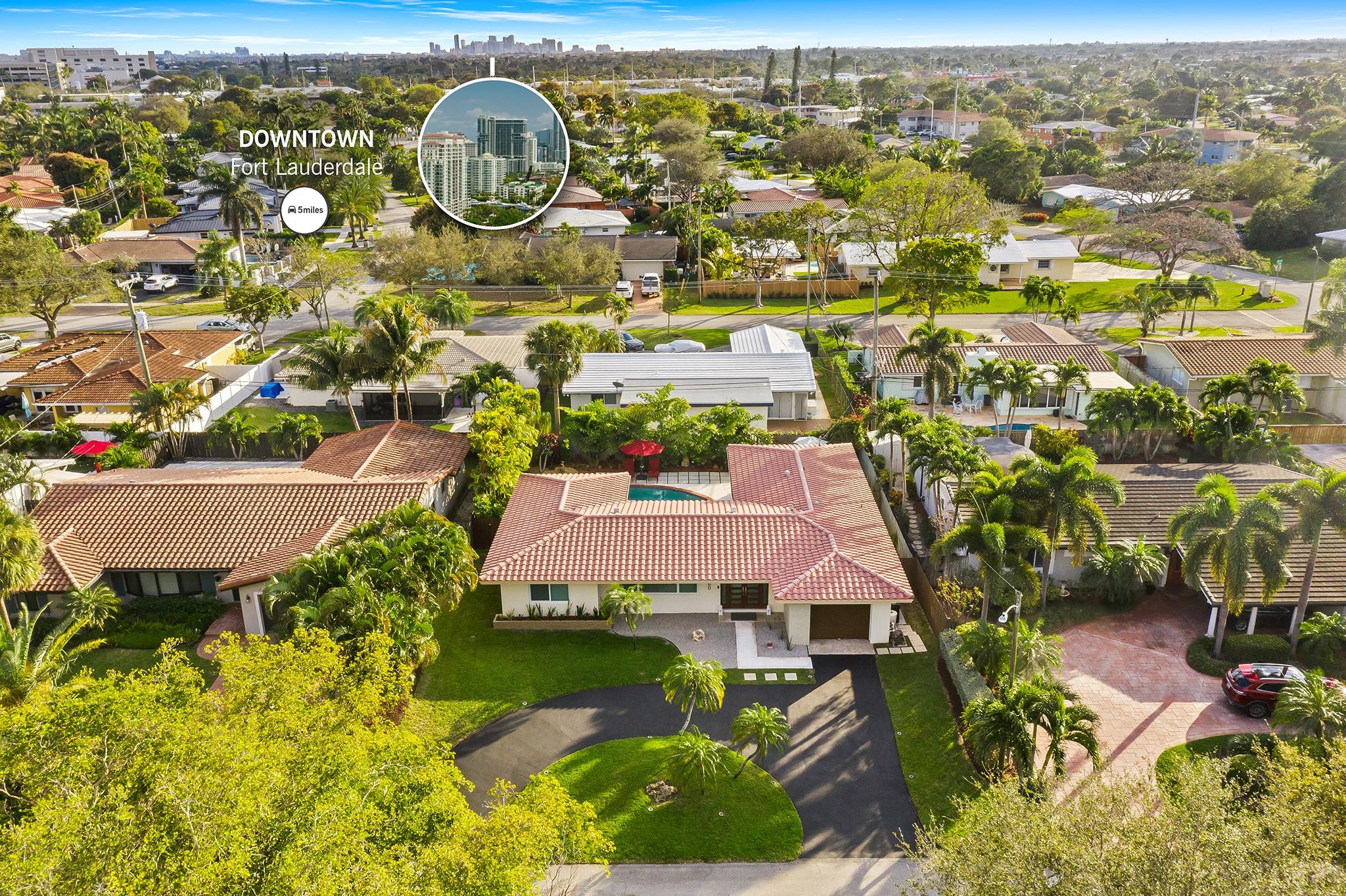 Experience the epitome of mid-century charm blended with modern luxury in the prestigious Coral Ridge neighborhood, just minutes from the pristine beaches and the vibrant heart of Fort Lauderdale. This exquisite fully renovated residence, nestled within a tranquil setting, offers an unparalleled lifestyle with proximity to the Coral Ridge Golf and Country Club, Wilton Manors, Las Olas's shopping and dining delights. The home's thoughtful split floor plan includes an adaptable office space, seamlessly doubling as a fourth bedroom. Interior spaces are bathed in natural light, thanks to expansive walls of glass that forge a harmonious connection between the indoors and a mesmerizing outdoor courtyard and saltwater pool.