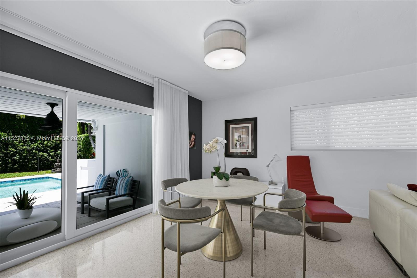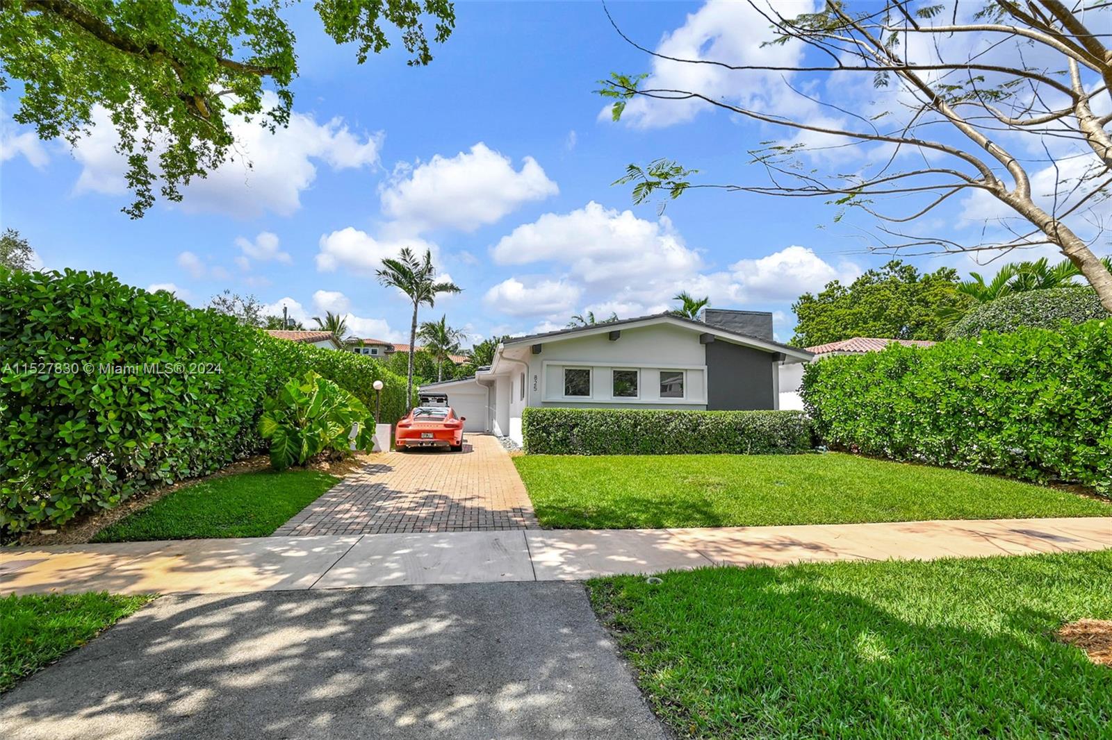 Excellent opportunity to own this modern home on prime location of coral gables golden triangle steps from Biltmore Hotel. Located in much desired tree lined street within walking distance to parks, recreation, markets and downtown coral gables. House has been updated with new bathrooms, high impact windows,italian kitchen with Miele and Sub zero appliances, bright spaces with separate dining, living and extra area to entertain. One car garage. Walk into a foyer which separates both entertaining spaces and your private 3 bedroom suites with many closet space. Walk out to private terrace/patio area from both dining living through wall to wall glass modern sliding doors combining the inside with the outside of home. Salt water pool and patio is privately fenced with surrounding landscaping.