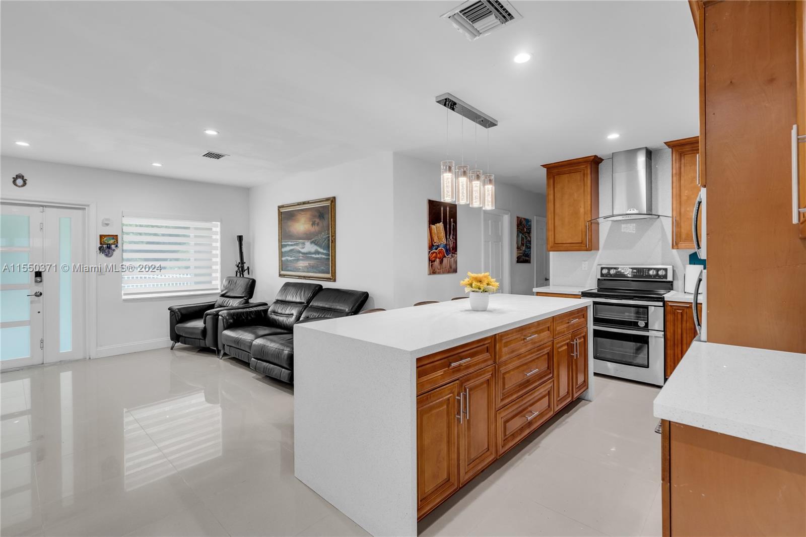 Indulge in the pleasures of SoFlo living within this exquisite residence. Welcome to a stunning modern pool home nestled on a charming corner lot, designed with entertainment in mind. Boasting three bedrooms and a bonus room, this property offers ample space for relaxation and recreation. Step into the heart of the home, where an open kitchen adorned with elegant quartz countertops, an XL kitchen island, double oven, and a spacious refrigerator awaits. With impact windows and doors, a concrete wall fence enveloping the entire property, and an electric gate with 2 entrance, privacy and security are ensured. Outside, discover a secluded yard complete with a heated pool, providing the perfect oasis for leisure and serenity. Modern driveway with space for a boat/trailer and 6 cars