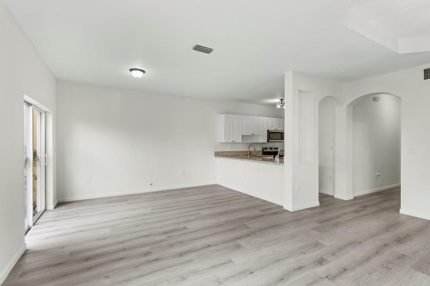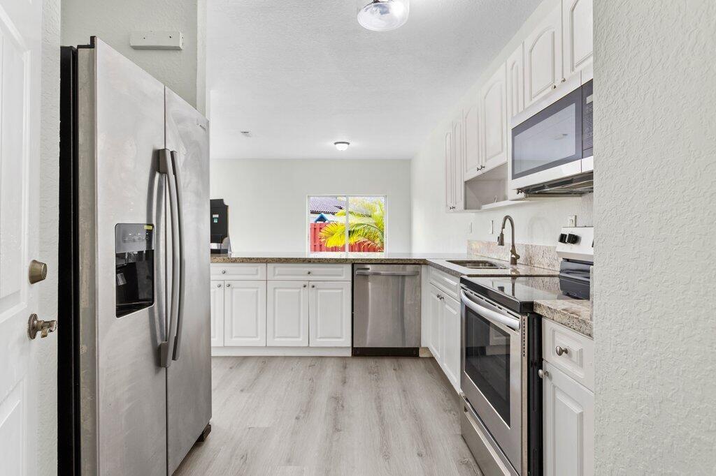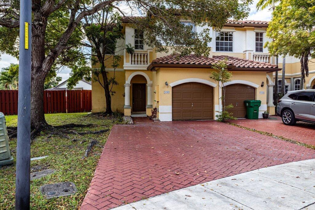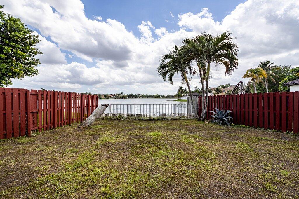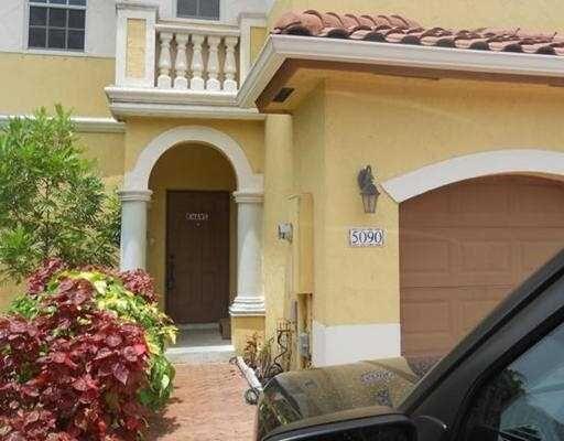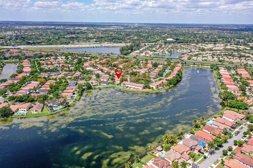 Fantastic Corner Lake View unit Townhouse in Gated Community 3 bedrooms, 2,5 bathrooms, 1 car garage and very large private backyard. kitchen with granite counter tops, stainless steel appliances, new flooring, and bathrooms, fresh painting, ac- unit outside new ,NEW PVC PIPES, lots amenities in Santorini at Vizcaya.