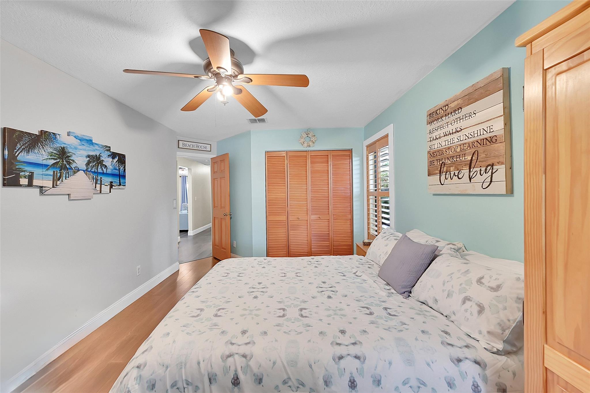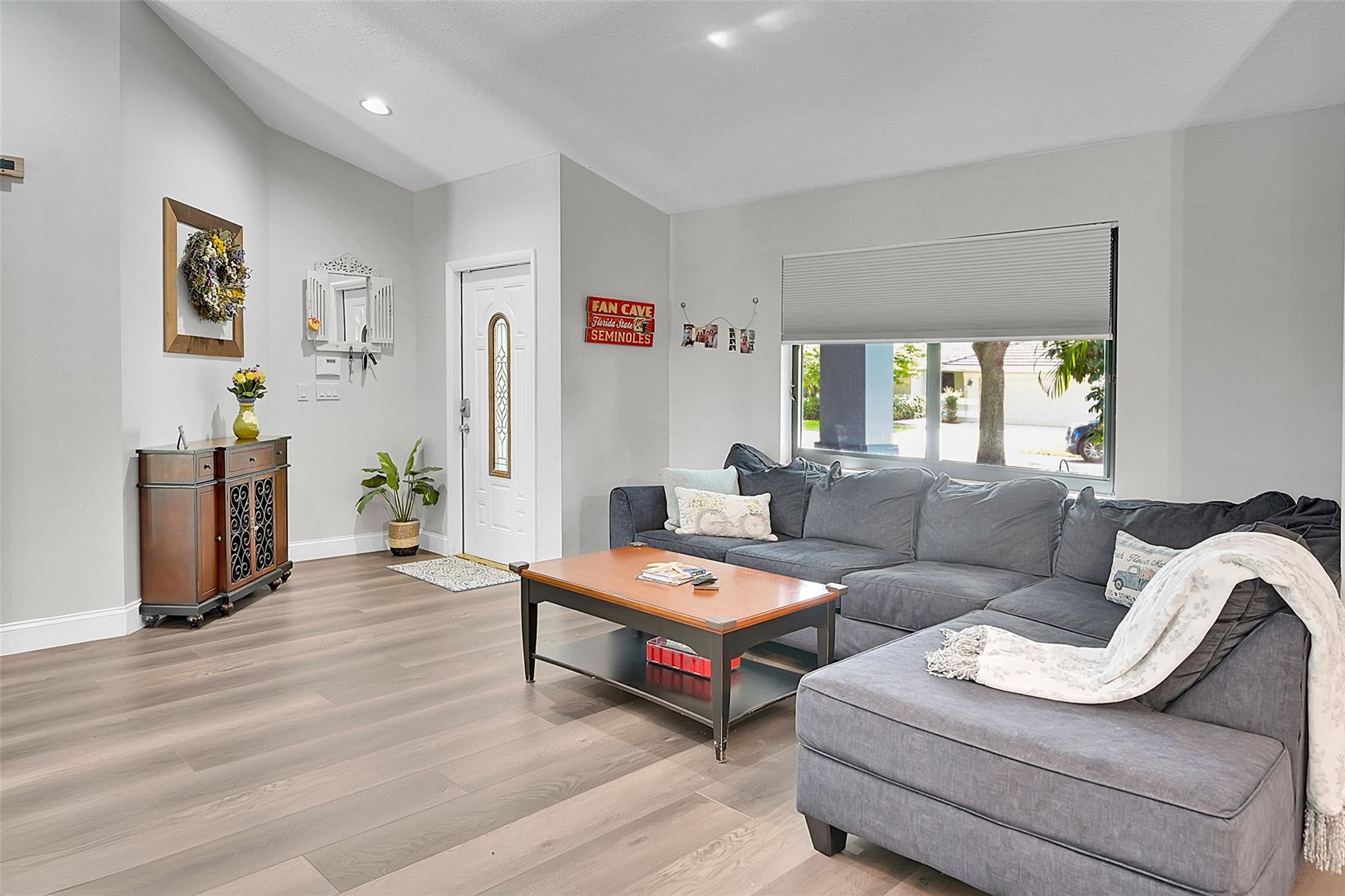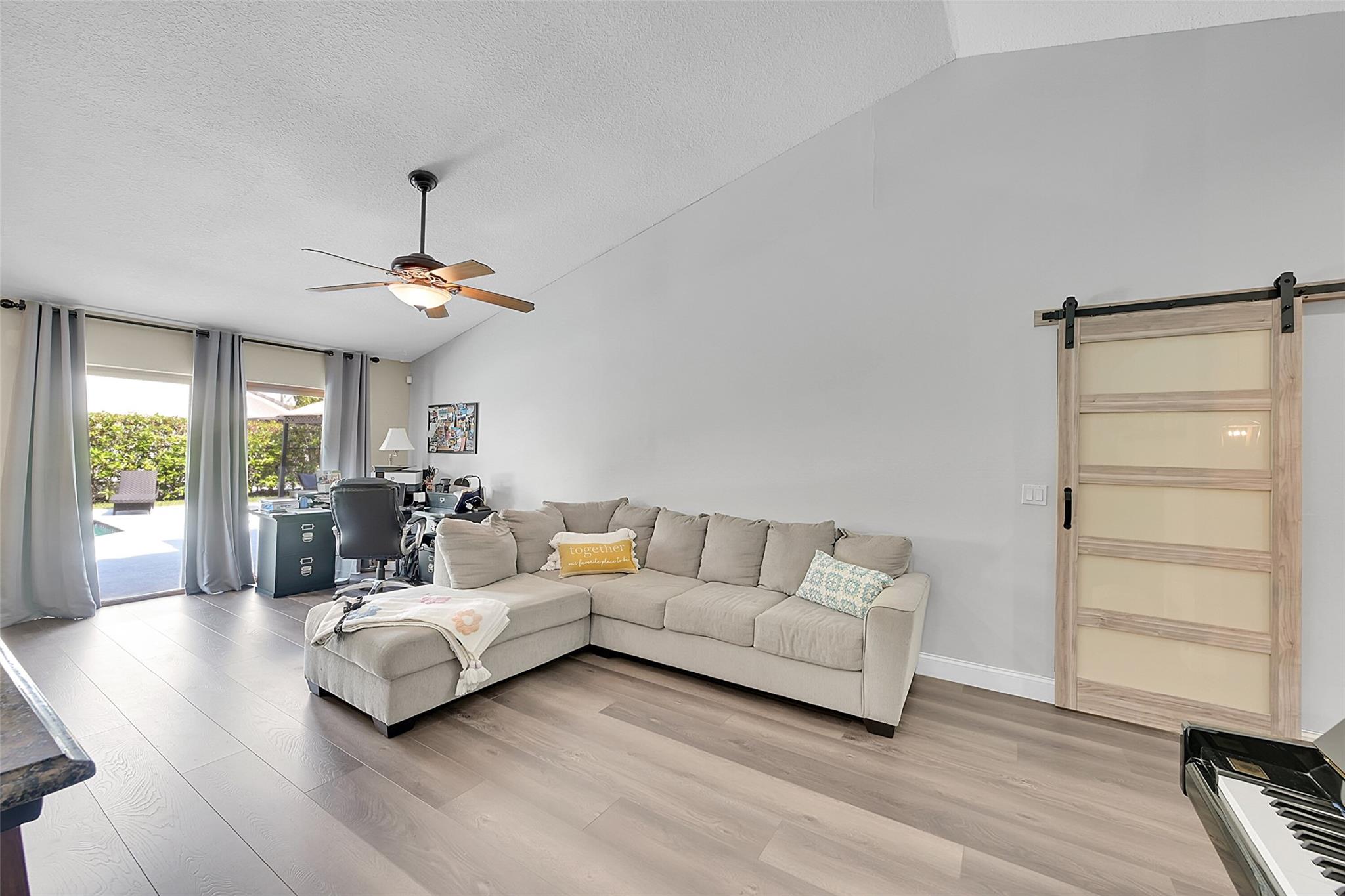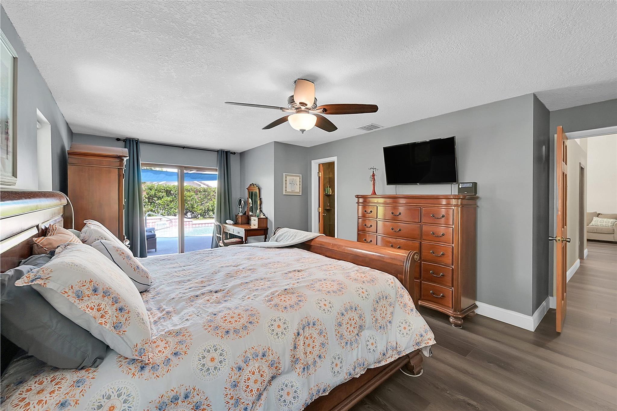 Magnificent 4/2 home in highly sought after Forest Ridge. Featuring: LOW HOA, a cul-de-sac, DIRECT access to The Ridge with amenities such as pickleball, tennis, community pools and basketball courts. WALK to TREE TOPS PARK. FULL IMPACT WINDOWS AND GARAGE, 2-car garage, LUXURY vinyl flooring throughout the OPEN CONCEPT family & dining room w/built-ins & wood shiplap. The kitchen features SS appliances, double ovens, granite countertops, wood cabinetry & breakfast bar. The primary ensuite boasts a walk-in closet, double sink vanities, large shower and a tub with private patio access. Secondary bathroom is upgraded with a frameless shower enclosure and shower niche. Outside, there's an EXTRA LONG pool 15X35 AND SPA flowing into the pool. NEWER ROOF (2018) A/C (2019) WASHER & DRYER (2017)!