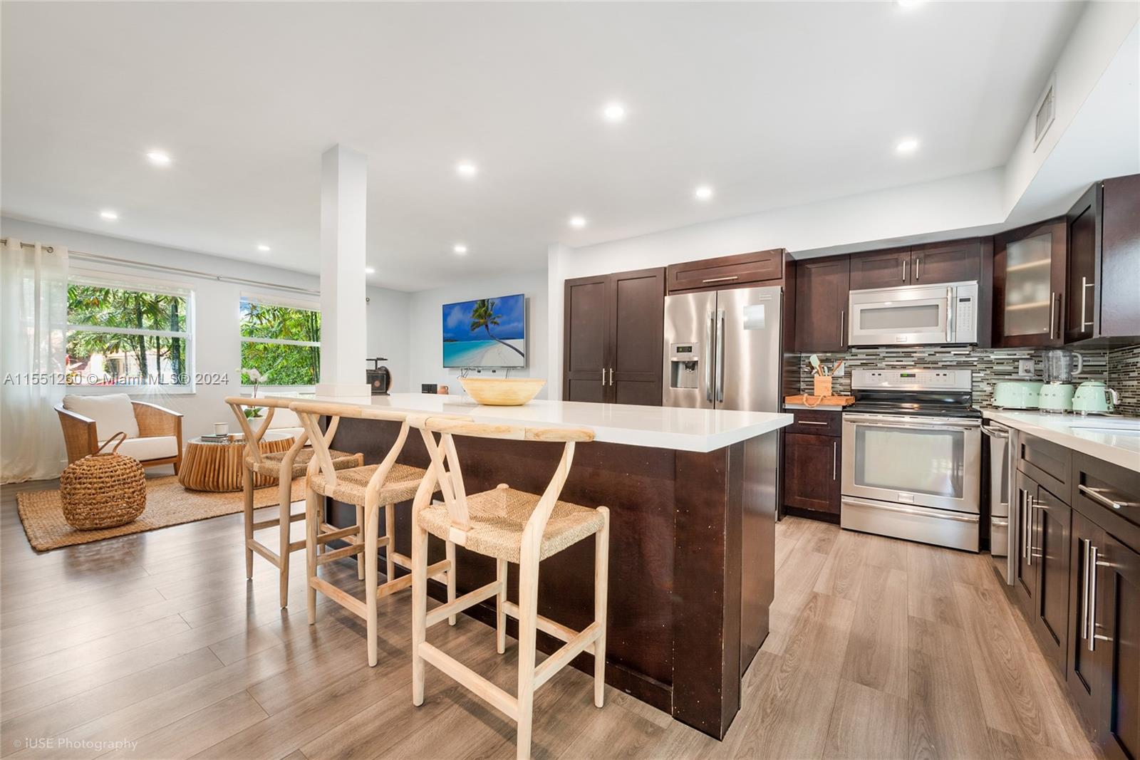 Centrally located in Coral Gables is the key to this home presenting a rare opportunity to experience the perfect blend of convenience and charm. Renovated two-story with 4 bed, 3.5 bath boasts sun-drenched social areas perfect for hosting gatherings. The modern kitchen features a spacious island and expansive counter overlooking the dining area. The convenience of a downstairs oversized bedroom w/ensuite bathroom adds flexibility, while upstairs, the primary suite plus two additional bdrms await, there's plenty of space for family and guests. Enjoy ample closet storage throughout and a finished, climate-controlled garage ideal for a gym. Embrace the Coral Gables lifestyle with easy access to downtown Gables, renowned restaurants, upscale shopping destinations like Merrick Park and Miracle