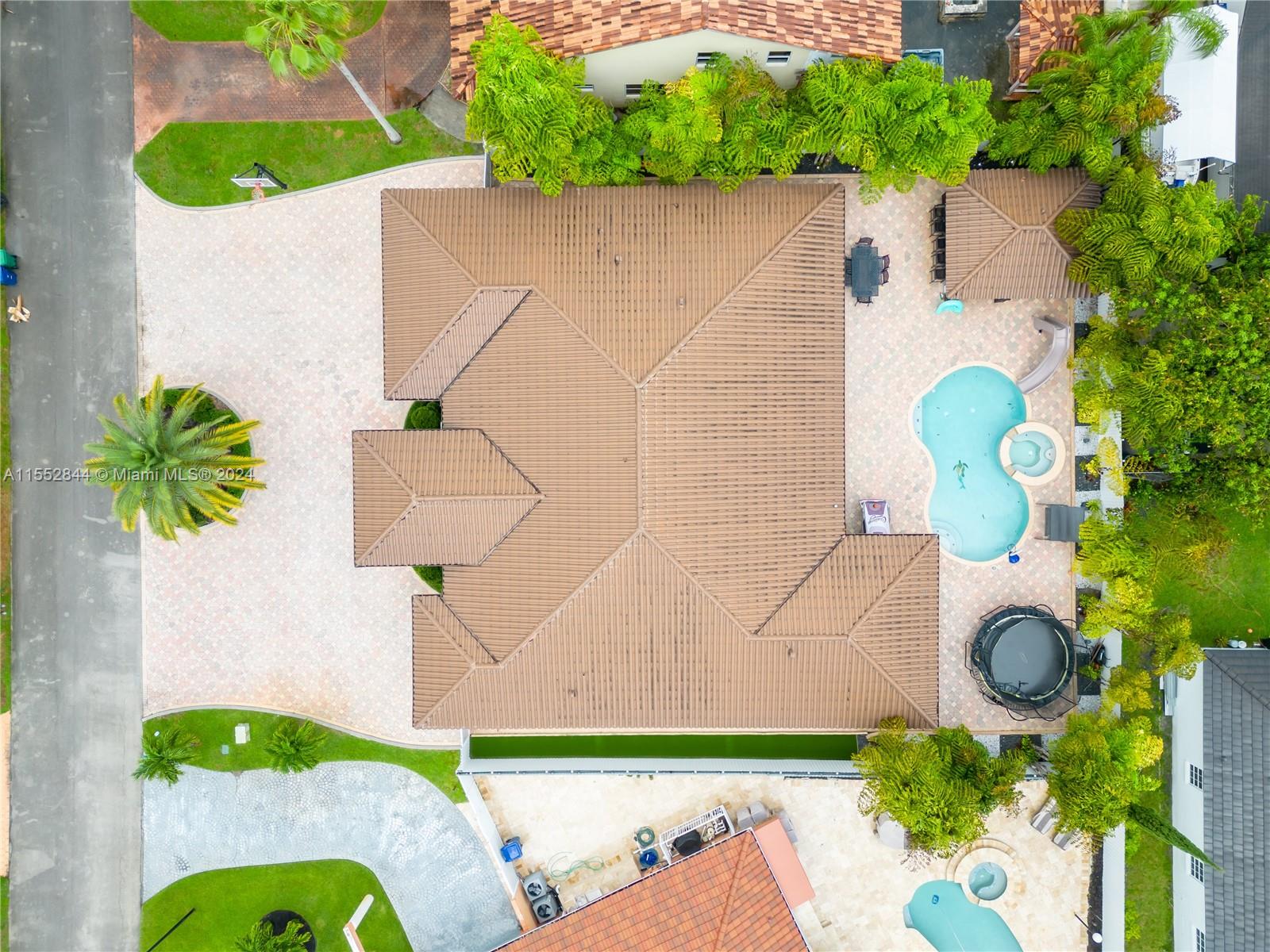 Welcome to this stunning 5-bedroom, 3-bathroom home located in the highly sought-after North Links Country Club in Hialeah. With its high hat ceilings reaching 12 feet, this residence immediately impresses with its sense of grandeur and sophistication. The splendid tri-split floor plan offers privacy and functionality, while the porcelain floors measuring 25 x 25 inches or larger add a touch of luxury. With electronic surveillance ensuring security and surround sound wiring enveloping the entire home, you'll experience a modern and seamless living environment. Situated on an oversized lot spanning 11,700 square feet, this property offers ample space for family and friends to gather and special occasions. The master bath boasts a spectacular bathtub, providing a luxurious retreat.
