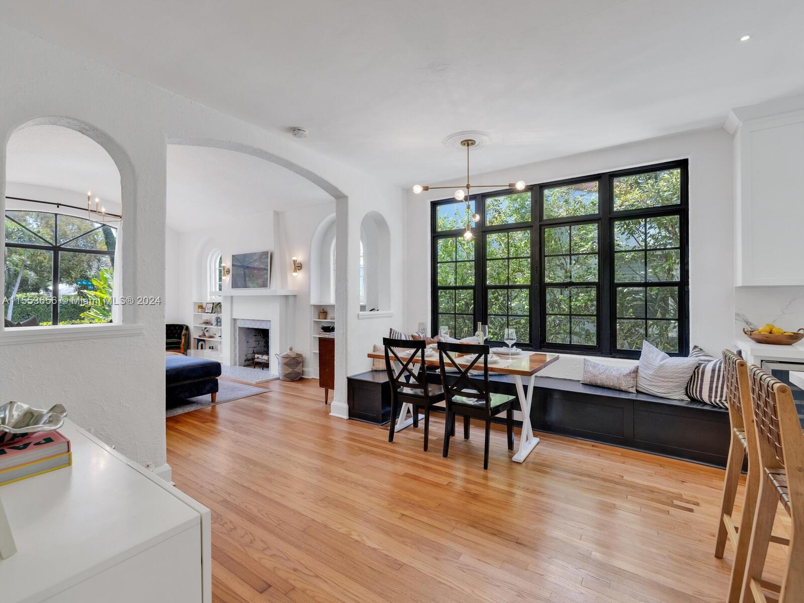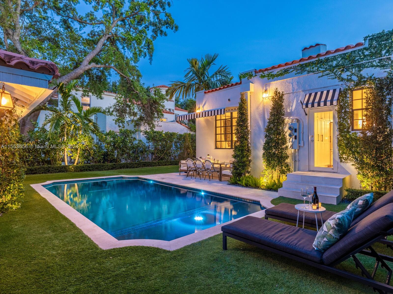 Welcome to Villa Bougainvillea! Discover your private sanctuary in this beautifully updated 1920s Spanish Med-Revival home and guest house! Perched on a hill and one of Miami Shores’ most charming homes, the three-bedroom main house is full of period character and great features: an enchanting front entry with tower detail and original door; bright open living with vaulted ceiling, hardwood floors, arch details, fireplace and gorgeous front picture window; magazine-ready updated gas range kitchen with wine cooler and storage galore; bright bedrooms; updated full bath; plus a powder room/cabana bath. The picture-perfect lush rear gardens include a sparkling scalloped-edge heated pool; covered dining patio; and a private one-bedroom 670 SF casita with living, kitchen, and spacious bathroom.