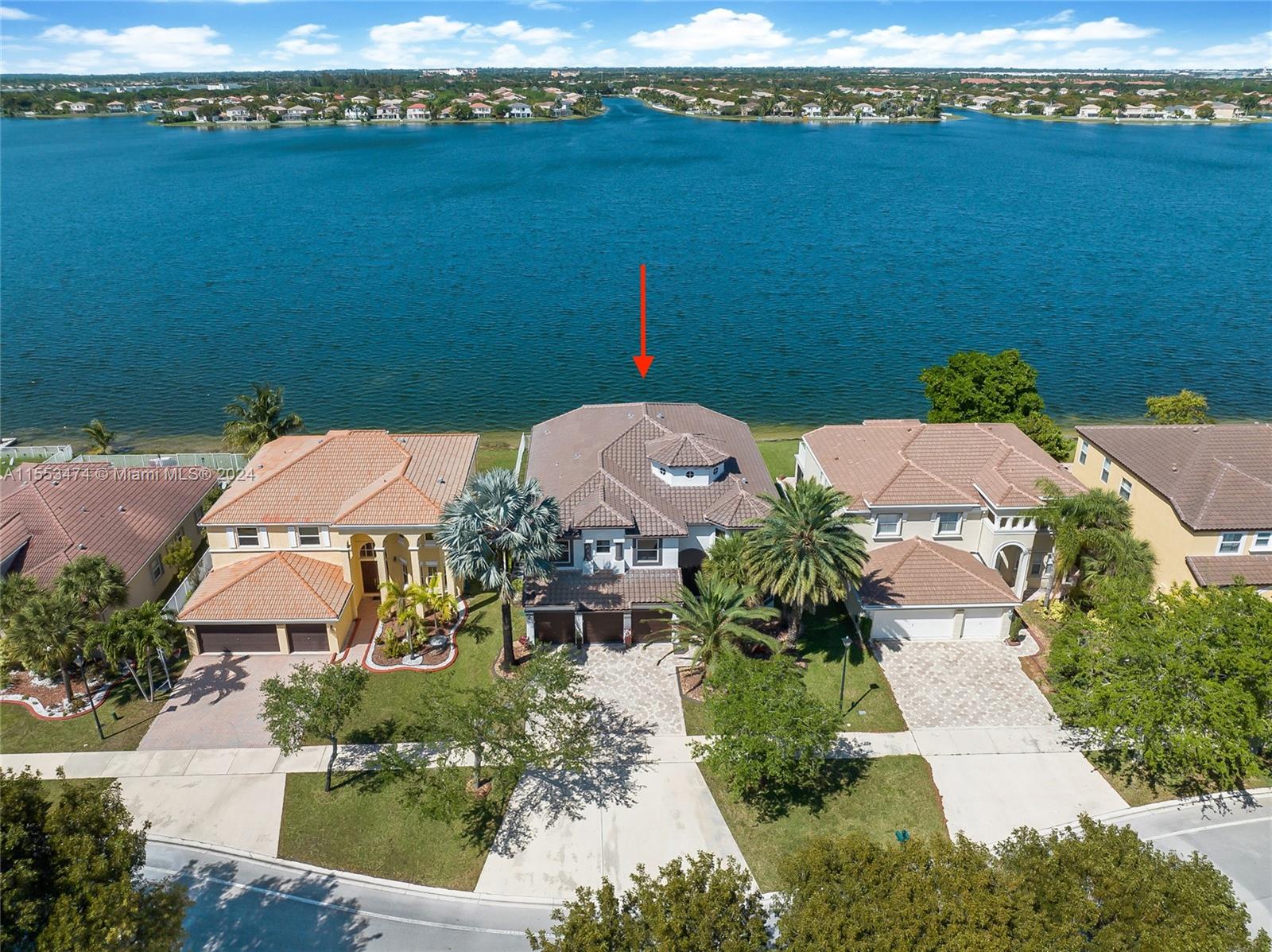 Exclusive waterfront opportunity in the resort, guard gated community of Riviera Isles! This stunning Verona model, 5-bedroom, 5.5-bathroom home with a 3-CAR garage boasts breathtaking wide lake views. New Roof replaced in 2022 with transferable warranty and 2024 New Impact Windows and Doors. This home features an open concept with high double-volume ceilings, providing an airy and spacious feel. The Primary Bedroom has a sitting area, open balcony and huge walk in closet. The gourmet granite kitchen includes plenty of counter space, built-in appliances, and an eat-in kitchen. 1 bedroom and 1 bath on the first floor with 2nd cabana bath. Parking for 6+ cars in driveway. Gym, Tennis, Resort Pool, Clubhouse, 24/7 manned gates!