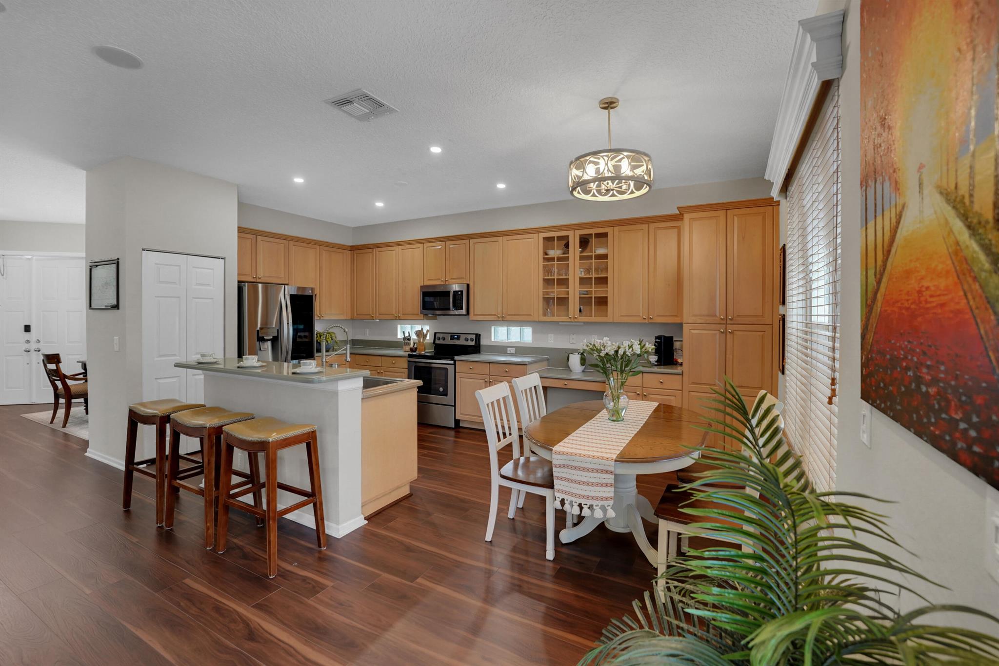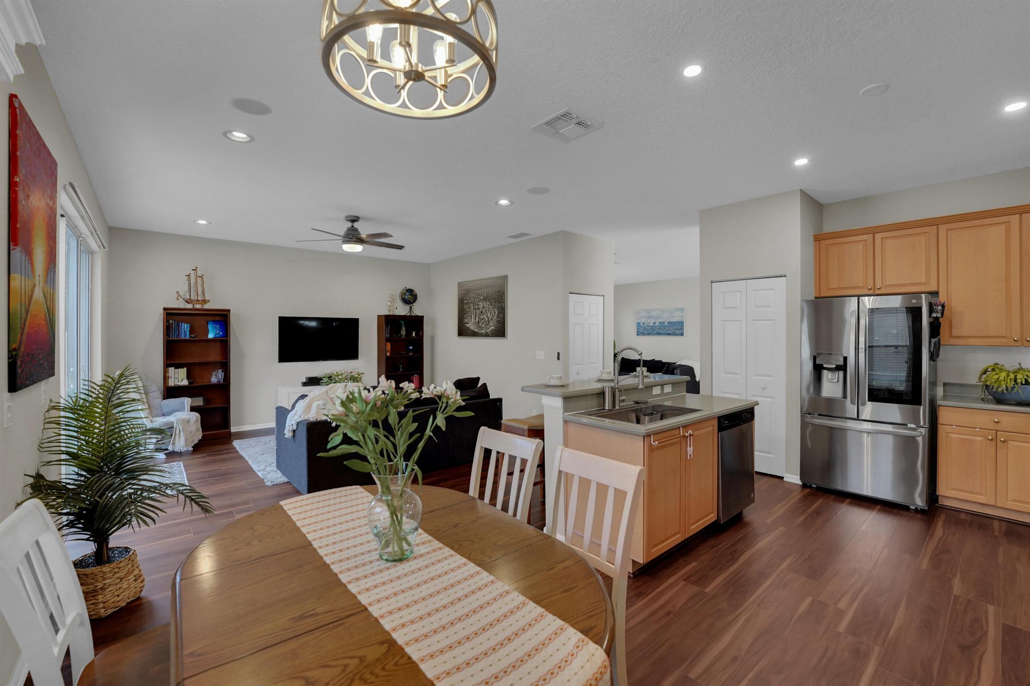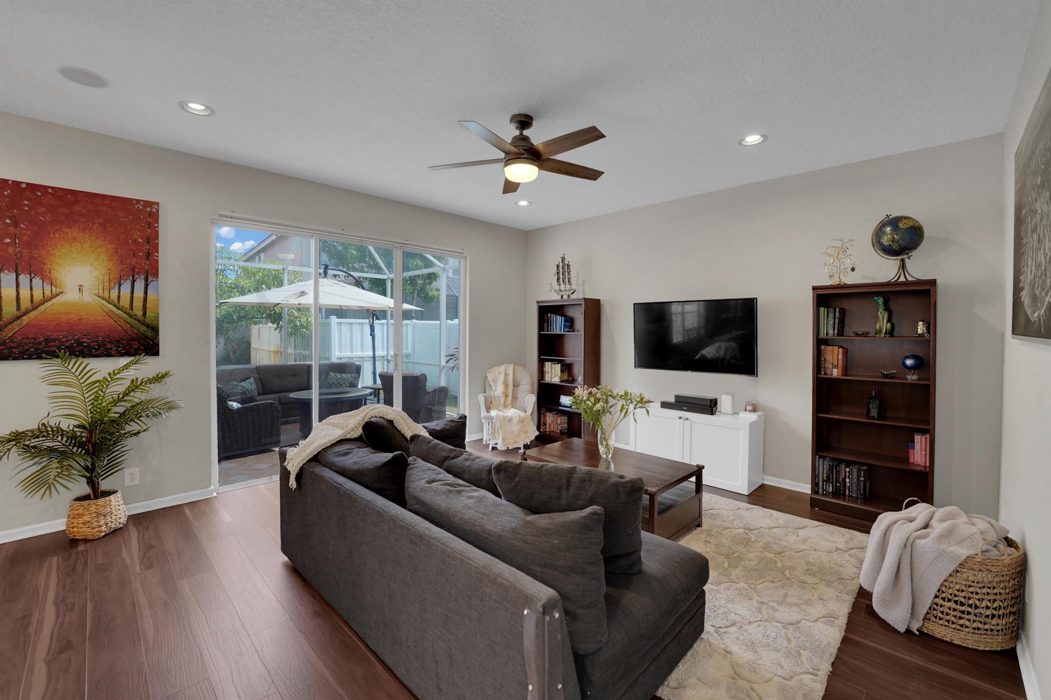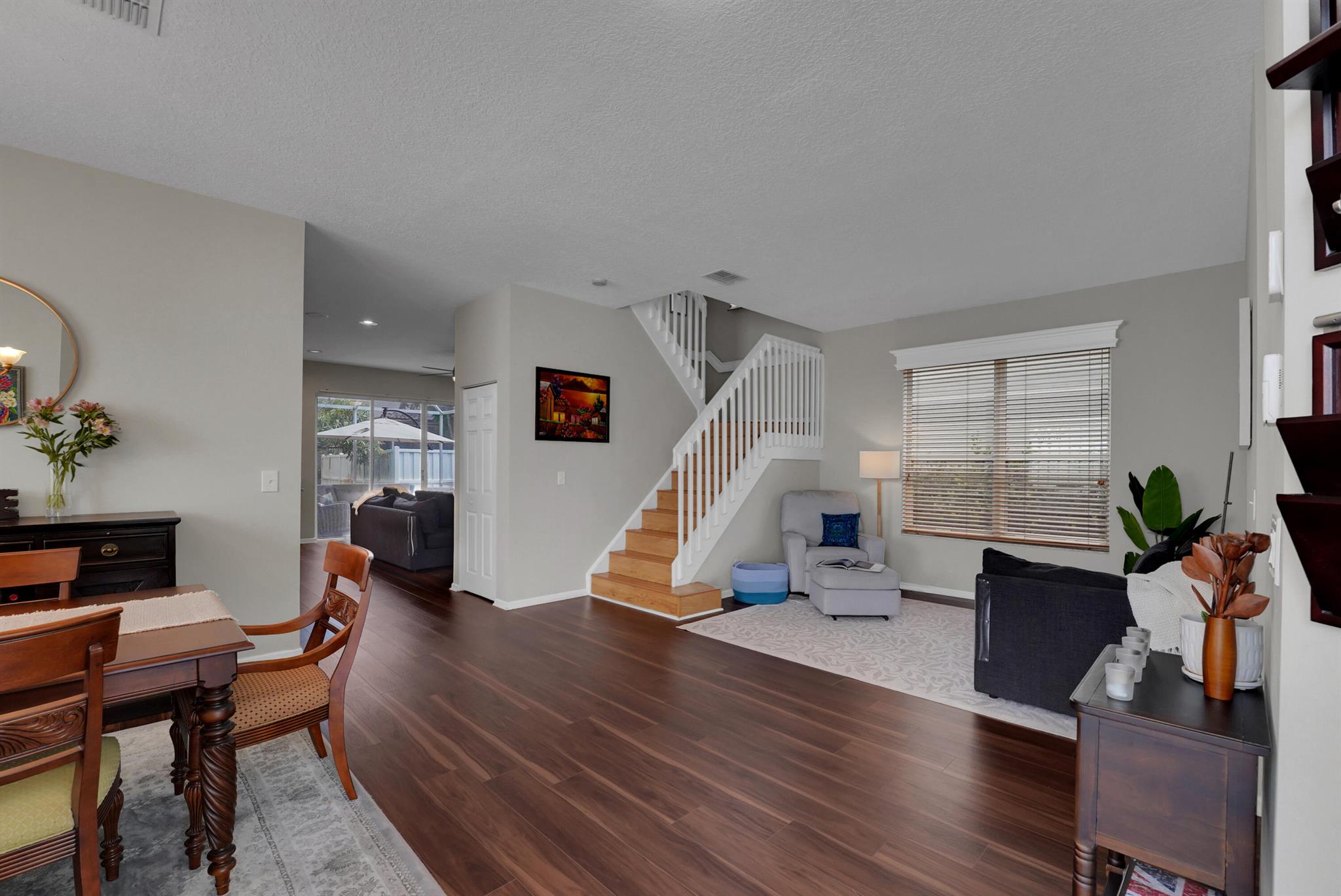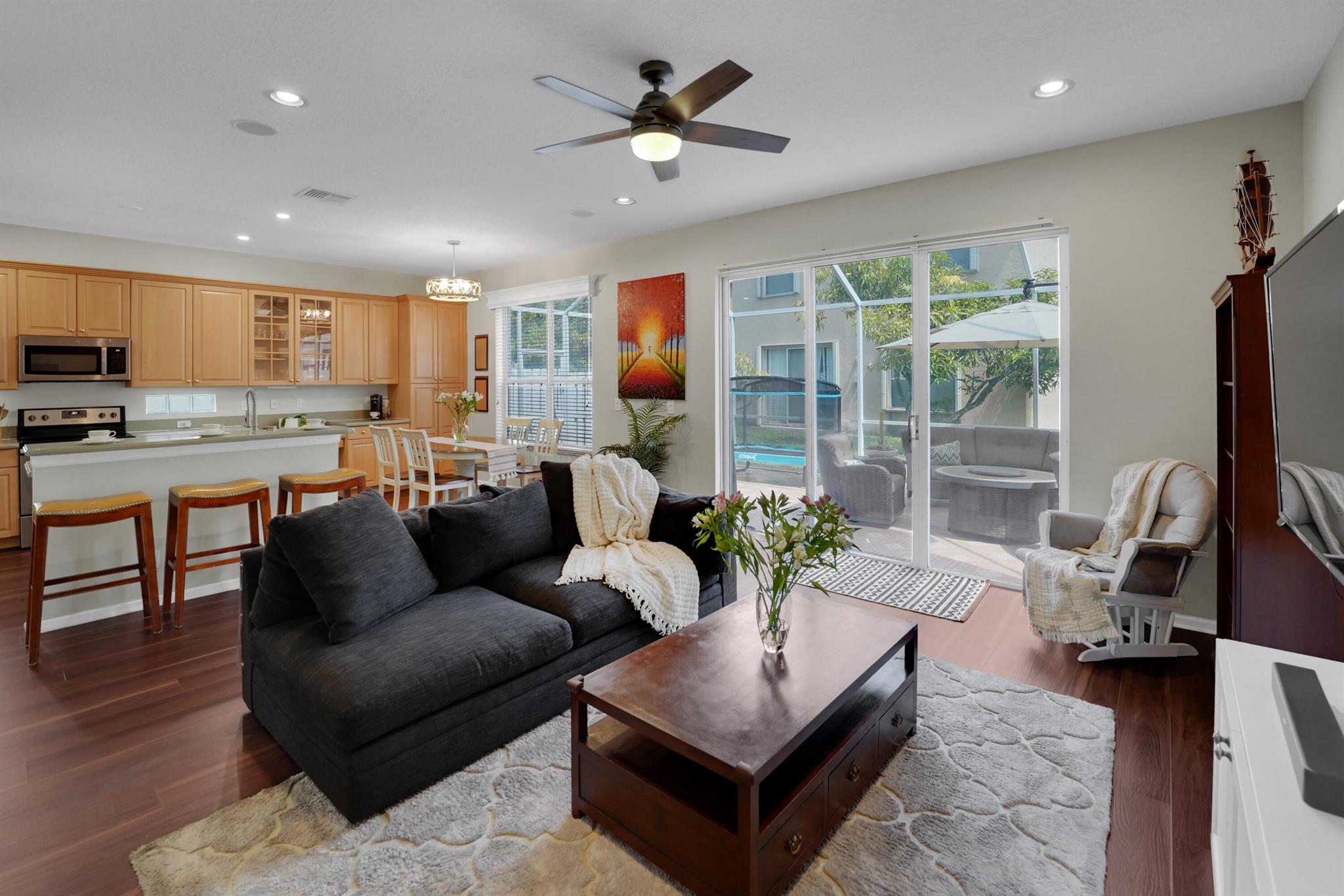 Picture yourself living in this gorgeous 5-bedroom, 3-bathroom, 2-story home in a gated community. This home is designed for entertainment and everyday living with plenty of space. Enjoy an open floor plan, high ceilings, upgraded kitchen, stainless steel appliances, plenty of cabinets, and abundant countertops. The kitchen adjoins the family room, dining room, and living room. Walk outside to your sizeable screen-enclosed patio with a new back yard PVC fenced. One bedroom and full bath are on the lower level, perfect for an elderly family member. You have four bedrooms on the upper level, including a spacious primary suite and laundry room. Enjoy resort-style amenities in this community, which include a pool, child play area, clubhouse, gym, and more. Welcome home!