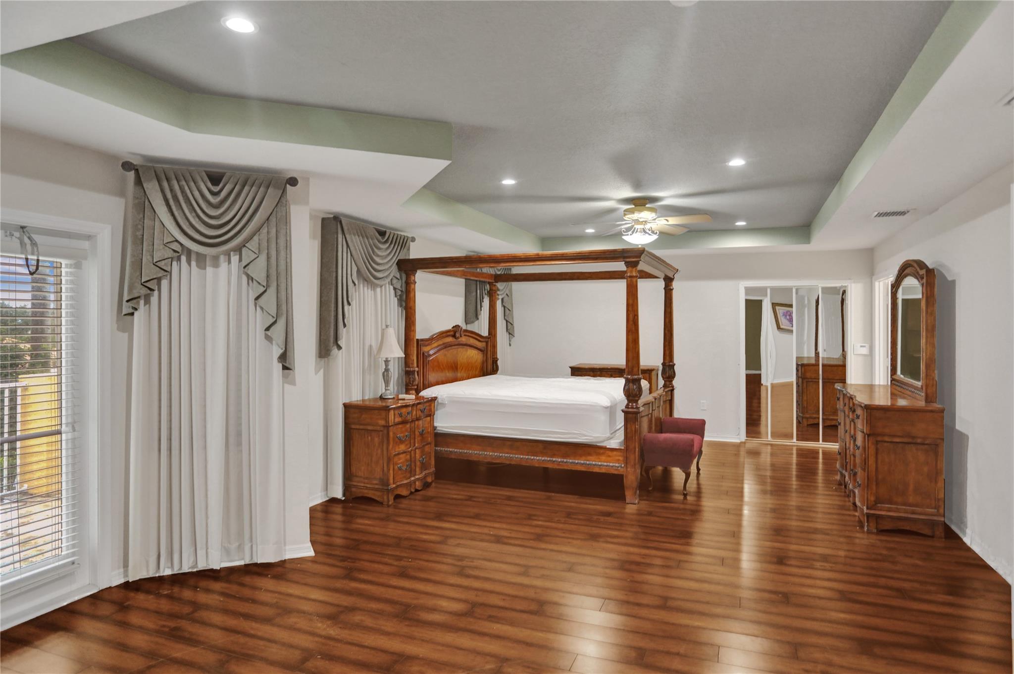 Almost 4,000 sq ft of living space! Exquisite 6 bedroom, 4 bath 2 story home in the prestigious gated community of Silver Lakes. Large, Open kitchen including a seat-in island, stainless steel appliances and breakfast nook. Huge layout offers one bedroom on first floor. Soothing water views from the dining/living, kitchen/breakfast and family room. Upstairs provides huge loft area and an oversized primary suite with an attached office space (6th bedroom) and large private balcony, walk-in closet & ensuite bathroom. Guest bedroom and bathroom and a Jack and Jill style bathroom connects the remaining 2 rooms. Backyard is perfect for entertaining and gatherings! Silver Lakes community is known for its exceptional amenities, including parks, playgrounds, tennis courts, and community pool.