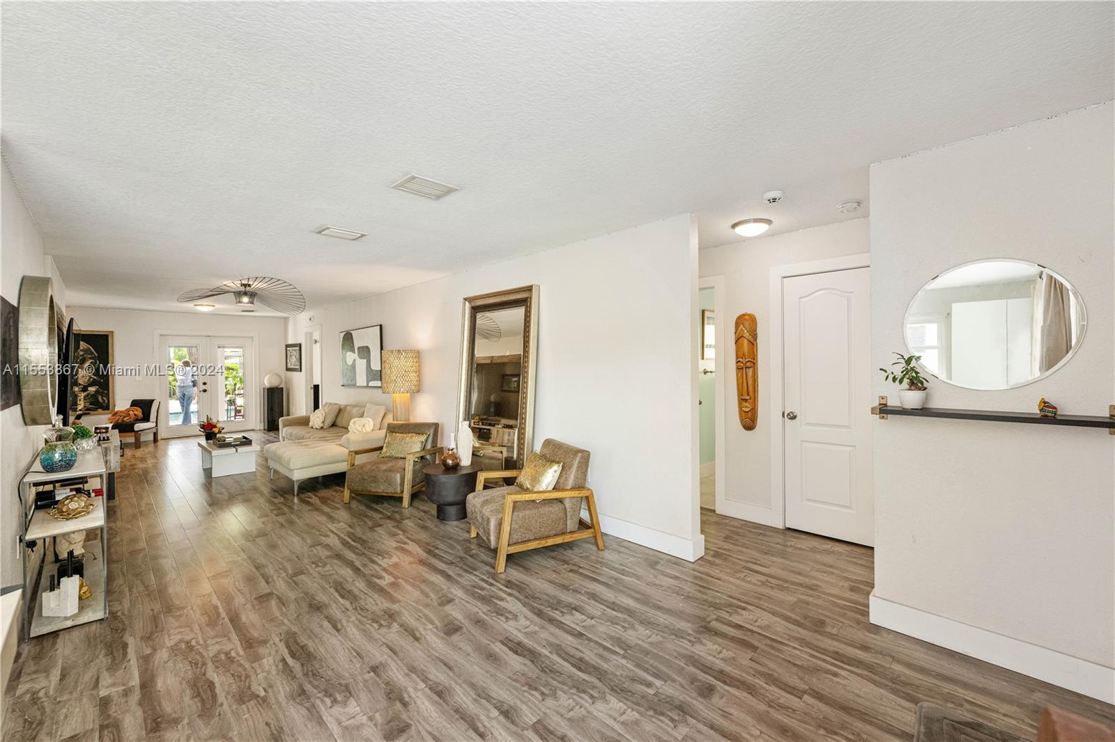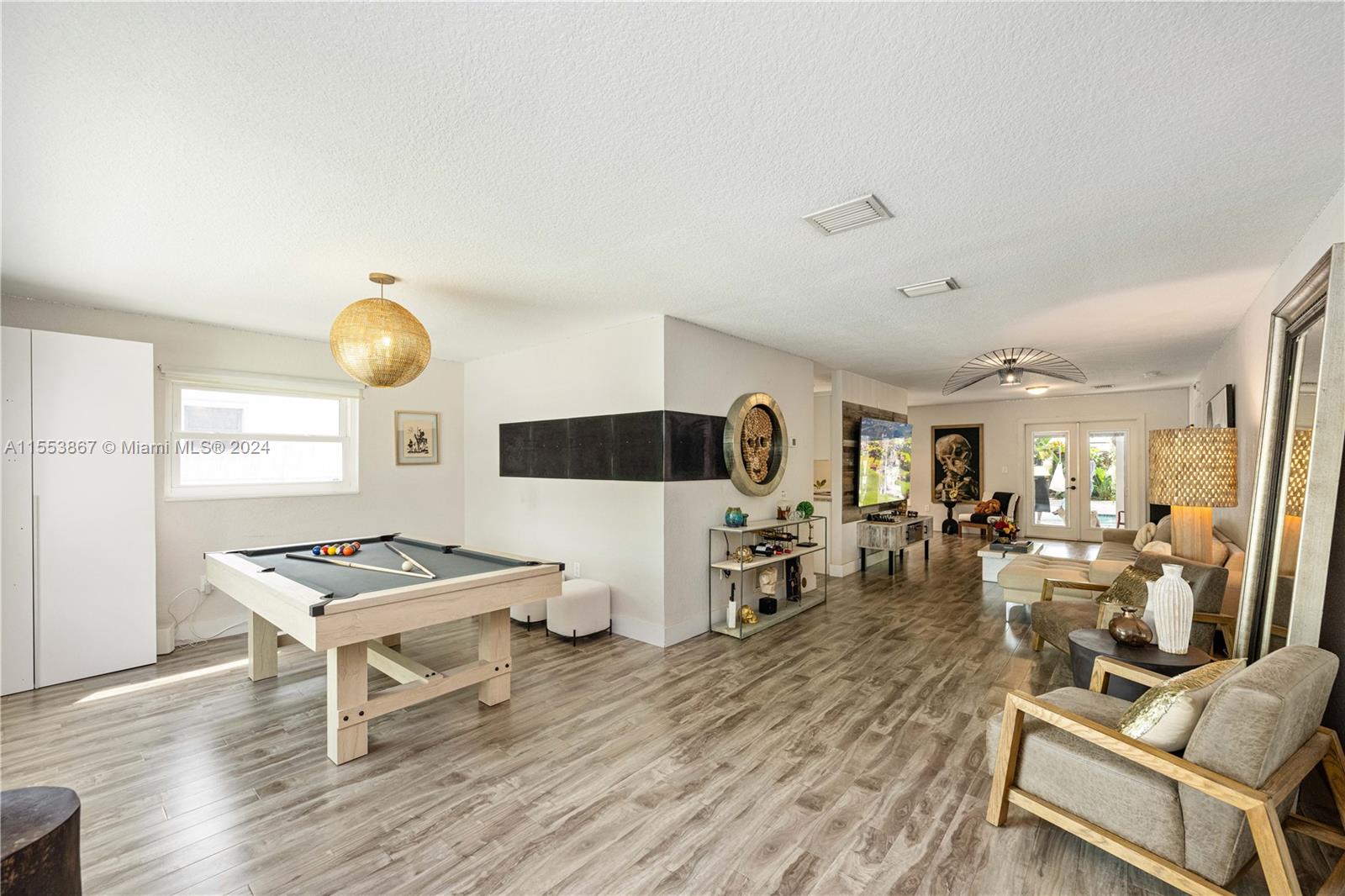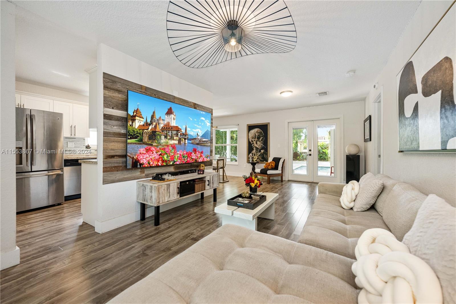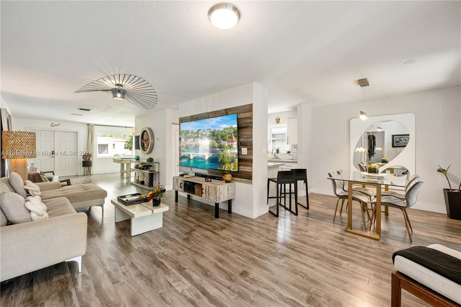 This renovated home showcases three bedrooms and two bathrooms, emanating Palm Springs charm from its inviting facade. Step into a whimsical outdoor oasis reminiscent of Alice in Wonderland, where a tranquil pool sits beneath the shade of a majestic oak tree in a lush backyard. Indoors, revel in spacious living accommodations, boasting two distinct living areas and a designated dining space. Enhanced with impact windows for both security and durability, this home also presents a primary bedroom offering serene pool vistas and a sizable walk-in closet. Completing the ensemble, a separate laundry room adds practical convenience to the mix. Constructed in 1986, this home stands as one of the newer residences in the vicinity, blending modern comforts with timeless appeal.