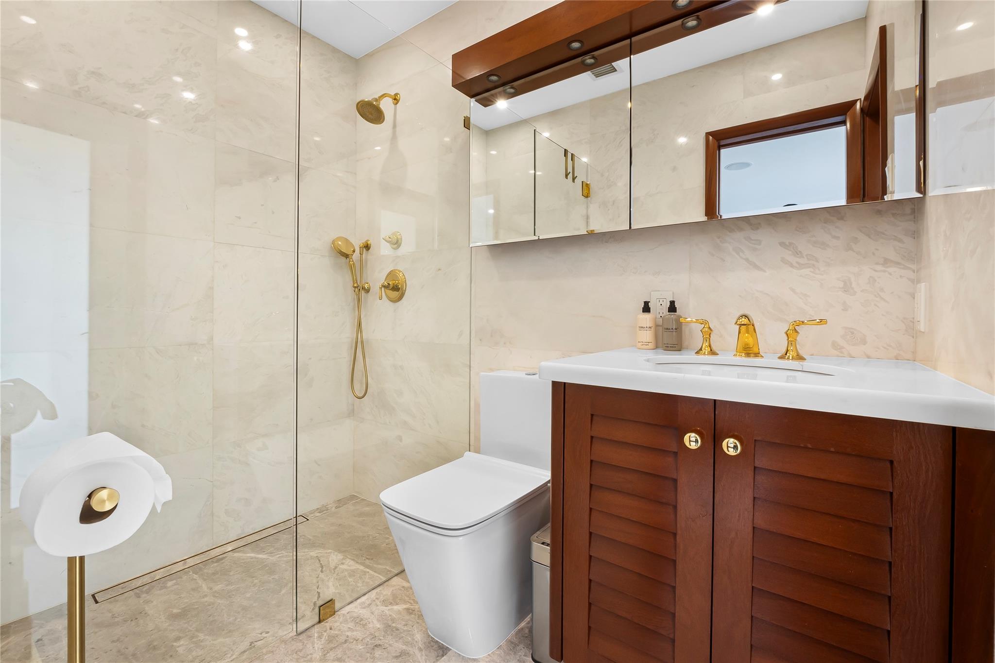 Entirely Renovated to Perfection!!! Impeccable Waterfront Single Level Home Located on Cul-de-sac street in Highly Desirable Intracoastal Community of Bermuda Riviera. Private Gated Community within walking distance to beach, fine dining, shopping & entertainment venues. Features spacious outdoor waterfront patio w/heated pool & open floor plan ideal for entertaining. Gourmet Kitchen w/ custom cabinetry & top of the line appliances. 5 bed, 4 bath, 2 master suites w/ ensuite baths. Floor to ceiling sliding impact windows & doors. Marble & Granite floors throughout. New Oversized AC, plumbing, electrical, hot water heater, garage door & flooring. New Fence, Pilings & Raised dock w/ 50 AMP Service/16,000 LB Boat lift + more. A+ Bayview School district & fabulous private schools nearby.