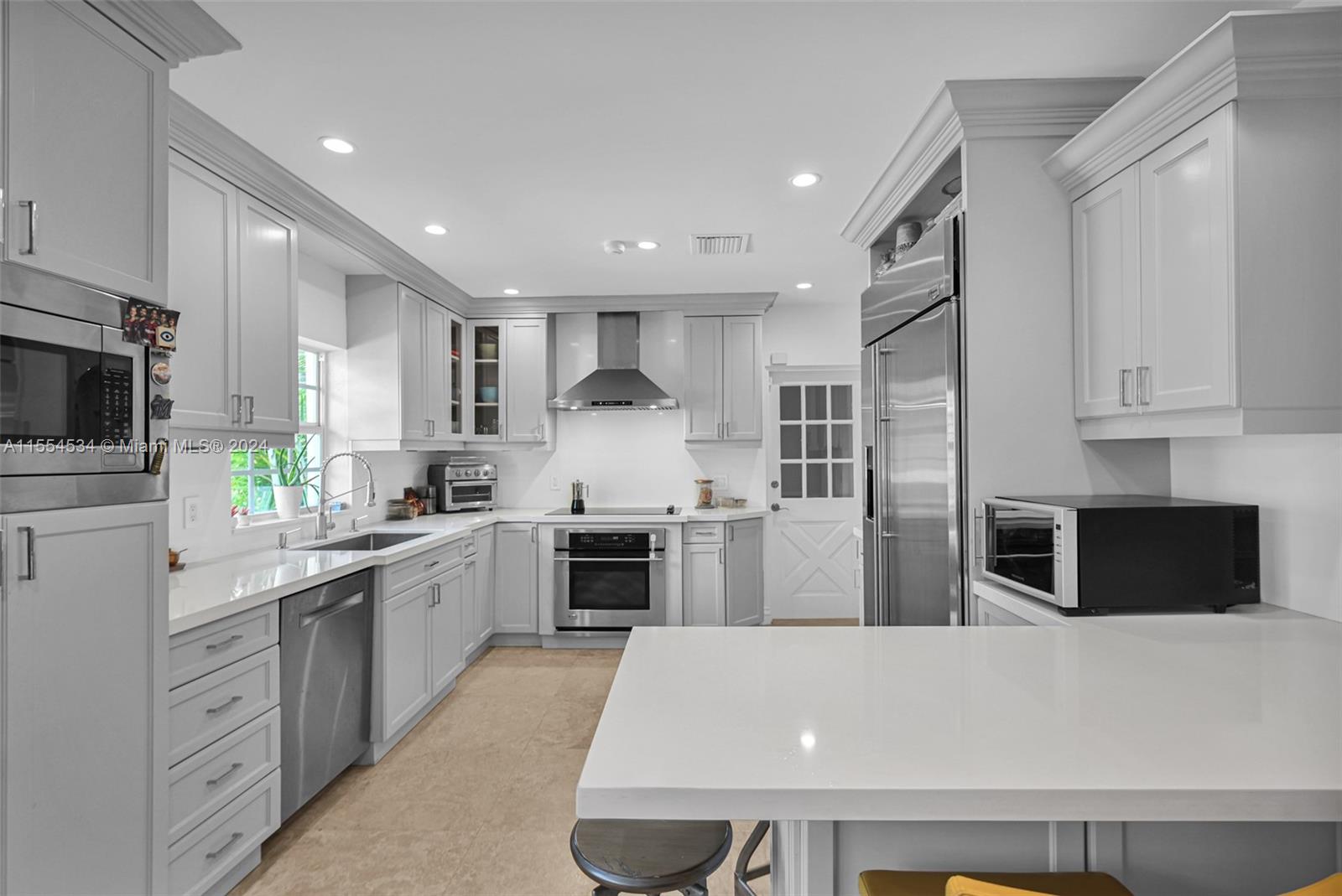 Traditional Coral Gables updated home on a corner lot.A perfect combination of Mid-century elements and Today’s comforts.Big windows bring tons of natural light.Spacious living areas with flexible layout. Comfortable kitchen has modern light gray floor to ceiling cabinets and full backsplash, white quartz ctop, built-in pantry & GE Monogram S/S appl. Majestic Master Bedroom w/spectacular Closet, French doors overlooking backyard with paved patio and playset. Pretty new roof, brand new AC, impact windows and doors, plantation shutters, window treatments, travertine stone wood floors, LED recessed lighting, custom closets. Walking distance from Granada Golf, CG Country Club (w/cafe, swimming & tennis). Venetian Pool & Miracle Mile with all the dining and entertainment at your disposal.