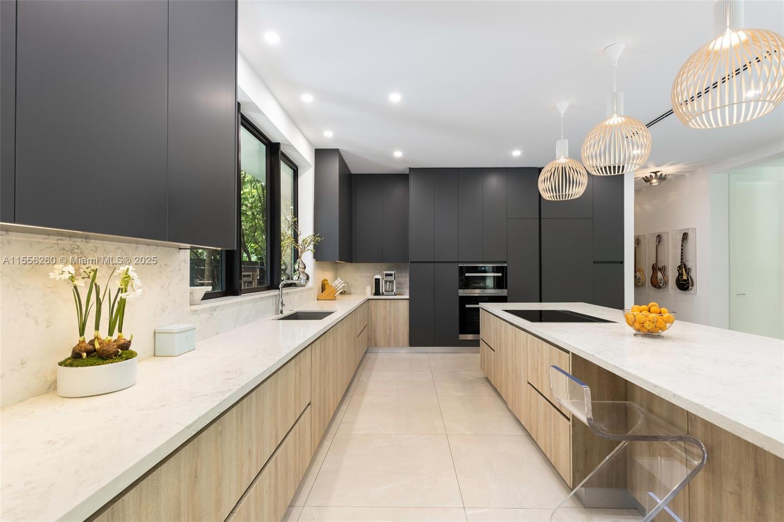 Stunning tropical modern home in the coveted guard-gated community of Four-Way Lodge Estates. Walk to the Grove village’s boutiques, cafes & bayfront parks. Experience indoor/outdoor living with light-filled living spaces, volume ceilings & walls of glass overlooking the spectacular oak canopied & lushly landscaped garden. Euro-style kitchen features top-of-the-line appliances and expansive island w/ seating. Ultra-private primary suite offers sitting area, 2 walk-in closets w/custom cabinetry, balcony overlooking the tree-tops and spa-like bath w/ soaking tub & glass enclosed shower. An open office/den on the 2nd level adds a quiet haven. High sea-level elevation. Community boat basin w/ocean access. Enjoy resort-style outdoor spaces featuring a deep covered terrace & tranquil pool.