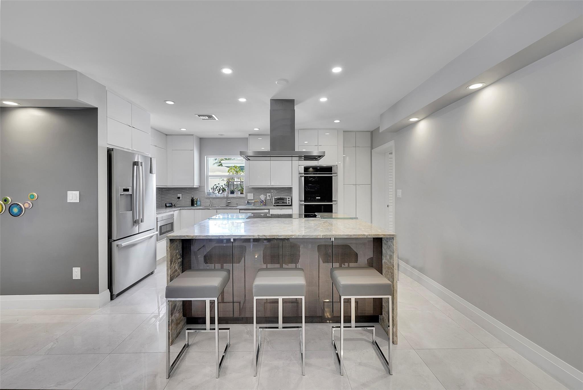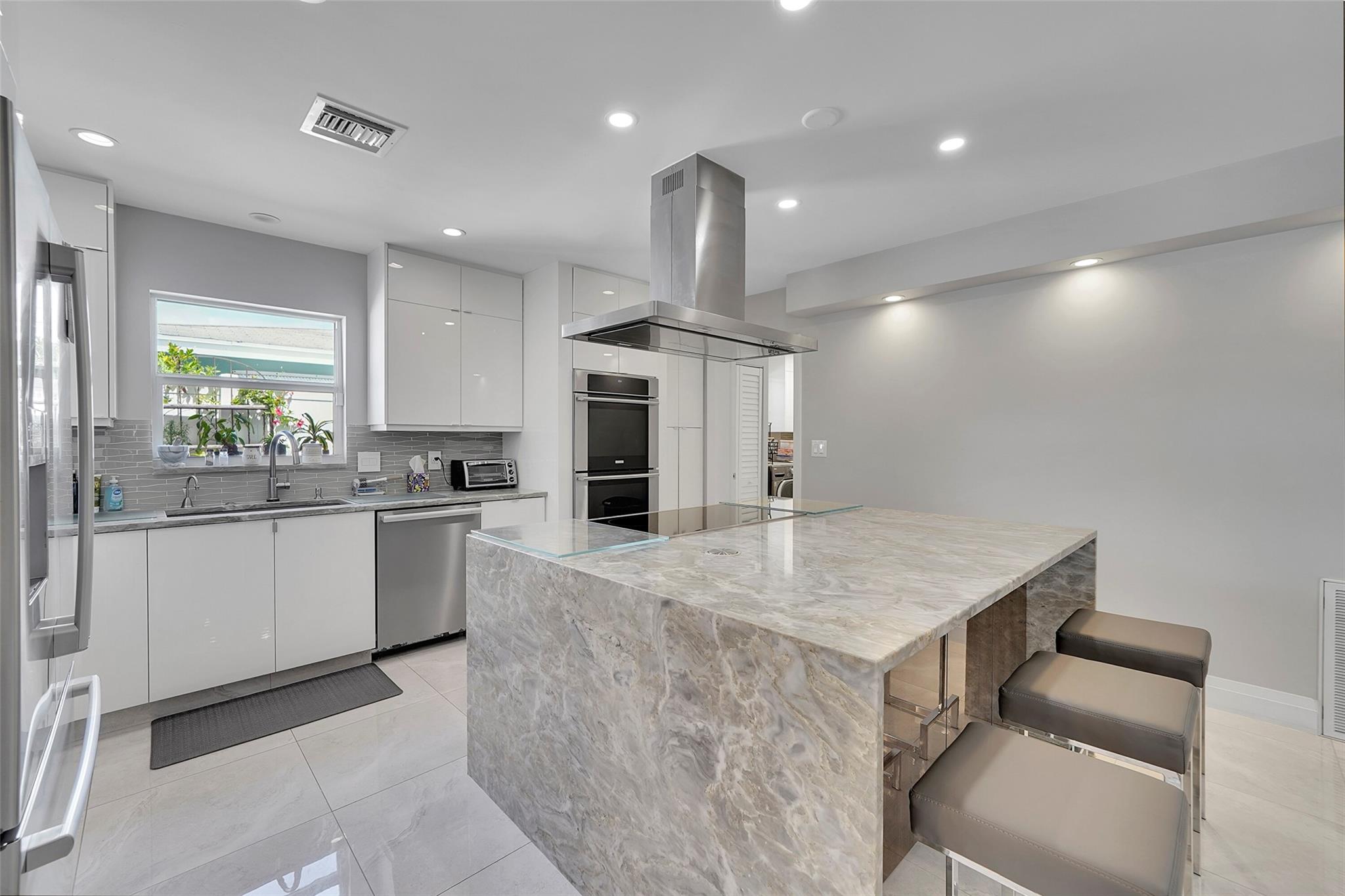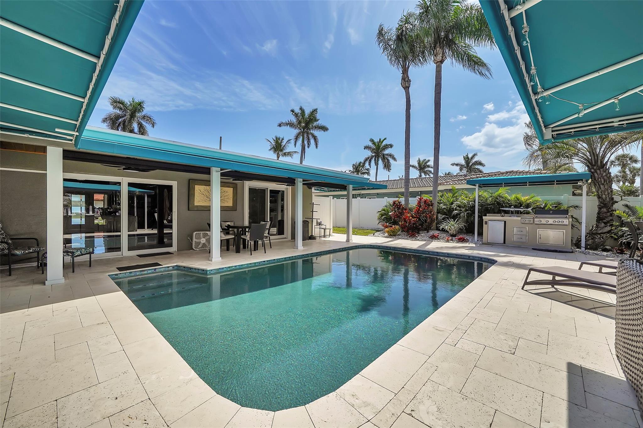 Boaters Paradise in Garden Isles!! This Beautiful, Spacious, & Completely Renovated Home Offers a Lifestyle of Luxury. The Open Kitchen Has State of the Art Appliances With An Induction Stove & A Sharp Built-In Microwave. The Dining Room Doors Completely Open Up To A Salt Water Swimming Pool, With A Heating & Cooling System! Master Bedroom Suite Opens Up To A Waterfront Oasis. 2 Additional Bedrooms & Baths Are Perfect For Family & Guests. Porcelain Tiles Throughout The Home. Impact Windows & Doors. New Ductwork & New A/C. Outdoor living space with Travertine Tiles, Wet Kitchen, Gas Grill & Gas Firepit, Along With An Outdoor Fenced-In Shower. Custom Landscaping with Outdoor Lighting, Remote Control Fans & Blinds, & Sound System. Dock Redone 2022. New Boat Lift & So Much More!!!