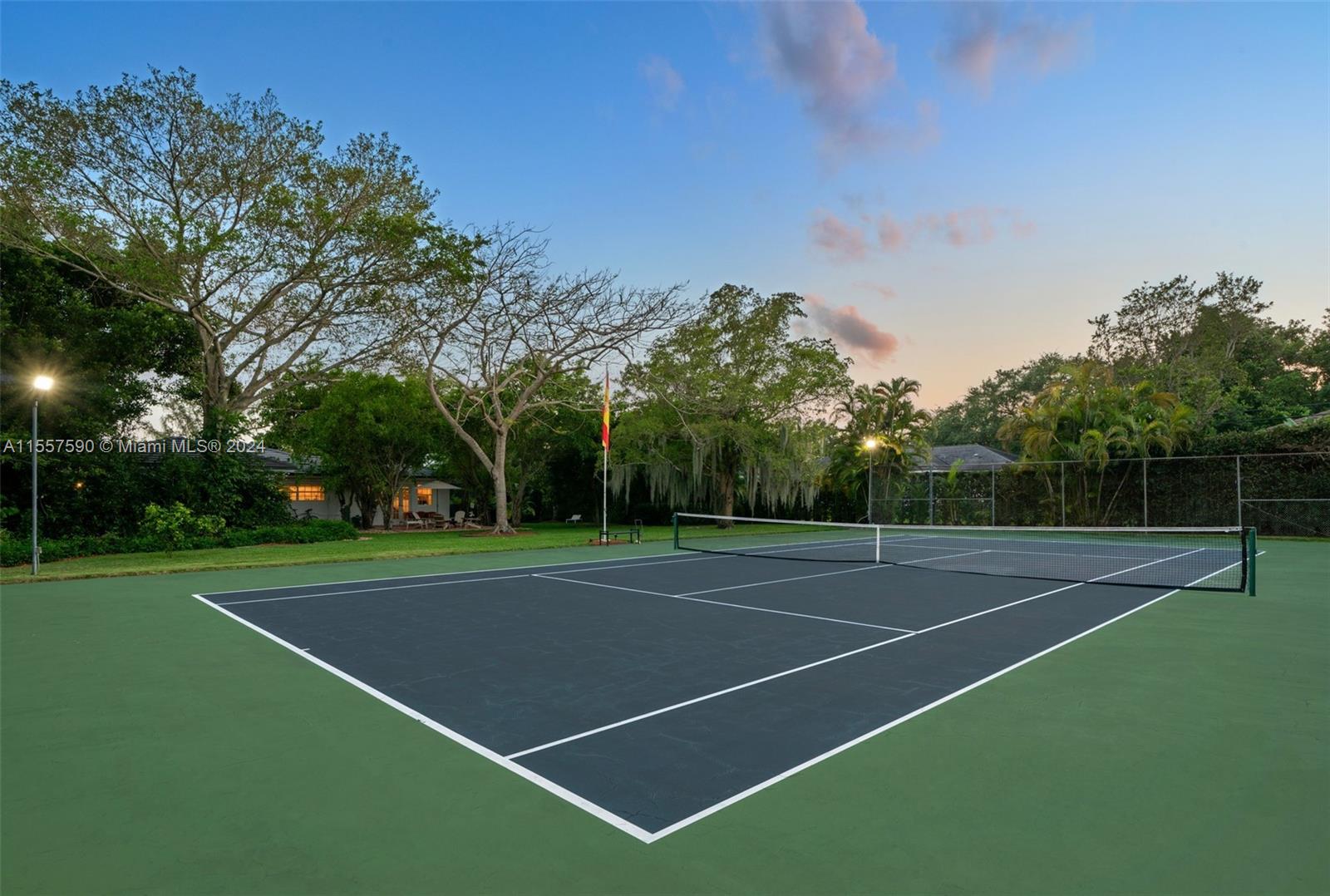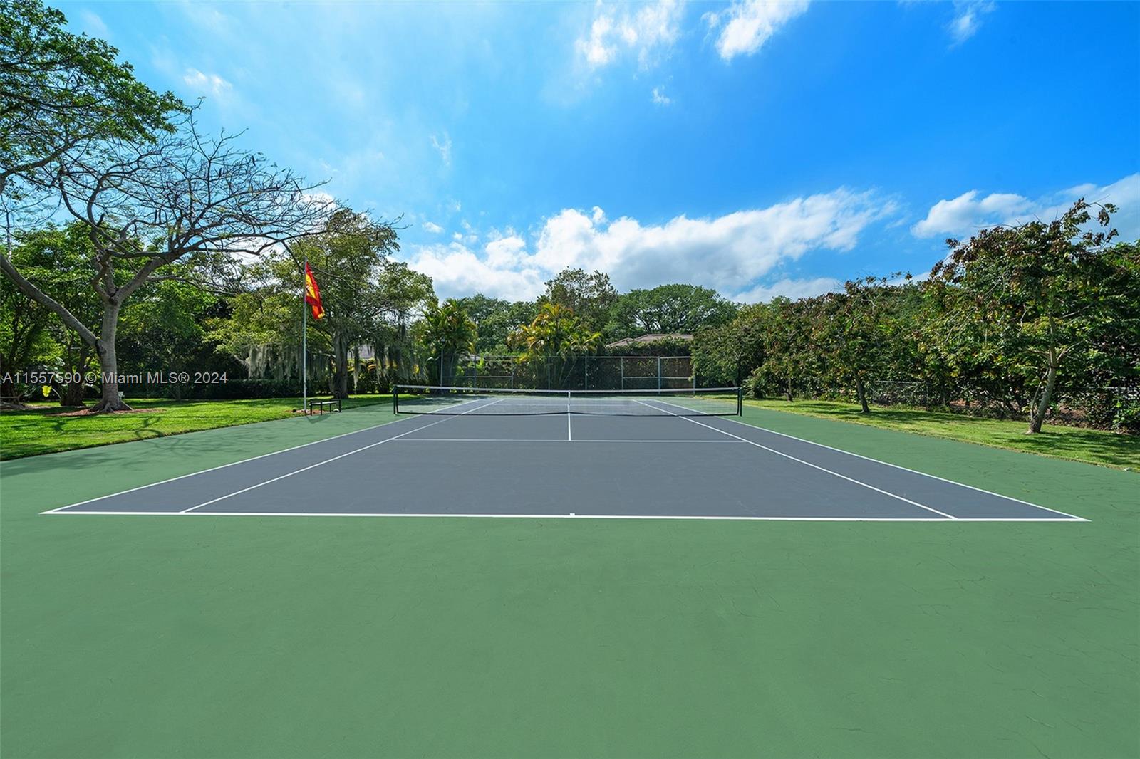 Nestled in the Hammock Oaks exclusive community, this charming residence sits on an acre lot with gated entry. It boasts 4 bedrooms with updated floors, 4 bathrooms, and a spacious den ideal for a home office or gym. A circular driveway and two-car carport add to the appeal. Featuring a 7-year-old roof, two recently installed AC units, and impact-resistant windows and doors. The kitchen is semi private but still connects to the family room and outdoor area. Formal living areas are bathed in natural light from French doors leading to the pool and patio. Outside awaits a private tennis court, surrounded by lush foliage. Additionally, community has marine docks with for purchase or rent upon availability. Perfect to live or remodel to your taste.
