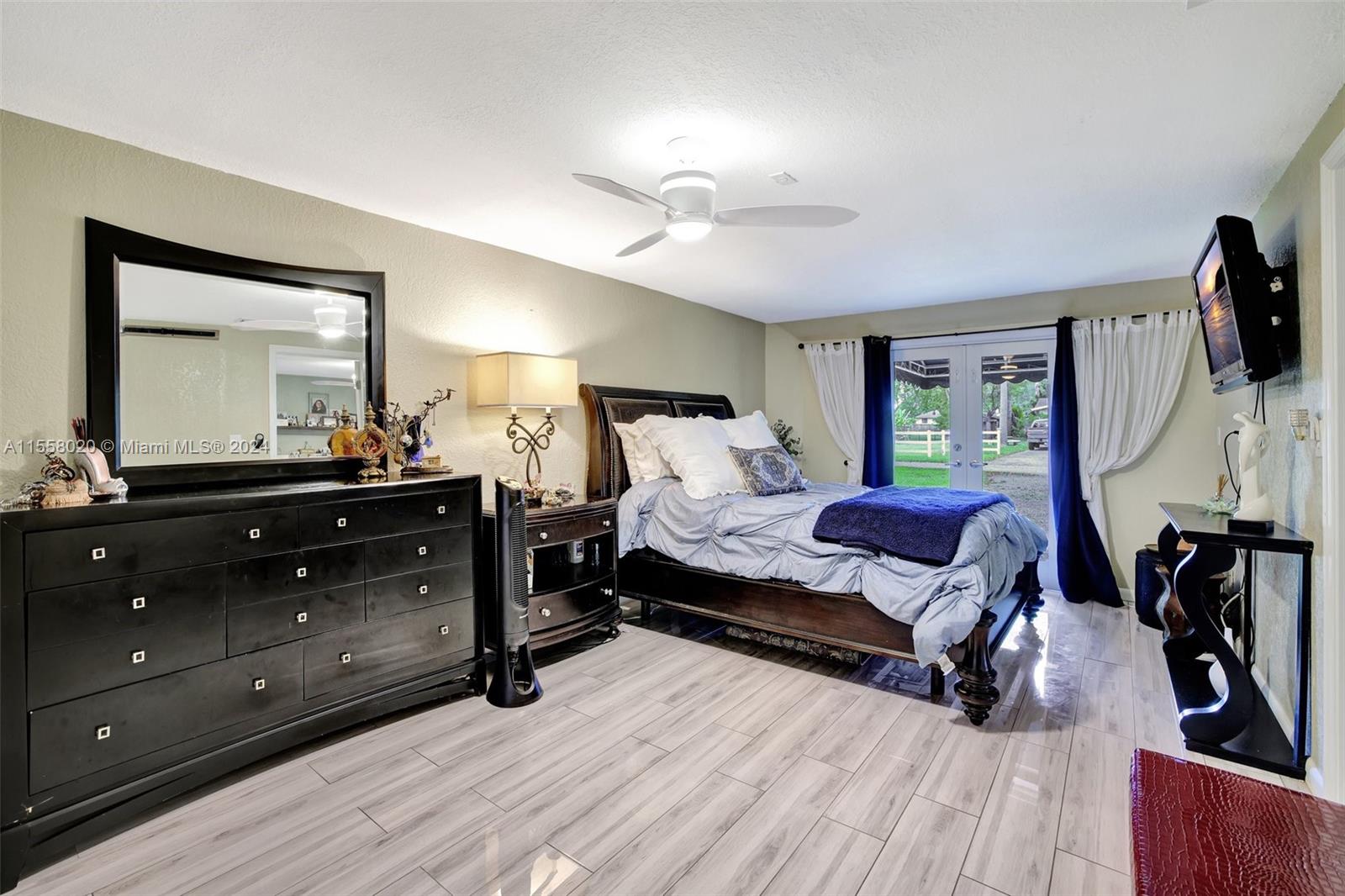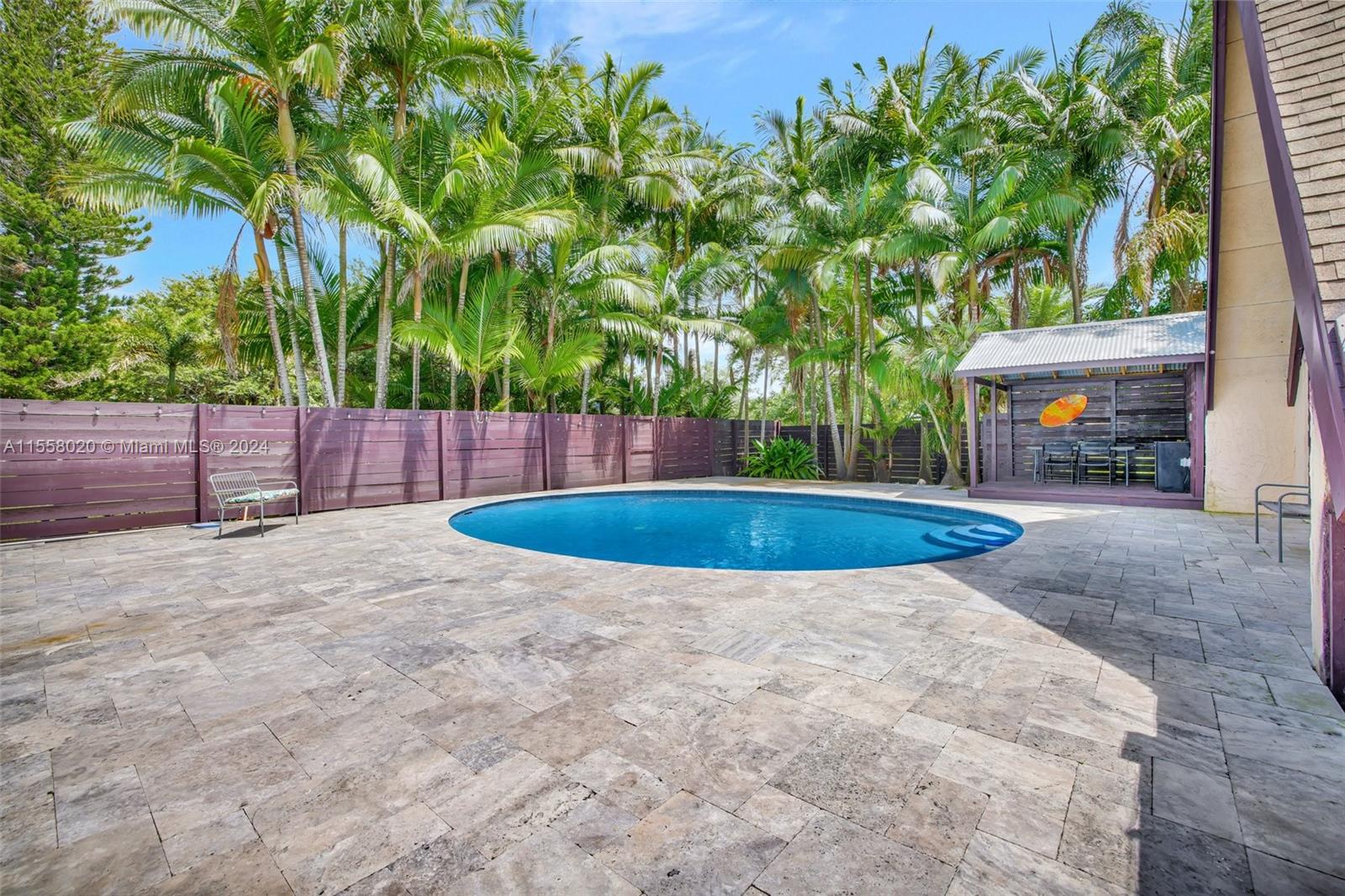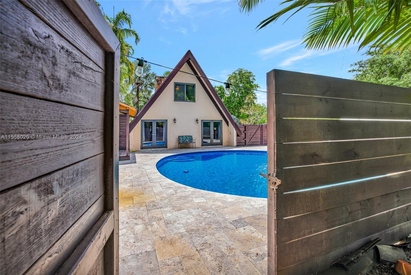 One of a kind A-Frame home, nestled on nearly an acre w/ convenient front & rear access in one of Davie's best neighborhoods. 3 bed, 2 bath pool home PLUS fully equipped charming 2 bed, 1 bath guest house in what feels like tree lined Coconut Grove. Main residence accessible off 24th St features updated open kitchen, wood-burning fireplace & two 1st floor bedrooms opening to pool area; spiral staircase leads to secluded master suite above. Guest house, accessible via 23rd Ct, features a complete kitchen, cozy living space, bedroom, bath & office/bed - perfect for guests/rental income. Large storage shed, lush mature fruit trees & expansive space for all your hobbies, truly a rare find. Hurricane impact windows & doors. A true treasure offering privacy, space, versatility & A Rated Schools.