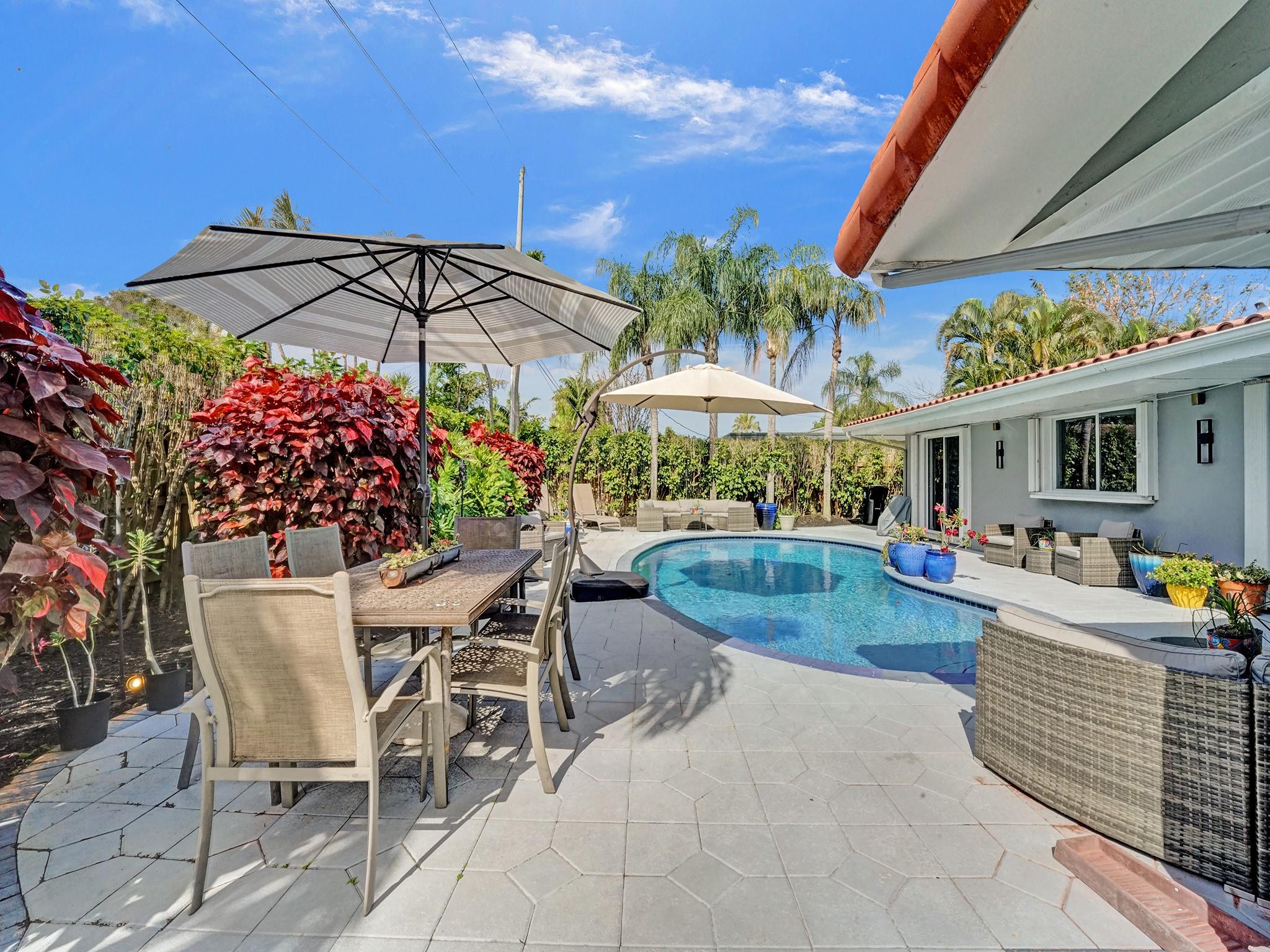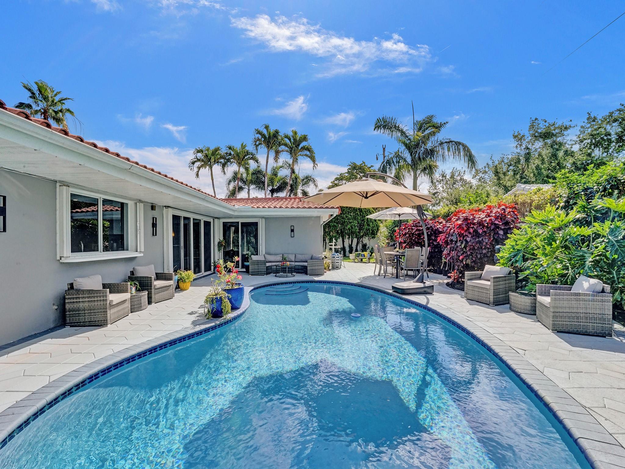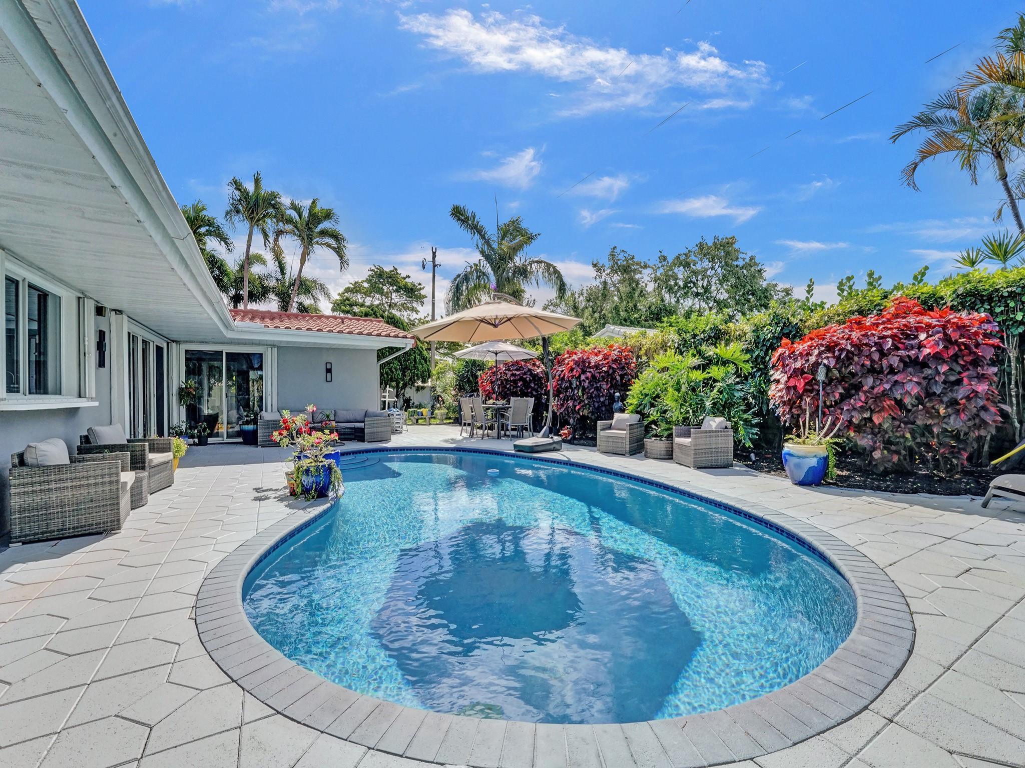 Your DREAM Imperial Point corner lot home awaits, featuring 3 beds, 2 baths, (3rd bedroom doesn't have closet), complemented by a private heated pool & a 2-car garage. Open concept layout, with consistent tile throughout , ideal for entertaining. A notable highlight is the neutral grey paver driveway seamlessly matching the pool deck. Additionally, it includes plantation shutters, an oversized closet in the primary bedroom, & a kitchen with a pass-through window to the pool area, enhancing the home's entertaining appeal. Notably, Westminster Academy & Pine Crest School are both within a few blocks' reach from the home. Front & backyard are beautifully landscaped, adding to the charm. LG washer & dryer, a hurricane-impacted bay window. All openings have hurricane protection.