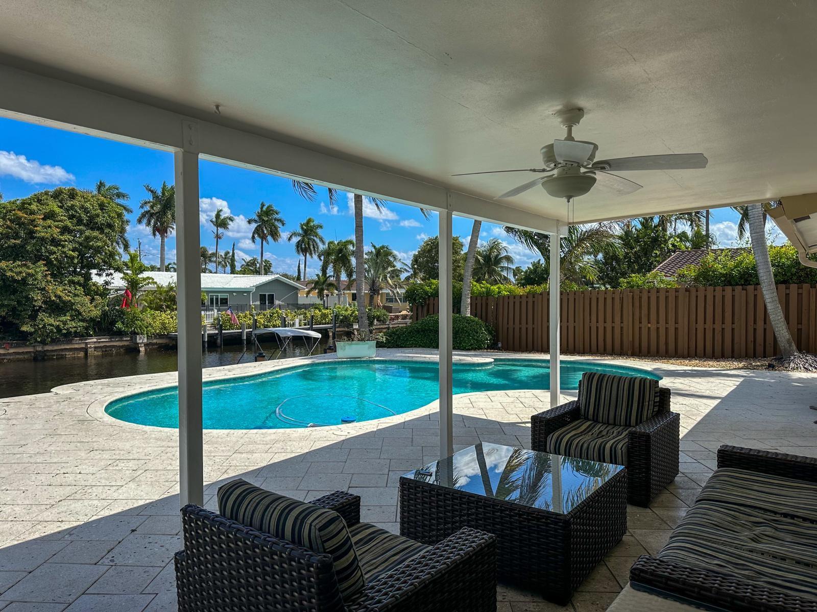 Seller motivated! Bring offers. Seller will give roof credit up to $40,000 with accepted offer. Experience this hidden waterfront gem just two blocks from the prestigious Pine Crest School. Tastefully remodeled and upgraded with new exterior paint, outdoor lighting etc. Newer appliances, Water heater, washer/dryer and more! Marble floors compliment the model-quality design touches. 4th bedroom/office adds flexibility to a nice split bedroom plan. All rooms have custom closets and built in sound systems. The free-form pool and covered patio await your entertainment ideas. Privacy hedges mean options for the water view or solitude you desire. Impact windows and doors for worry-free living all year round. This area is one of the last secrets in Ft Lauderdale. Call to see this one now!