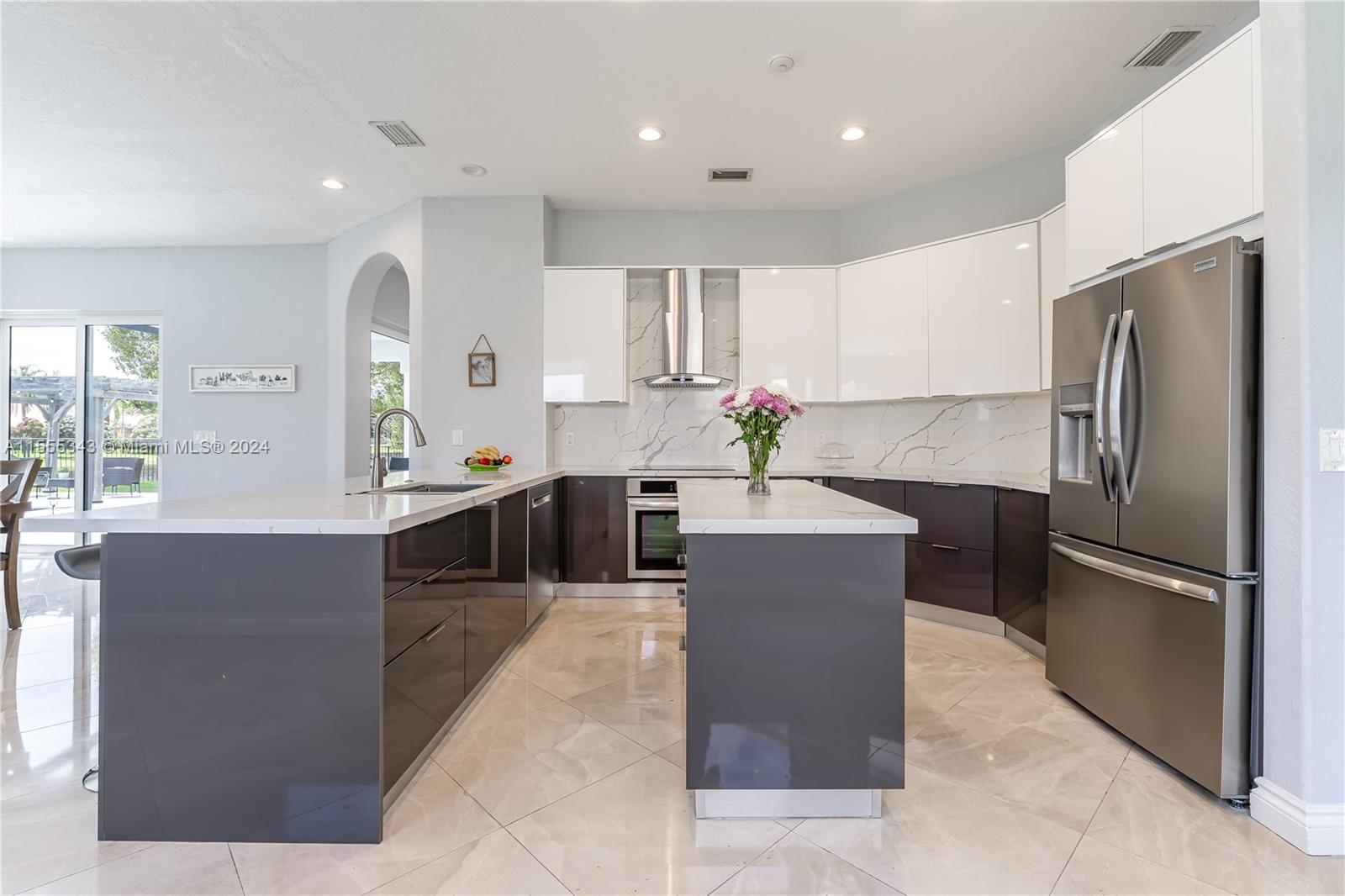 Beautiful 6b/4b Lakefront Pool Home nested on a pie shaped .39 Acre Cul-De-Sac Lot at The Hamptons in The Lakes! Be captivated by the spectacular panoramic lake views! 157 ft water frontage. Tons of natural light flows through the windows. This Home features a two story volume foyer, 10ft ceilings in first floor, 2020 Roof, 2022 Impact Windows & Sliding Doors, 2022 2 ACs, 2022 wood floors, stairs & baseboards, stunning marble floors, a gorgeous custom 2024 Chef's Kitchen w/quartz countertops & SS Appliances opens to an oversized FR & breakfast area, oversized main bedroom with lake views, 2023 window treatments, expansive concrete terrace with 2023 electrical awning extending the already large covered area, 2022 pool pump & more. Fully fenced. Beautifully landscaped. SEE VIRTUAL TOUR!