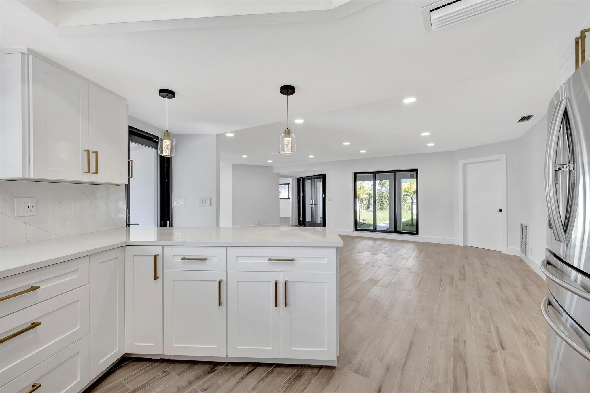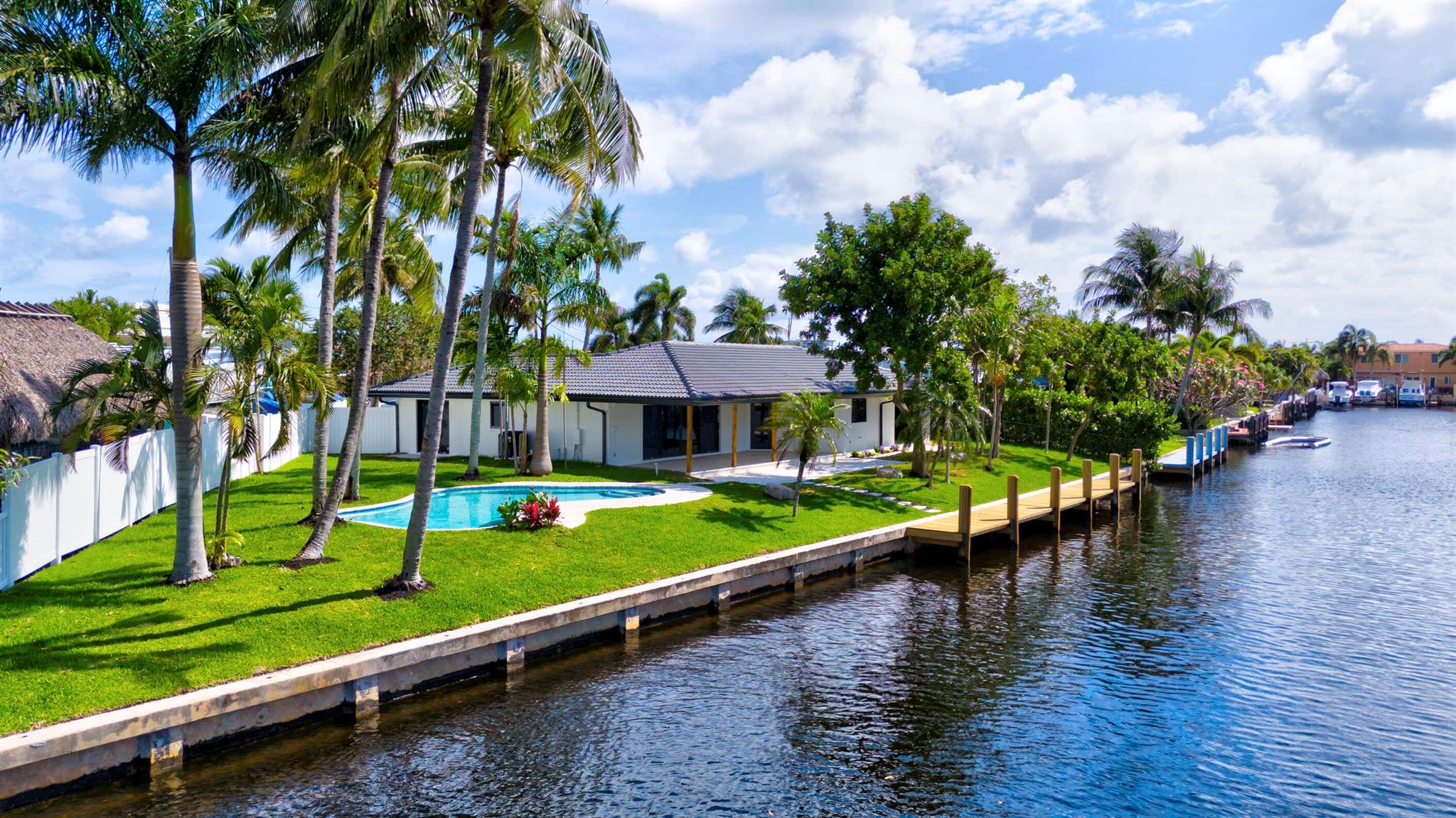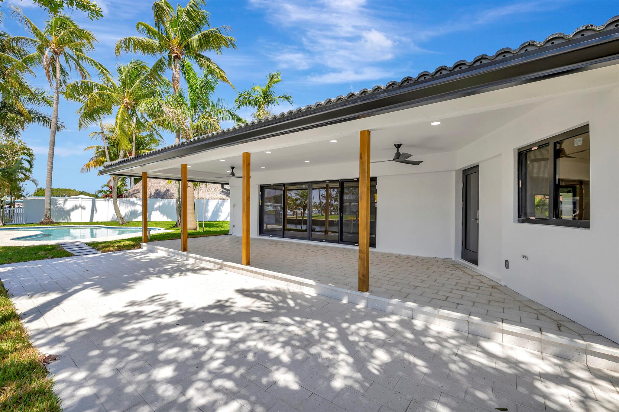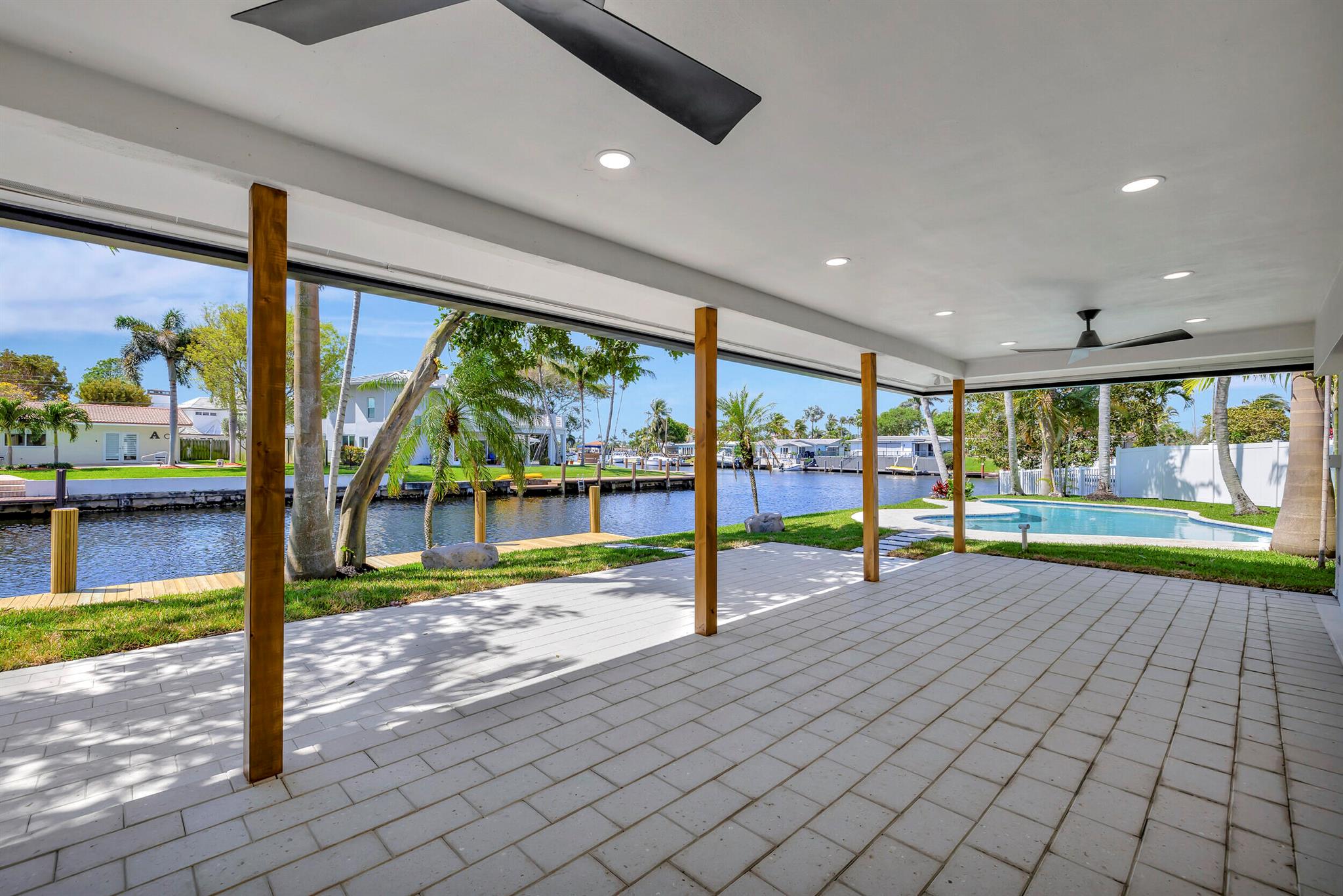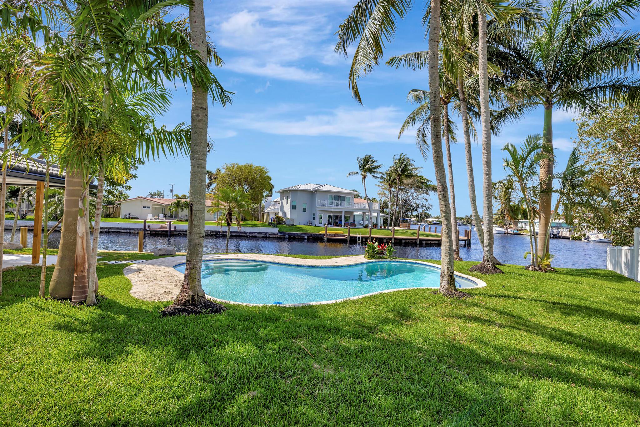 Welcome to your waterfront oasis located in a quiet cul-de-sac, in Pompano Beach, Florida! This exquisitely renovated light and bright three-bedroom, two-bath residence features 150 feet of water frontage, Brand New impact windows & doors throughout, beautifully remodeled bathrooms and kitchen, and a resort-style freeform heated pool with expansive water views. Experience effortless indoor-outdoor living with an open floor plan that seamlessly extends from the family room to the large covered patio. Perfectly situated on an oversized waterfront lot close to beaches, shopping, and nightlife, this property offers ocean-accessible navigable waters under 1 fixed bridge with 13-14 feet clearance at low tide and 10-11 feet at high tide.
