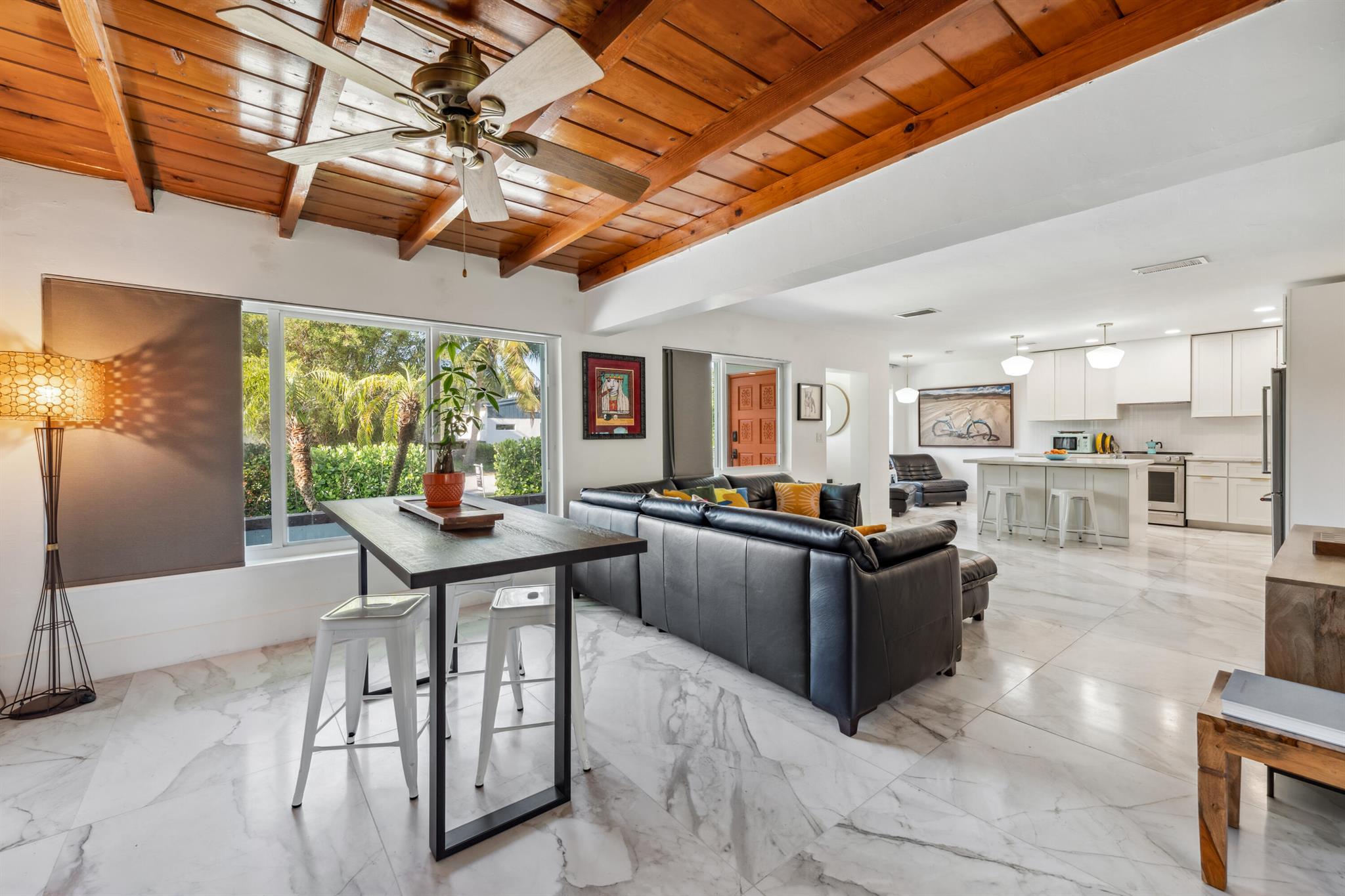 PICTURE PERFECT! Mid-Century charmer in this coastal Hollywood neighborhood sits 1154 Grant St. a single family home consisting of two bedrooms, two bathrooms a generous size den with abundant natural light, carport and a beautiful fully fenced backyard. This exquisite property offers a perfect blend of comfort and sophistication with its open floor concept creating a seemingly space for gathering and entertaining. Some of the highlights are quartz countertops, soft closure cabinets, stainless steel appliances, ceramic tile, 2023 renovated bathrooms, 2024 hurricane rated impact windows and doors, 2023 AC, and 2018 roof.