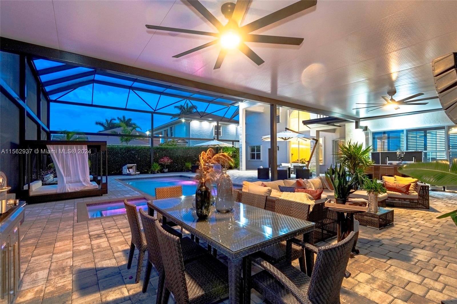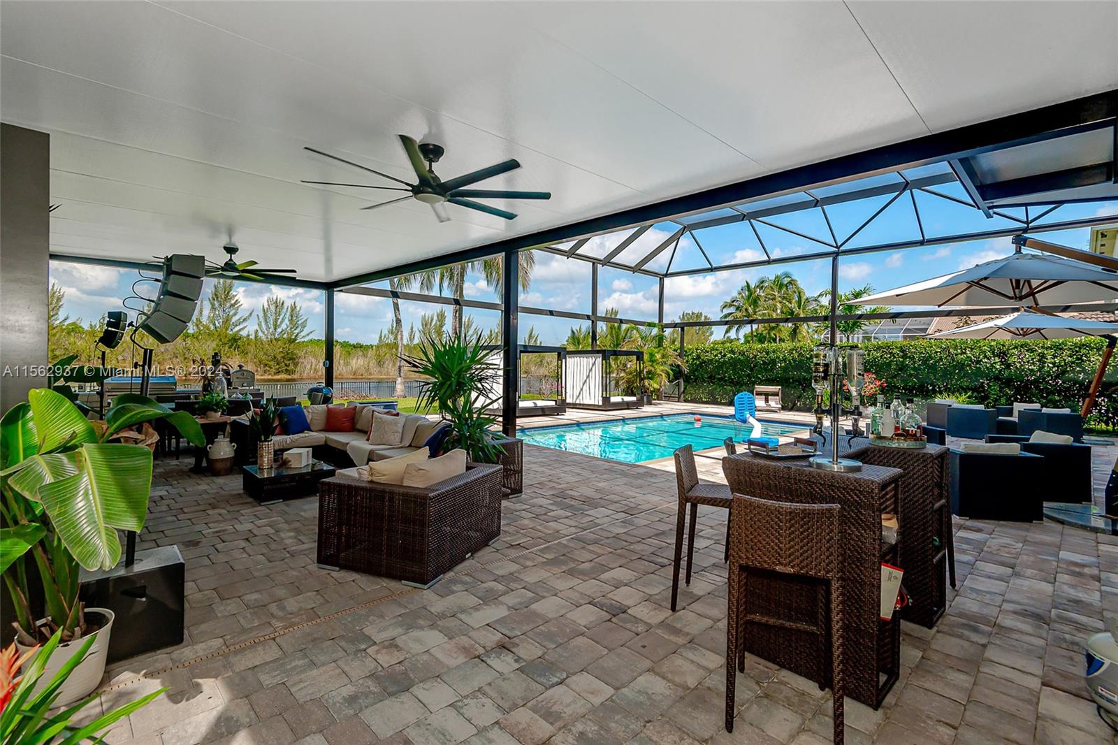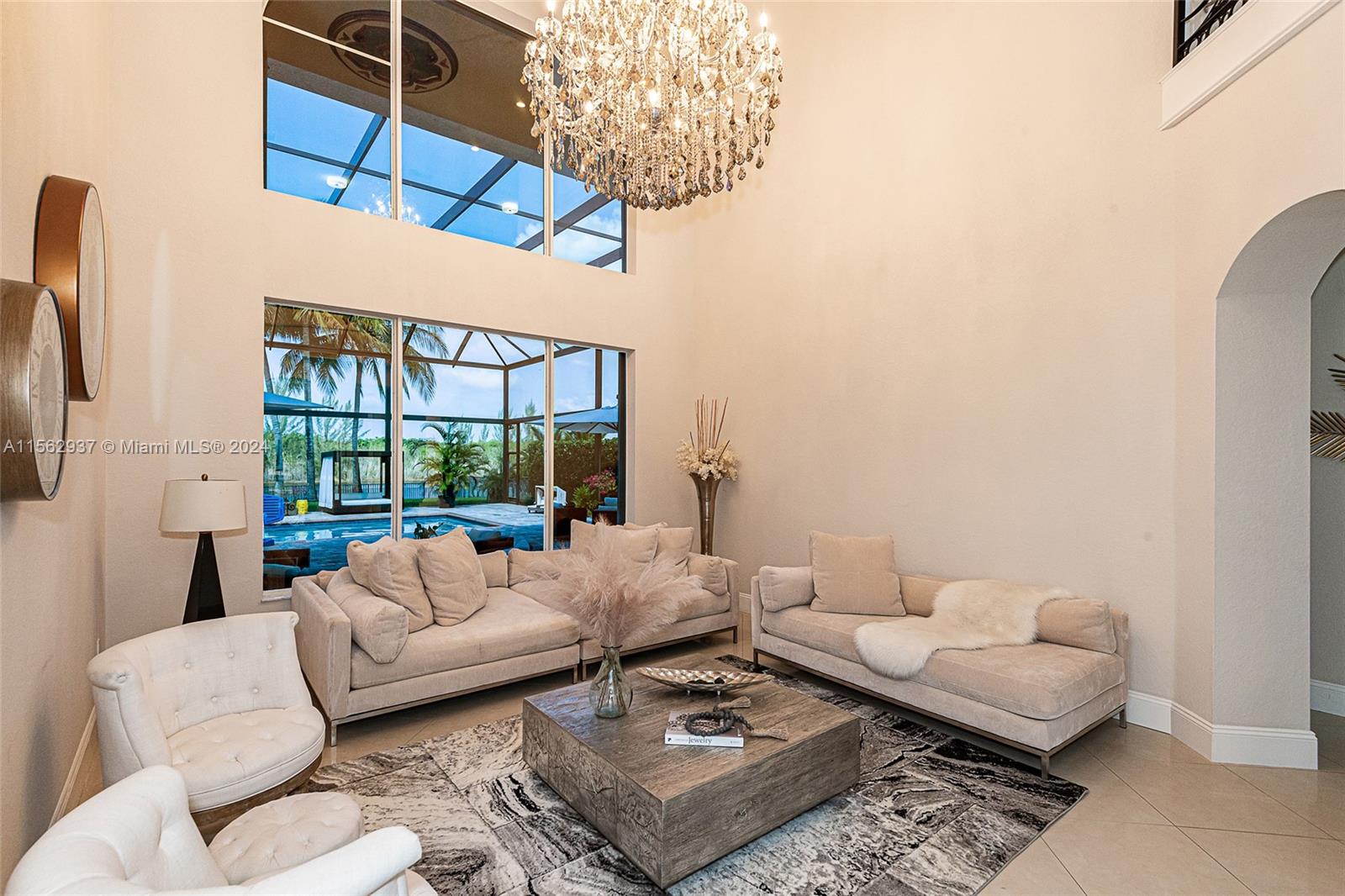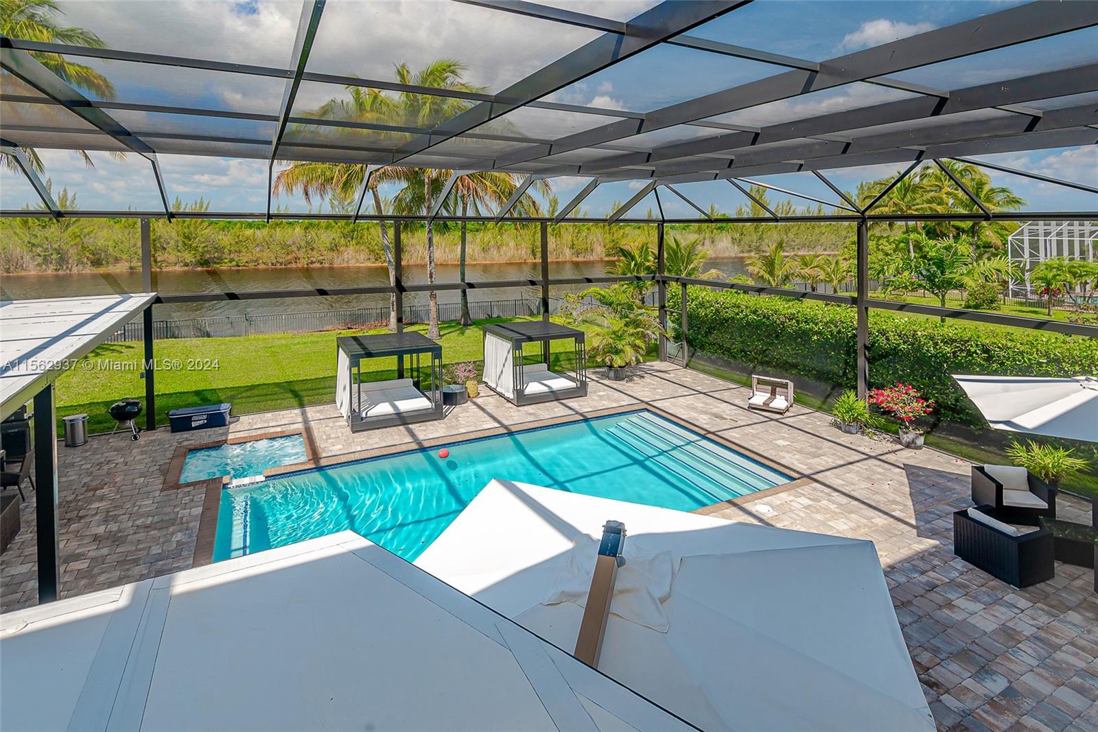 Resort-style at unparalleled luxury living in this exquisite home. 6 bedrooms, 4.5 baths on an oversize lot with largest driveway in the community adding elegance to this incredible dream home. Aluminum roof, Impact windows and doors, beautiful porcelain and wood floors, modern kitchen all complemented by a 3- car garage for your convenience. Backyard offers patio screen enclosure, covered terrace, and a gorgeous pool with jacuzzi for a perfect entertaining. Open House for this property on Saturday April 13 from 12PM to 4PM