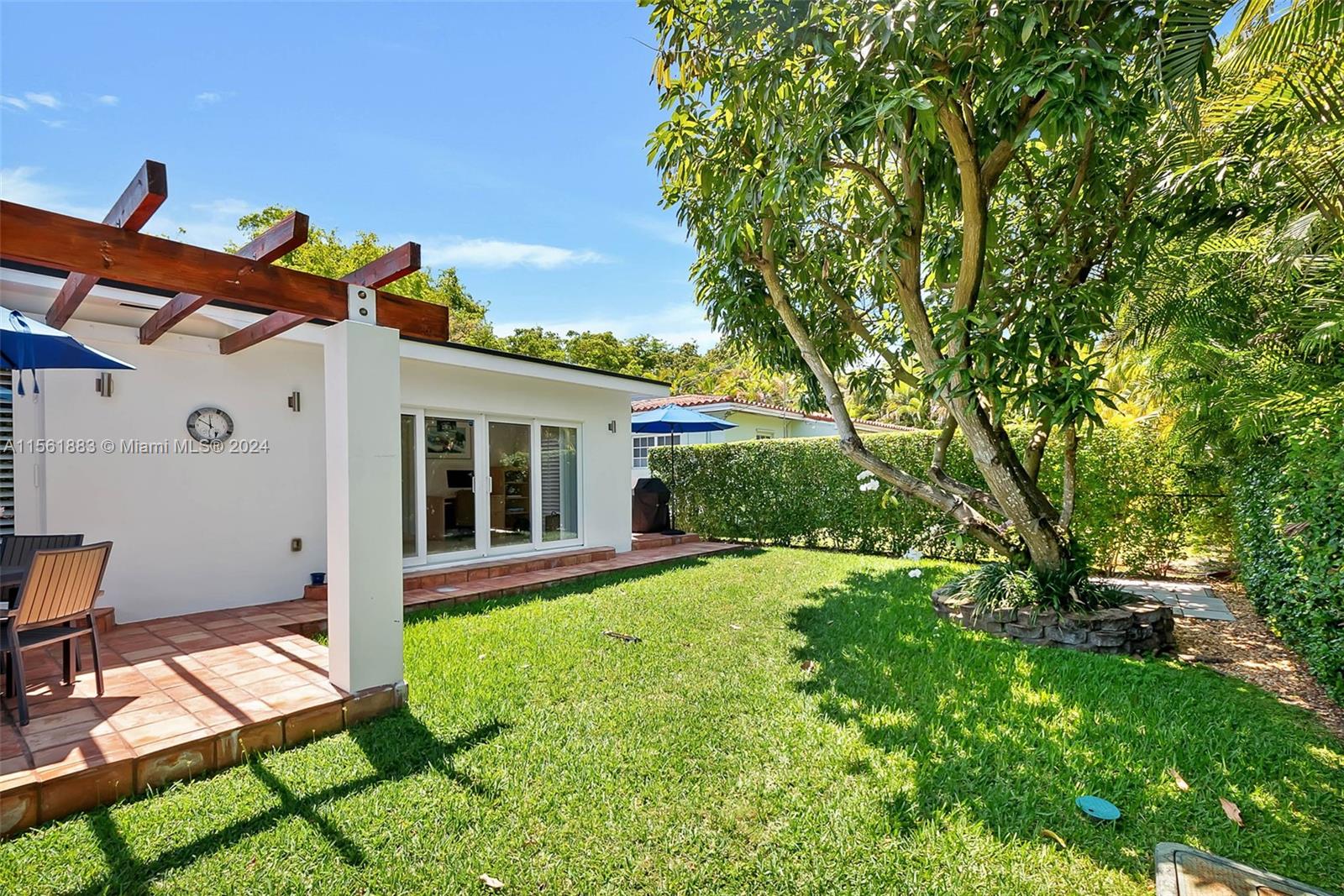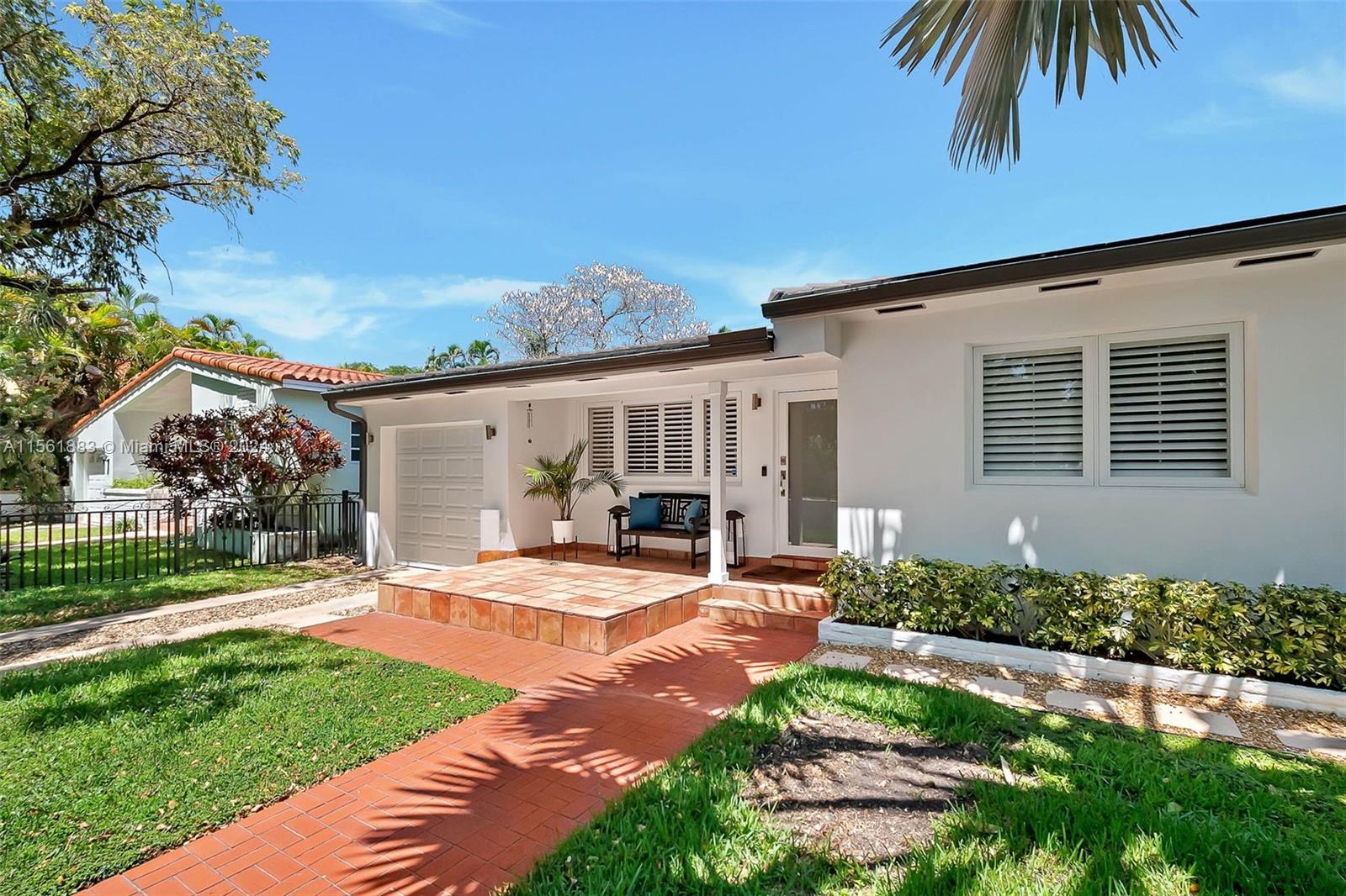 Discover Coral Gables charm in this enchanting home, where a blend of traditional allure and modern updates await. Situated in a walled and gated sanctuary on a lush, canopied street, this property welcomes you with marble floors, a captivating wood ceiling with exposed beams, and wood shutters on windows. Updated features include impact windows and doors, a newer roof, and modernized electrical system. Move-in ready, it boasts two spacious ensuite bedrooms with wood floors, including a primary bedroom with dual closets. A large sunroom leads to the yard, your private oasis, while the laundry room is conveniently housed in the marble-tiled garage. Just blocks from Granada Golf course and Downtown Coral Gables. Don't miss the opportunity to make this special home yours.