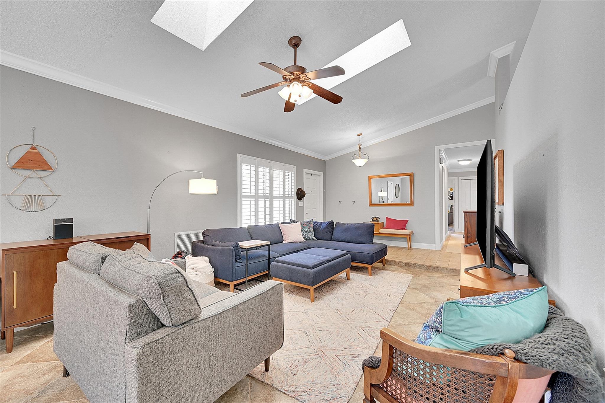 Welcome to 5010 King Arthur Avenue, a beautiful home in the desirable neighborhood of Hawkes Bluff! This spacious property has open living spaces with lovely skylights & a kitchen renovated in 2020 with white shaker cabinets, granite countertops, stainless steel appliances and a bar area. Wood-like tile floors in living areas with crown molding & recessed lighting through out. Panel hurricane shutters and one impact window. The best is the backyard- serene water view, screened in patio with hot tub, pool with child safety gate & a completely fenced-in yard! Low HOA and located in the city of Davie, you will enjoy easy access to shopping, dining, parks, and top-rated schools. Don't miss out on the opportunity to make this house your home. Schedule a showing today!