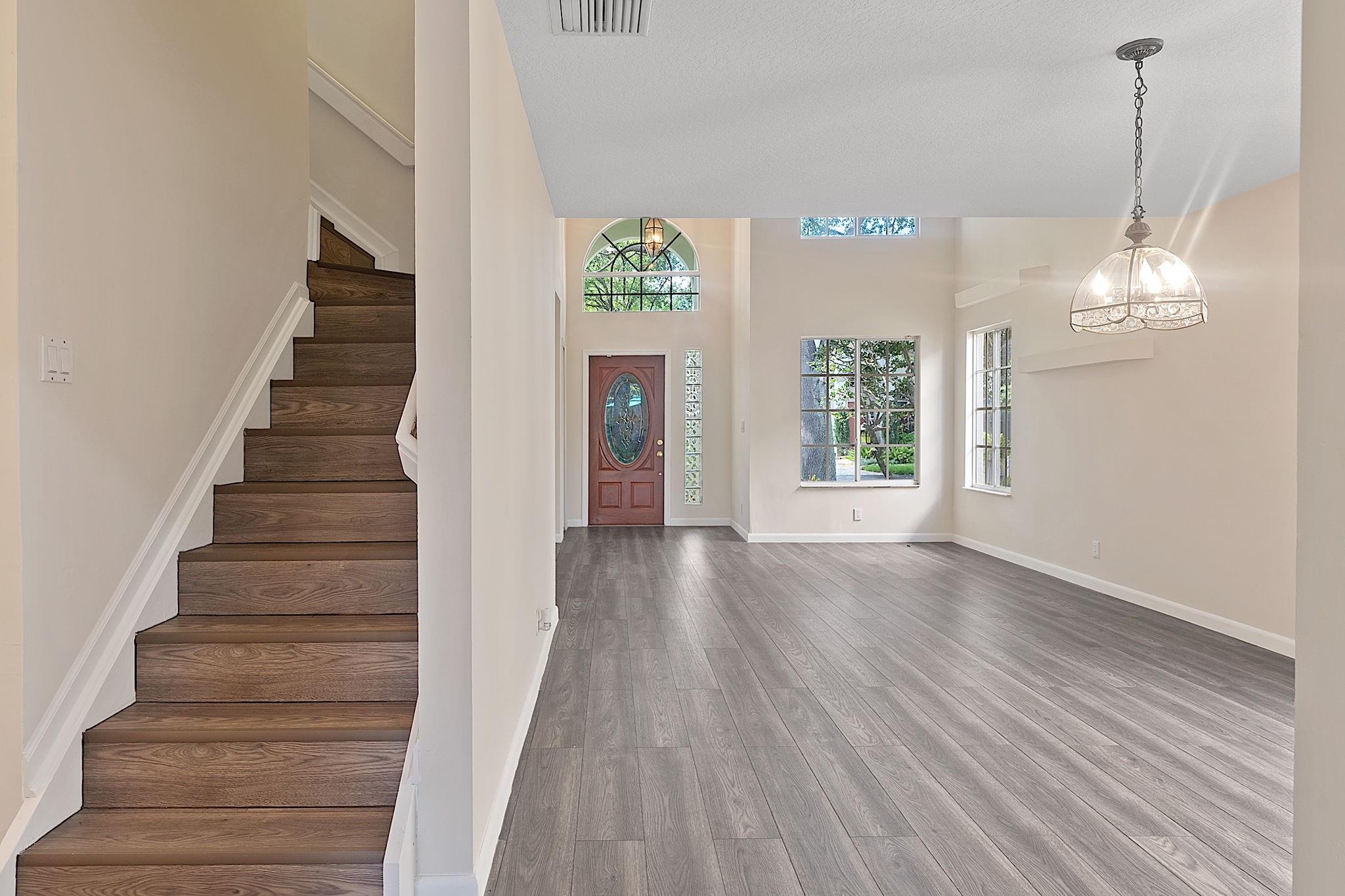 Beautiful lake front home in desirable Palm Aire!! Freshly painted, new flooring, 5 bedrooms, 2 1/2 baths, 2 story home. First floor Master bedroom perfect for in-laws with his and hers closets and Jacuzzi tub . 2021 Tankless Water Heater, 2021 Air Conditioner. The foyer leads you to a space that can be used as a formal dining room/ living room area with volume ceilings that provide plenty of light. The kitchen has a great family room area and eat in kitchen with views of the beautiful lakefront yard. The second floor includes 4 bedrooms plus dual sink, full bath for the rest of the family. Come home everyday to enjoy the outdoor space which is serene and overlooks the charming lake.