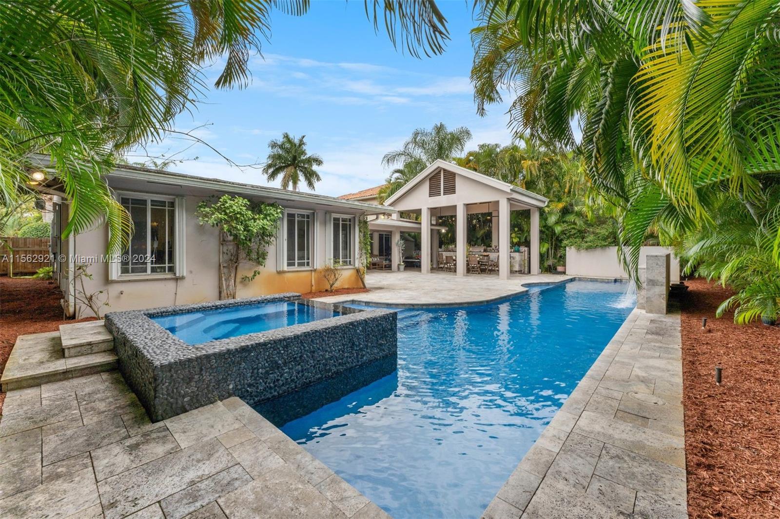 A house becomes a home when it is filled with wonderful memories and happy times! First time offered in 23+ years as the current owners enjoyed it and created spectacular memories for themselves and loved ones. Now it’s time to pass the torch. Sprawling 5 bed 4 bath which has been lovingly extended to create a great entertaining property with formal living and dining area with solar lights, multiple built-ins, a large kosher kitchen with 3 sinks, walk in pantry, separate laundry room and a eat at peninsula. Family room overlooks a tropical garden with mature private landscaping, a fabulous summer kitchen, mosquito misting system. 53’ lap pool, waterfall and hot tub. Large primary suite with multiple closets. Great location near multiple houses of worship, restaurants, shopping etc.