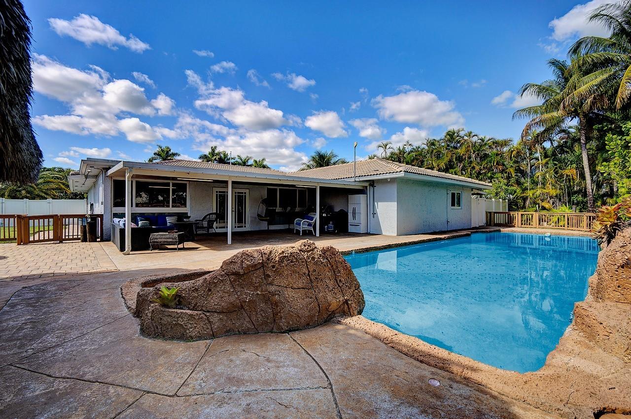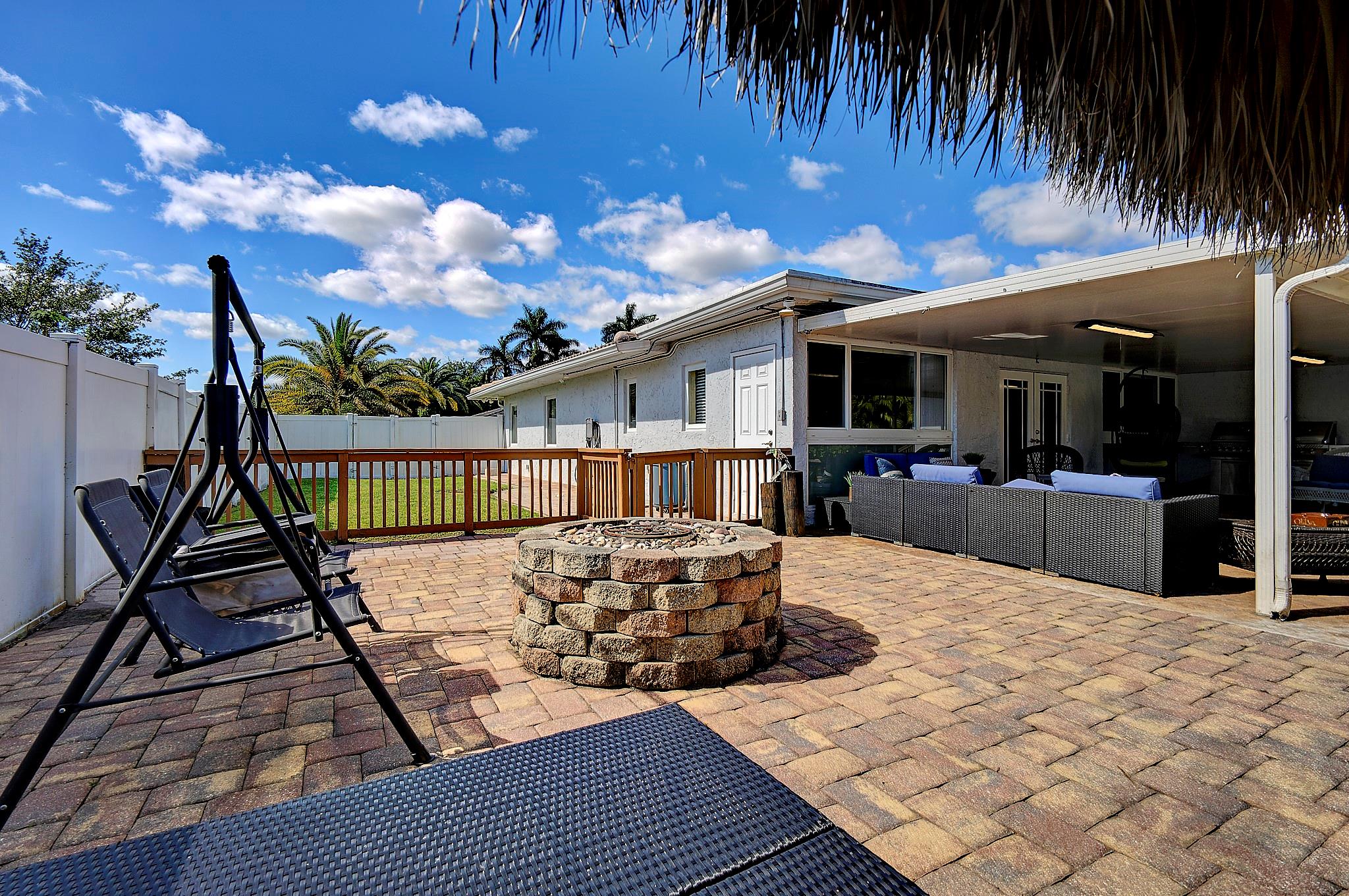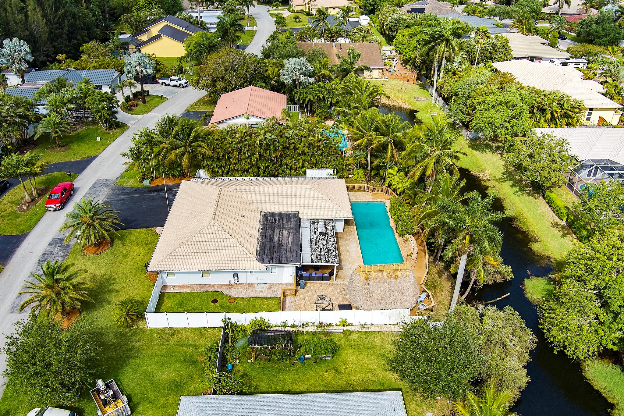 This captivating home sits on a spacious lot without HOA, nestled in a private cul-de-sac, offering room for RV or boat parking behind a privacy fence. With 3 bedrooms plus a den/office, 2 baths, and a bonus room, it's tailored for versatile living. Enjoy outdoor bliss in the Tiki Hut overlooking the oversized pool and patio, ideal for summer gatherings. Inside, find an open layout, upgraded kitchen, and a master bedroom with dual sinks and a shower. Centrally located near downtown Davie and major highways, it offers convenience and comfort in abundance.