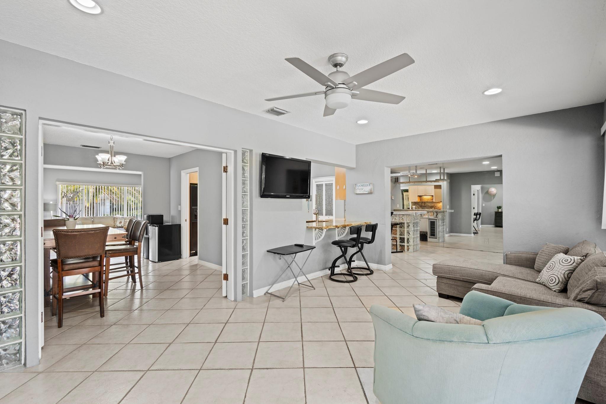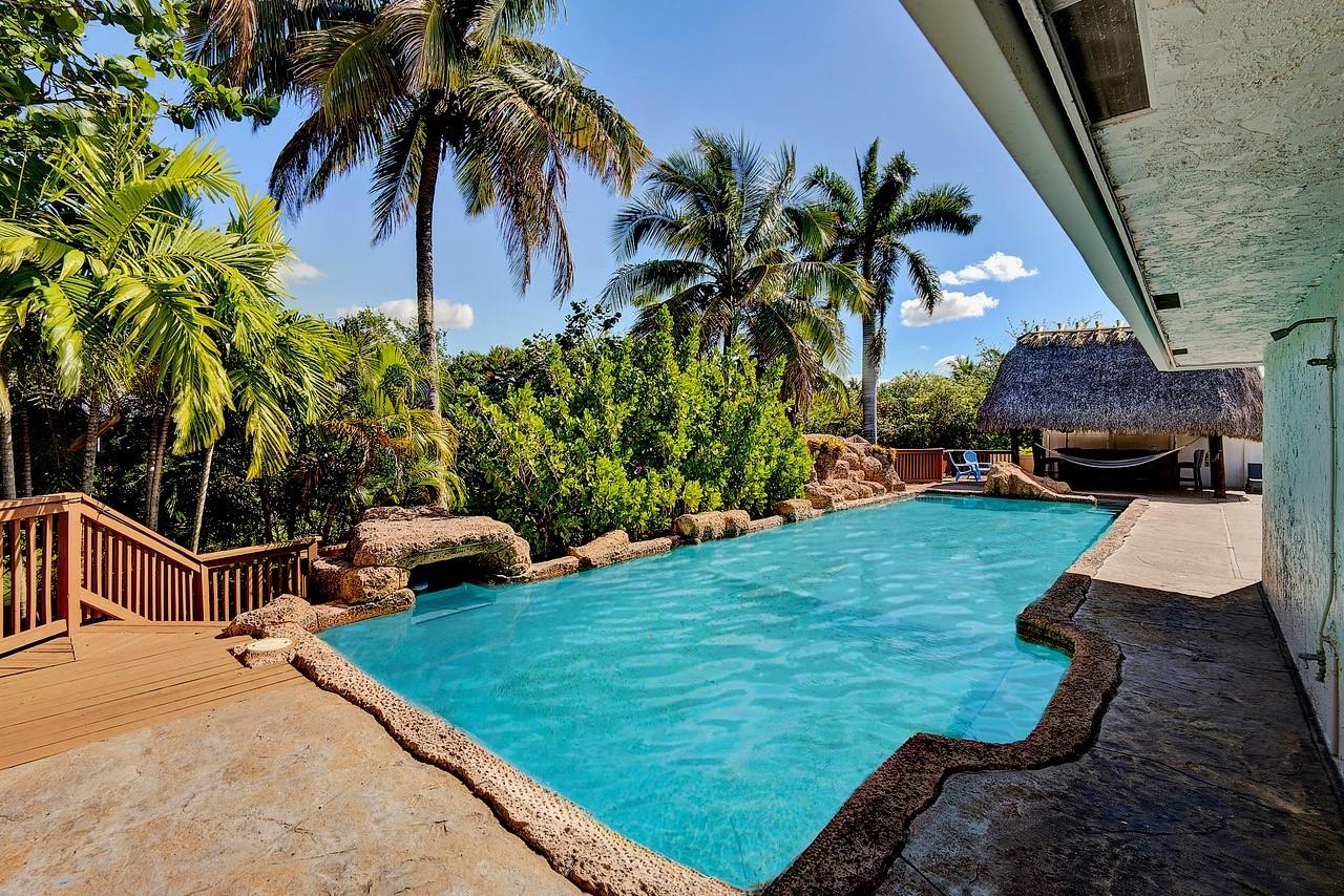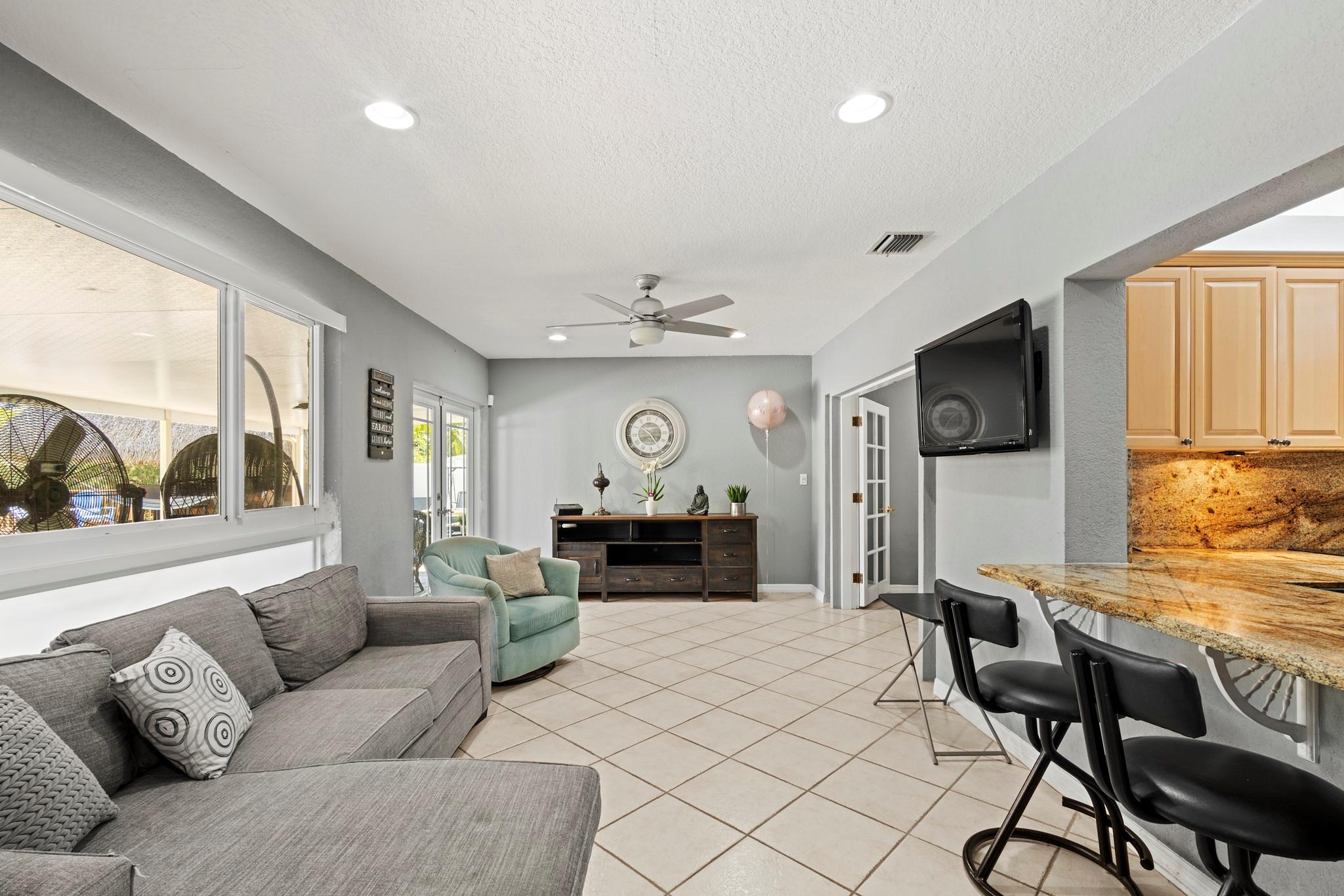 This captivating home sits on a spacious lot without HOA, nestled in a private cul-de-sac, offering room for RV or boat parking behind a privacy fence. With 3 bedrooms plus a den/office, 2 baths, and a bonus room, it's tailored for versatile living. Enjoy outdoor bliss in the Tiki Hut overlooking the oversized pool and patio, ideal for summer gatherings. Inside, find an open layout, upgraded kitchen, and a master bedroom with dual sinks and a shower. Centrally located near downtown Davie and major highways, it offers convenience and comfort in abundance.