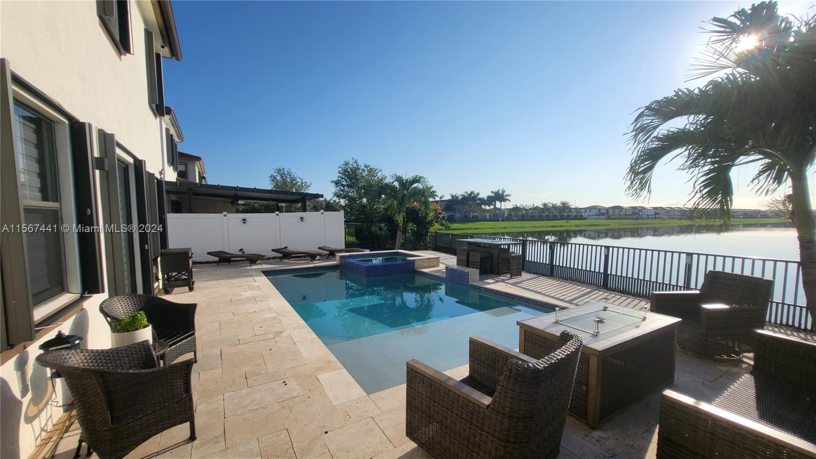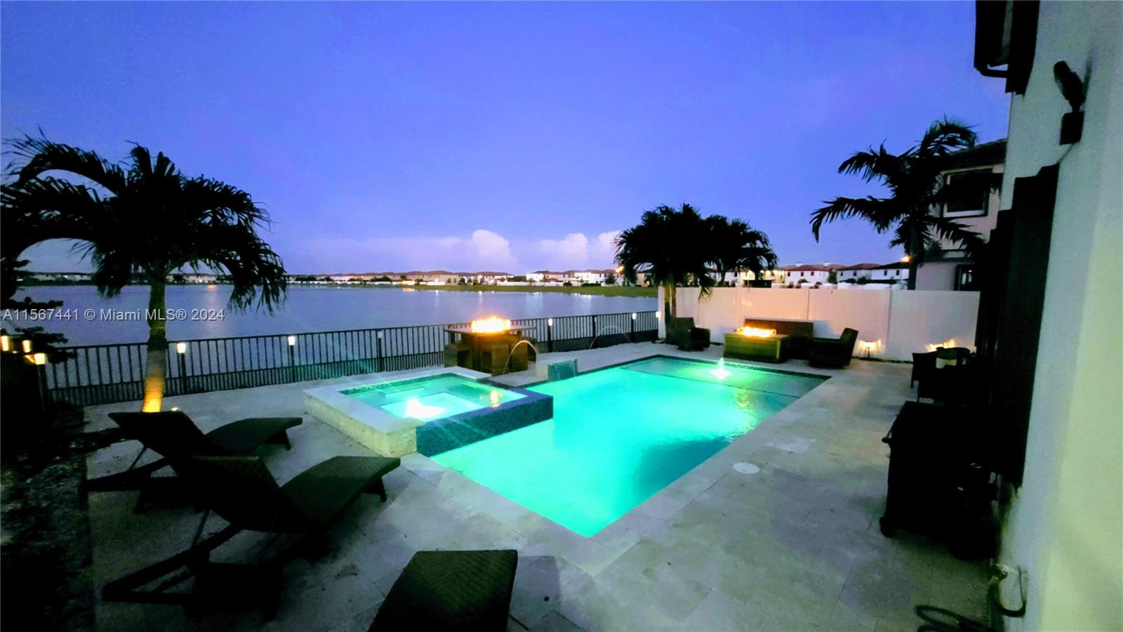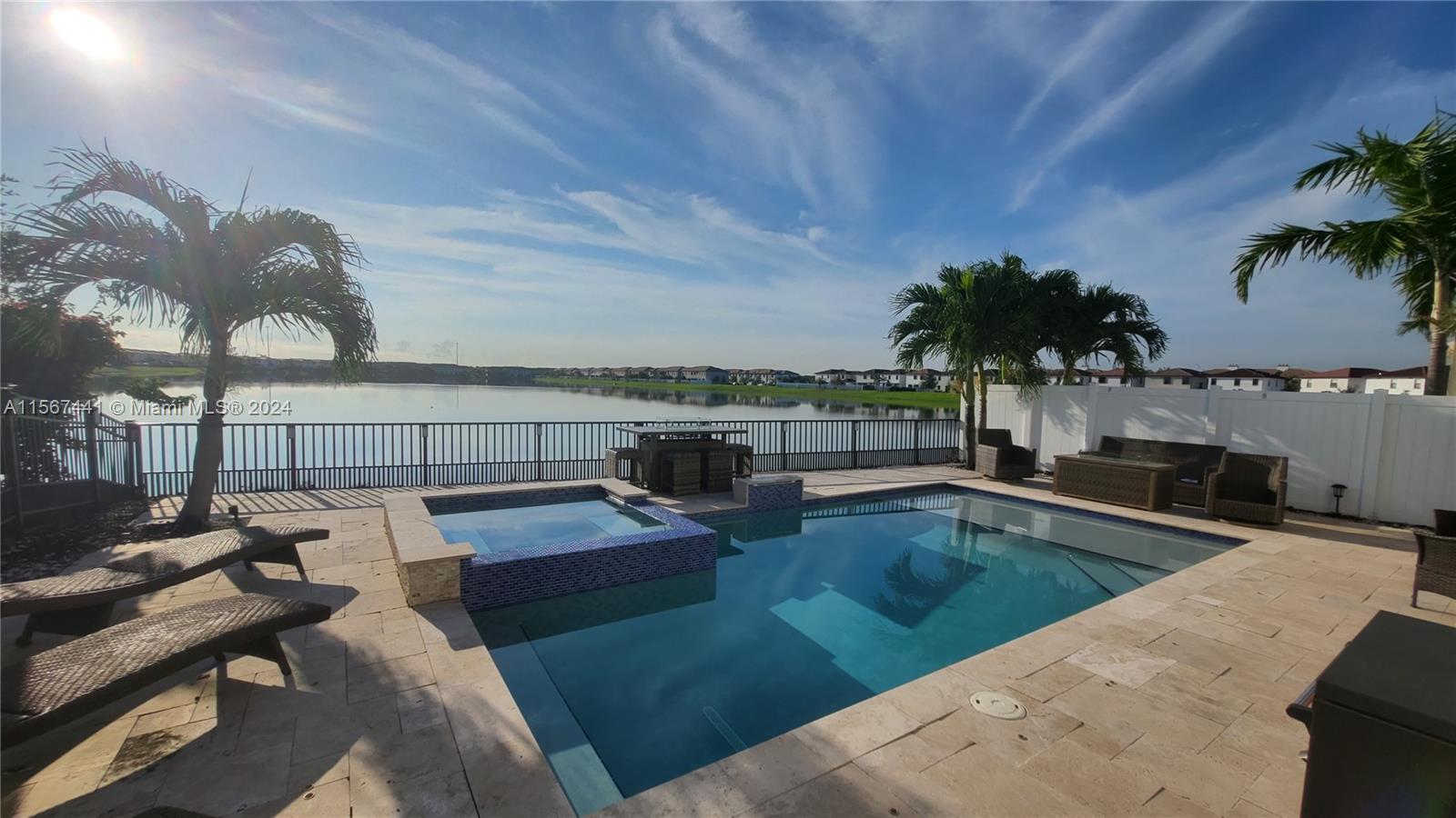 BEST PRICED HOME ON THE MARKET. This magnificent residence boasts an expansive open floor plan adorned with high-quality upgrades and finishes. Its state-of-the-art custom kitchen features Samsung/KitchenAid appliances, quartz countertops, built-in island, & sleek white wood cabinets. Step into your own private backyard oasis complete with a customized heated salt water pool & jacuzzi, offering breathtaking views of the lake. A stunning glass railing staircase guides you through the home, illuminated by modern LED lighting. The first floor is adorned with tiled floors while the second floor features elegant wood flooring, electrical white zebra blinds provide both privacy and style. Other amenities include a two-car garage, security cameras, a Ring doorbell, and a smart home alarm system.