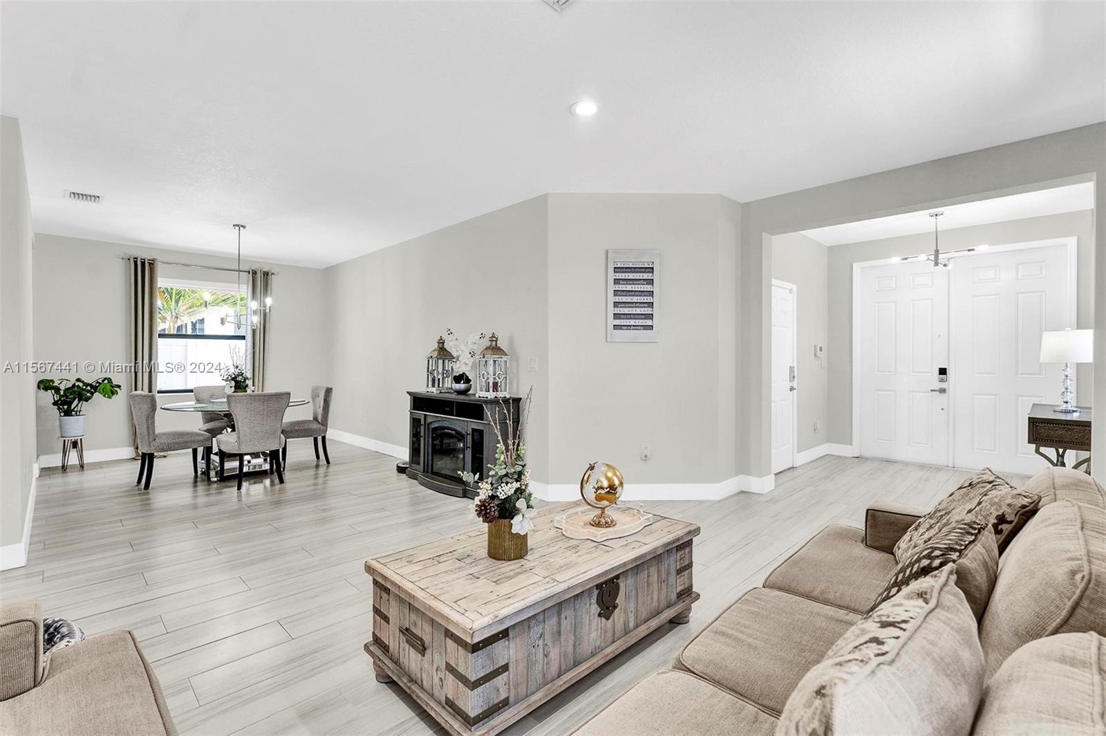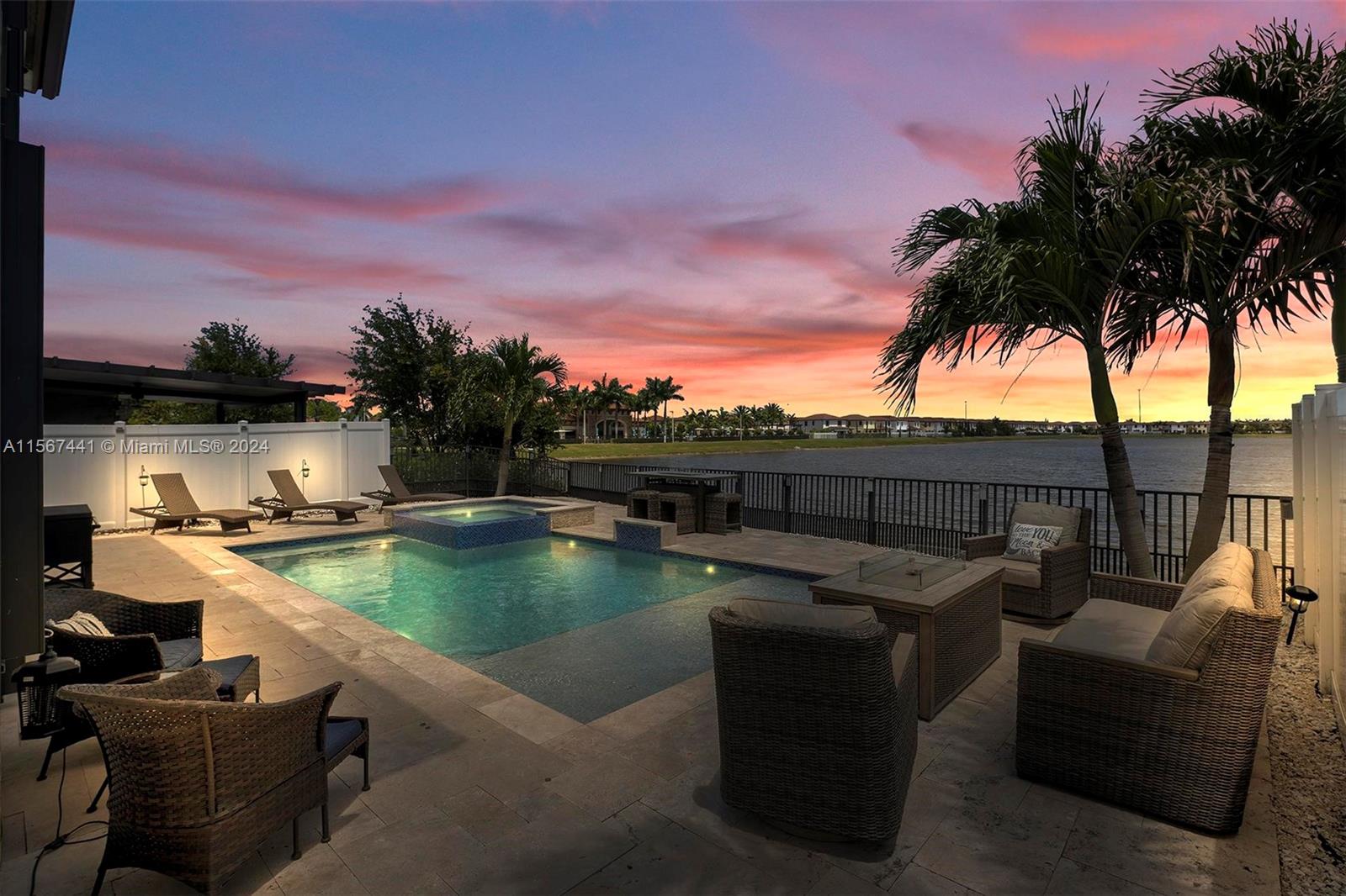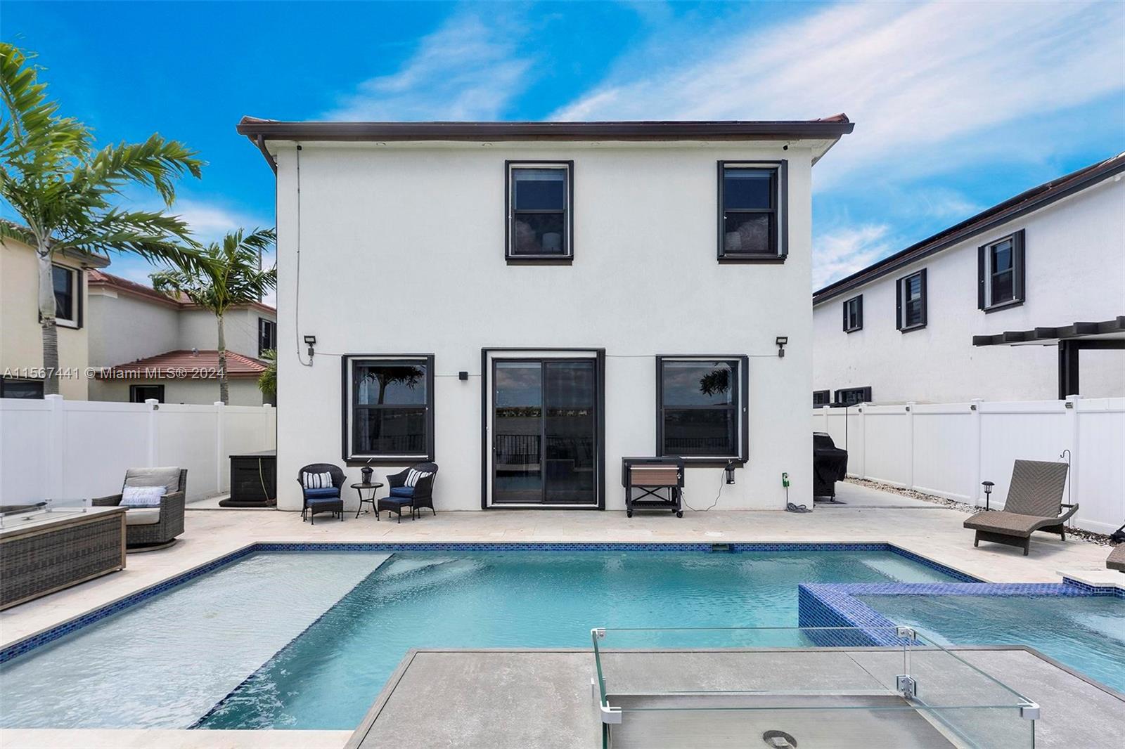 BEST PRICED HOME ON THE MARKET. This magnificent residence boasts an expansive open floor plan adorned with high-quality upgrades and finishes. Its state-of-the-art custom kitchen features Samsung/KitchenAid appliances, quartz countertops, built-in island, & sleek white wood cabinets. Step into your own private backyard oasis complete with a customized heated salt water pool & jacuzzi, offering breathtaking views of the lake. A stunning glass railing staircase guides you through the home, illuminated by modern LED lighting. The first floor is adorned with tiled floors while the second floor features elegant wood flooring, electrical white zebra blinds provide both privacy and style. Other amenities include a two-car garage, security cameras, a Ring doorbell, and a smart home alarm system.