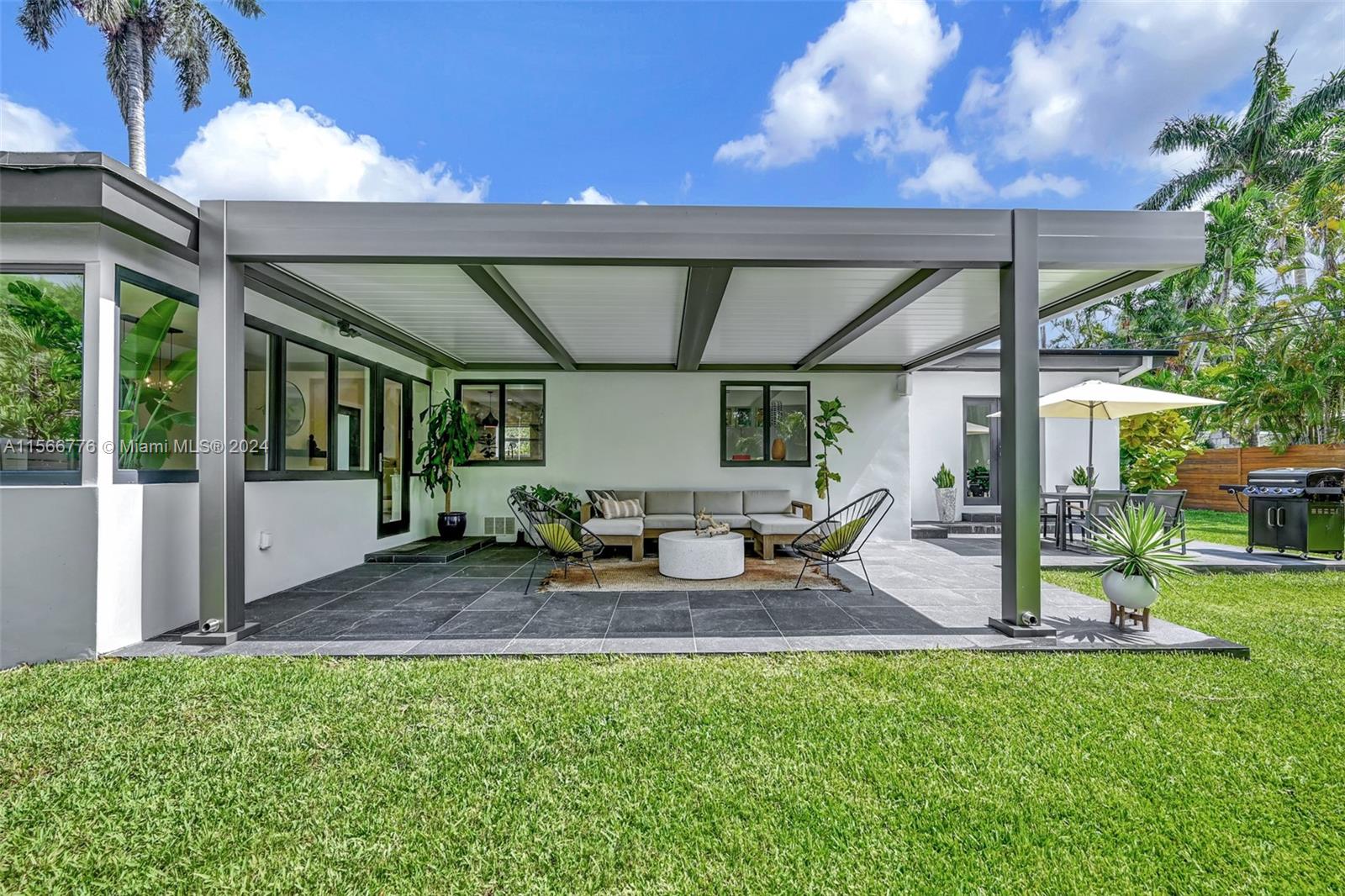 Ease into the prestigious North Bay Island community and discover a remarkable home that encapsulates the essence of modern tropical living. This fully renovated and thoughtfully designed residence epitomizes the concept of open space, offering a seamless flow throughout. Boasting three bedrooms and three bathrooms, this home provides generous living areas for comfort and enjoyment. Each room offers delightful vistas, inviting you to gaze upon the expansive greenspace backyard. Wander outside and relish in the oversized terrace, complete with a remote-controlled louvered pergola, creating the perfect ambiance for relaxation. Every detail in this home has been meticulously attended to, showcasing a commitment to quality and luxury.