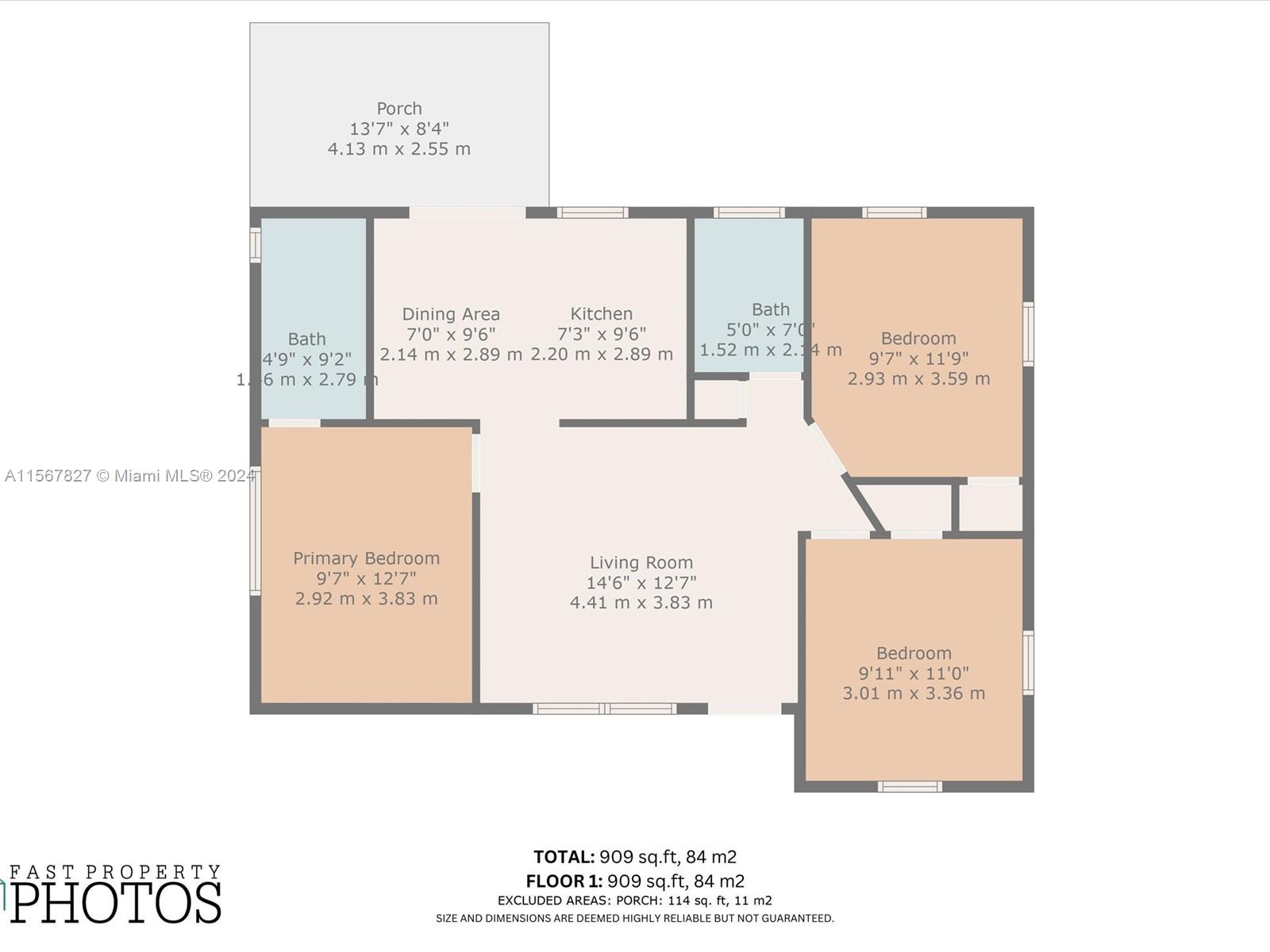 • Жилая площадь: 832 фут² / 77 м²