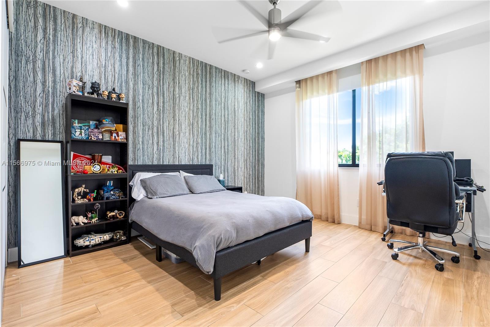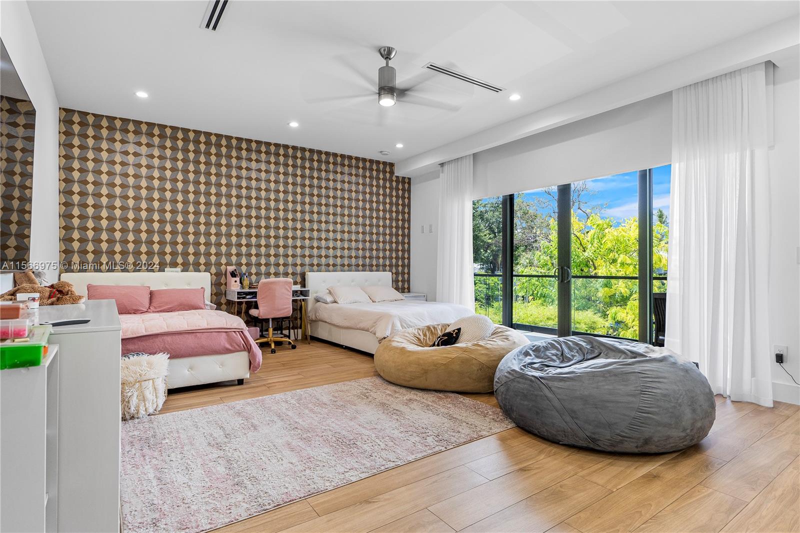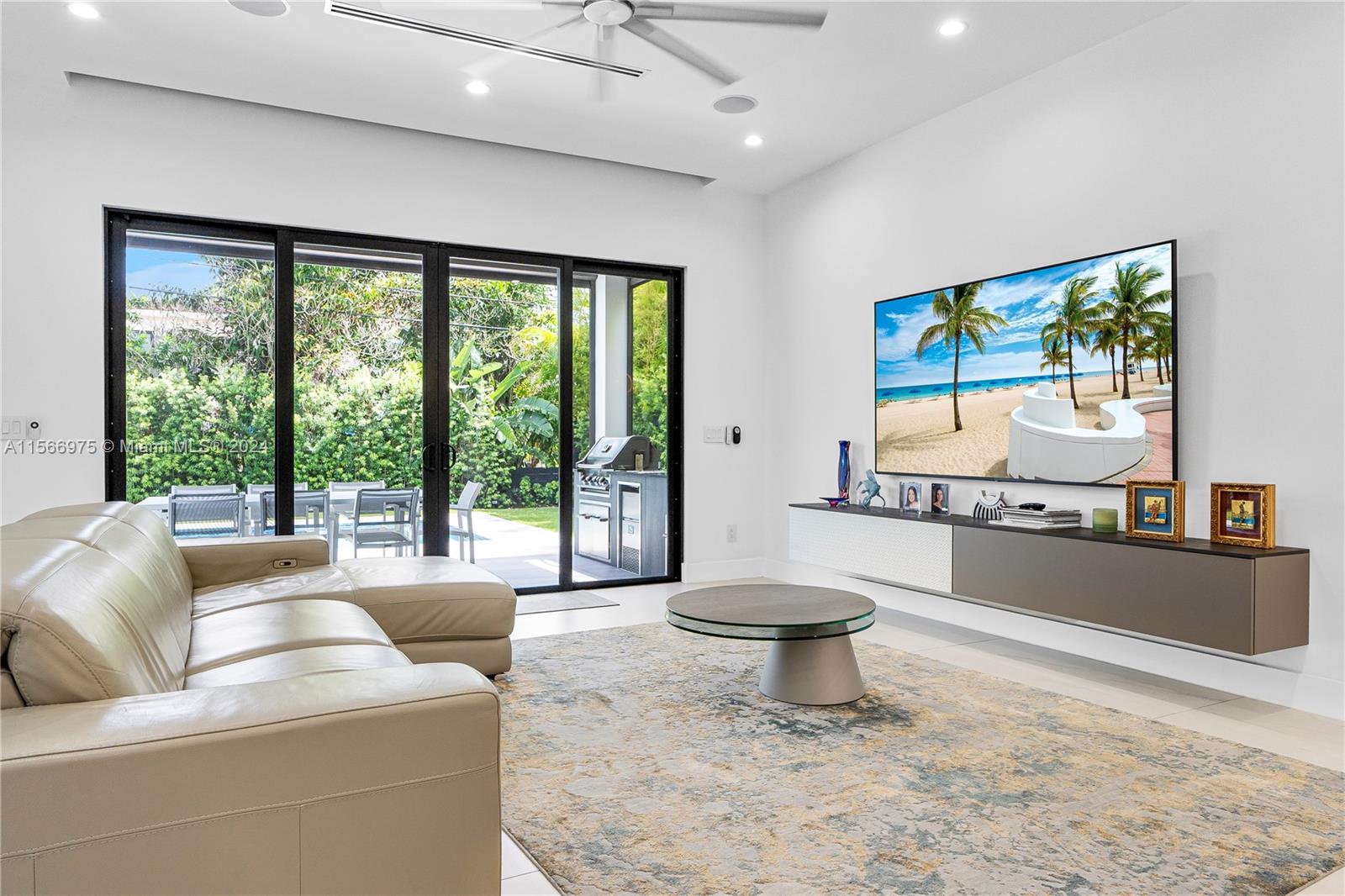 Modern luxury located in the prestigious Victoria Park. The house features a spacious layout of approximately 3,200 sq ft under AC. 4 bedrooms and 4 full bathrooms, with 3 rooms having ensuite bathrooms for ultimate comfort. Entertain with ease in the open kitchen featuring Jenn Air appliances, a gas stove, and a wet bar. Escape to your own oasis in the large, fenced backyard complete with turf grass, an outdoor kitchen with ice maker and a salt water heated pool and spa for year-round enjoyment. Take in the constant breeze from the upstairs balconies. Other features include modern lighting, a wood and glass staircase, separate laundry room, security system with cameras, Sonos speakers, electric curtains and blinds, and an EV car charger.