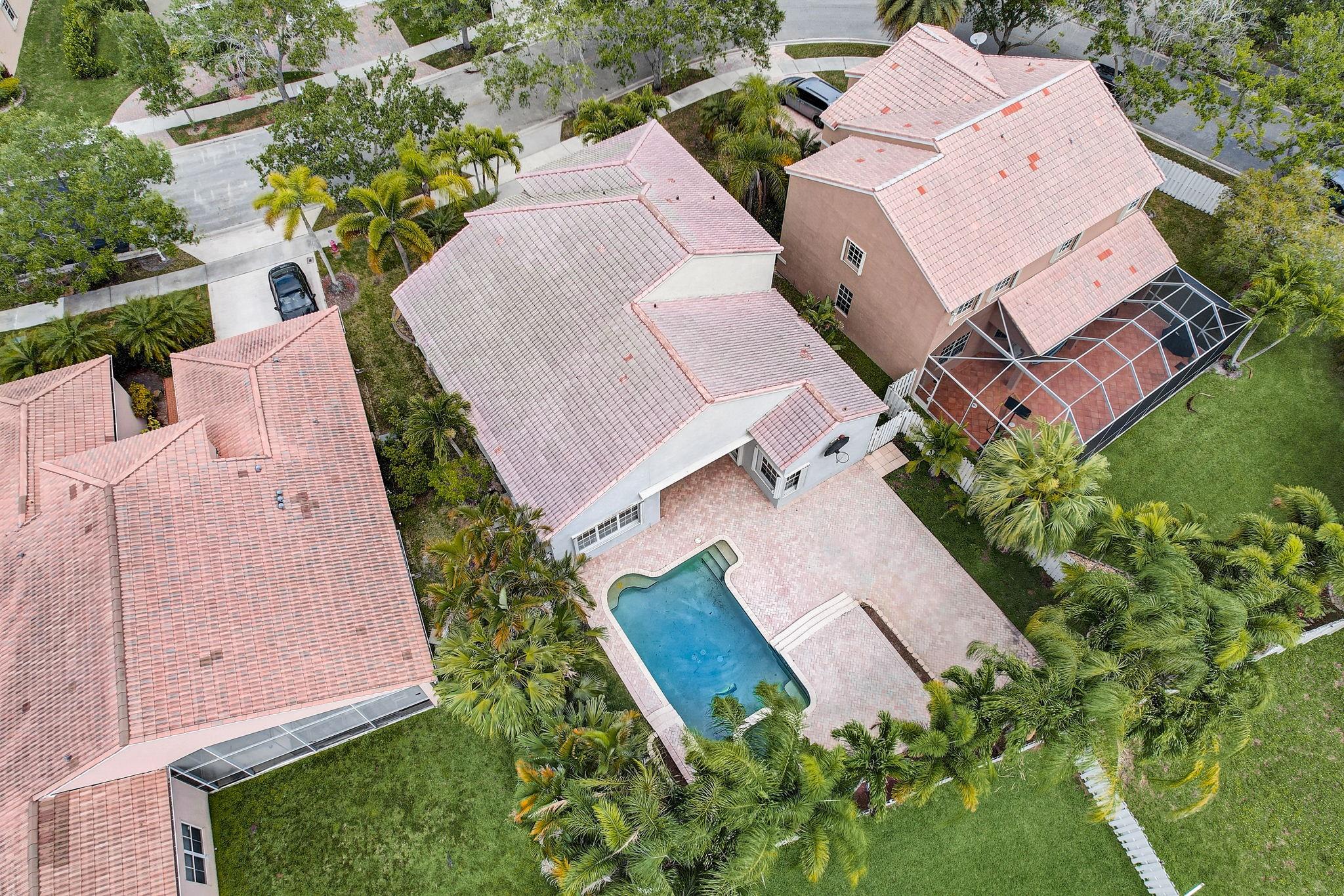 Beautiful pool home in the highly desirable gated community of The Falls! This very spacious home boasts high volume ceilings, tons of windows that flood the property with natural light, large primary suite on the 1st floor with a sitting area perfect for a home office, large remodeled open kitchen with island featuring granite tops, s.s. appliances and modern cabinetry, remodeled bathrooms, separate living and family rooms plus a dining area and a large pool area and deck perfect for entertaining! The Falls is a guard-gated community with coveted A+ rated schools.