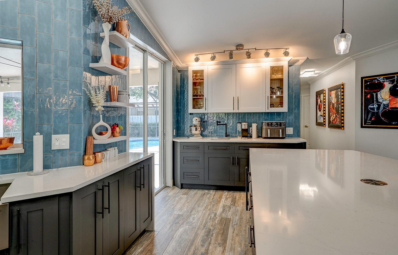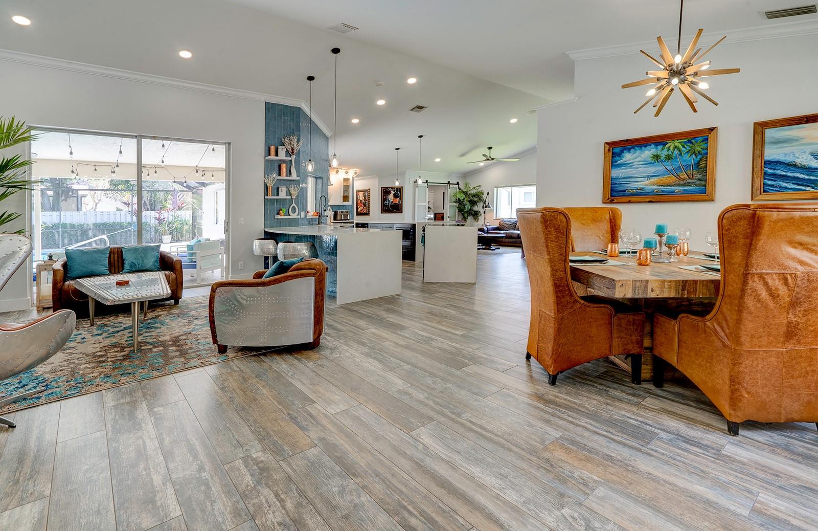 Stunning OPEN FLOOR PLAN 4BR 2.5BA Single Family Home in the heart of Weston. Steps to Weston Town Center. Massive custom kitchen with 2 islands, quartz counters, 5 waterfall edges, 2 sinks and all new appliances including wine fridge. Weathered wood look porcelain tile floors throughout entire home and pool deck. New bathrooms, pool heater and Tesla charger. Selling agent is the owner.