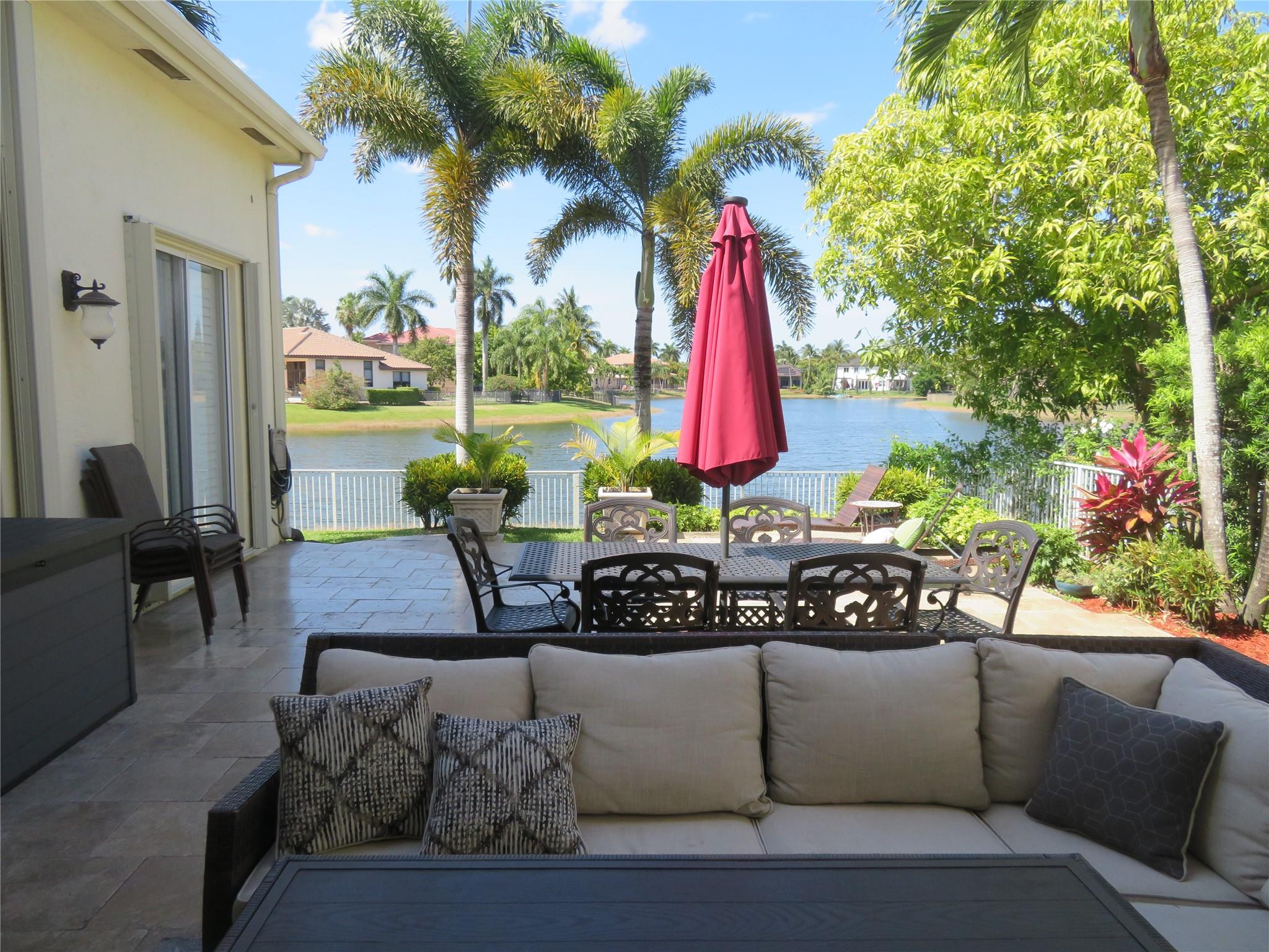 Immaculate 5 bedroom 3 bathroom family home in the gorgeous gated community of Sunset Lakes. The beautiful interior includes remodeled kitchen w/custom cabinets, quartz countertops, double oven, wine cooler, SS appliances, under cabinet lighting, new flooring in main areas, remodeled bathrooms and laundry room, plantation shutters, partial impact windows, accordion shutters for non-impact windows, alarm. Outside you'll find a fully fenced yard w/beautiful lake view to watch amazing sunsets, a multi-level travertine patio, remote controlled retractable awning, and gutters. Community has a beautiful clubhouse full of amenities. This amazing home will not last. It could be yours, but don't wait too long. You have to see it to believe it!