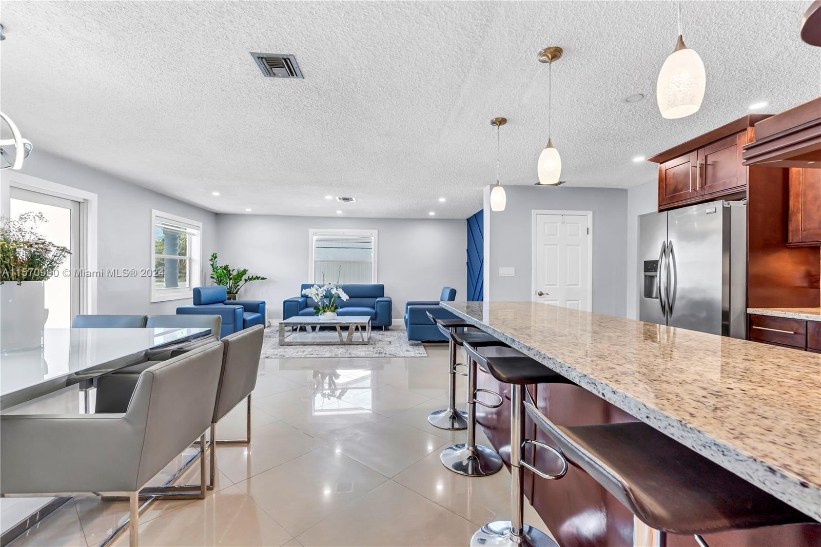 Situated a mere 3-minute drive from I595, on the fringe of Plantation, this home boasts a prime location just 20 minutes from downtown Fort Lauderdale and Hollywood Beach. As part of the esteemed Real Estate Advocate Certified Pre-Owned Program, the residence features a new roof from 2019, fresh Impact Windows, a modernized kitchen, updated bathrooms, and a generously sized, tastefully decorated backyard. Upon entry, you're greeted by oak-hued cabinets complemented by a stone countertop. Adjacent to the kitchen, a large Florida room offers potential for a 4th bedroom conversion. There are 3 stacked bedrooms on the opposite side of the home and primary bathroom having its own ensuite bathroom. This home is move-in ready, inviting you to simply walk in and start living.
