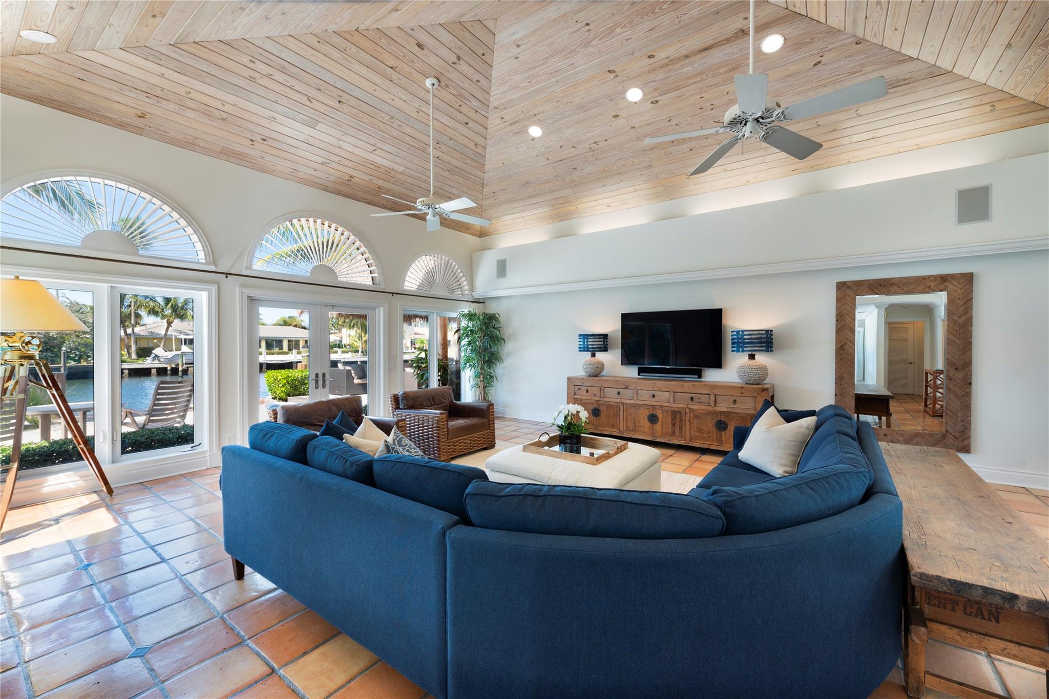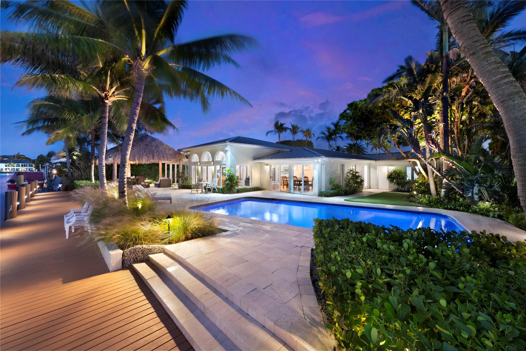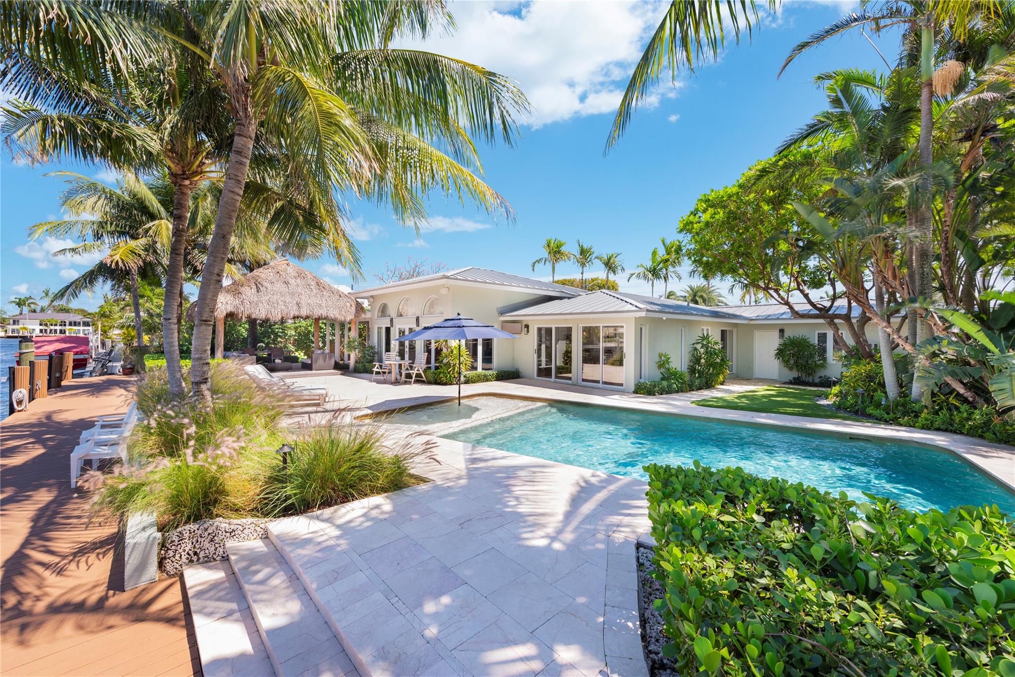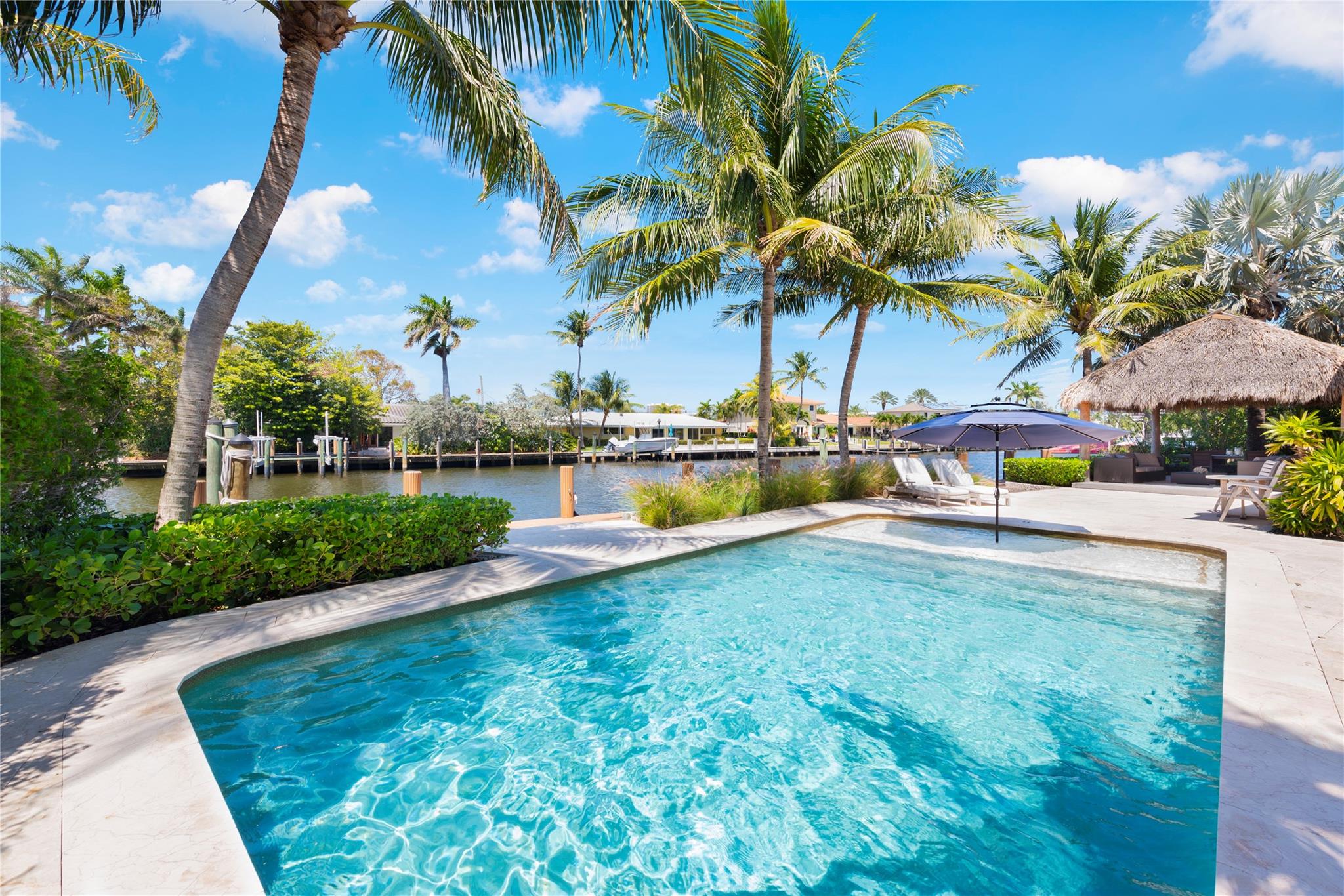 Beautiful Coral Ridge Waterfront home with 100ft of prime deep water. Dock your 80 foot mega yacht. Only 3 lots from the Intracoastal and on one of the widest canals in Coral Ridge. Enjoy one of the best streets in the neighborhood. This spacious 4/3 home has it all. Oversized lot with the most amazing backyard. South Florida at it's best. Boat to breakfast, lunch or dinner. Open Floorplan with vaulted ceilings, impact windows & doors. Great for entertaining and raising a family. Resort style heated, saltwater pool with sun shelf, marble pavers and lush professional landscaping. Deep water dockage with dolphin pilings and 50amp power. New roof and many other recent updates & improvements. Walk, bike or golf cart to beach, restaurants and shops. Priced to sell. Won't last long.