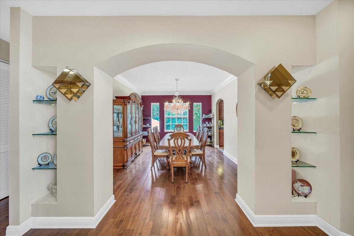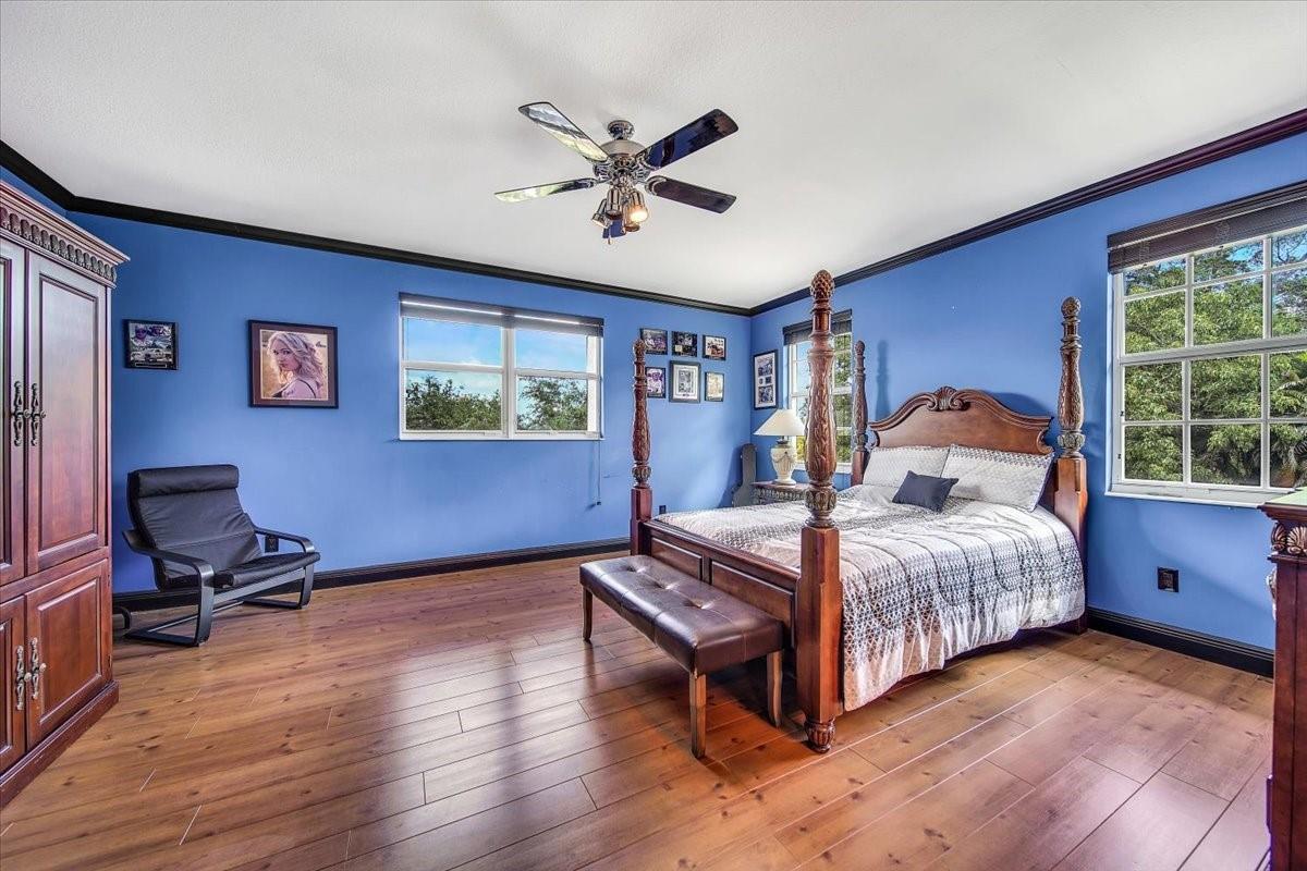 This expansive residence offers approximately 6,300 square feet of living space on over an acre of land with no HOA. Maintained by its original owner, the home features soaring 20-foot ceilings in the living room and family room, with a functional fireplace adding warmth. The spacious kitchen and family room are perfect for entertaining, while the spacious loft offers extra room for relaxation or activities. 5 large bedrooms, each accompanied by its own ensuite bathroom, ensuring comfort and privacy for every member of the household. Master suite is located downstairs with a sitting area, along with 1 other bedroom. Extra large 3-car garage with storage and workshop space, Impact windows, and a large pool with a spa. Home is on a cul-de-sac shared with only 2 other homes on a private road