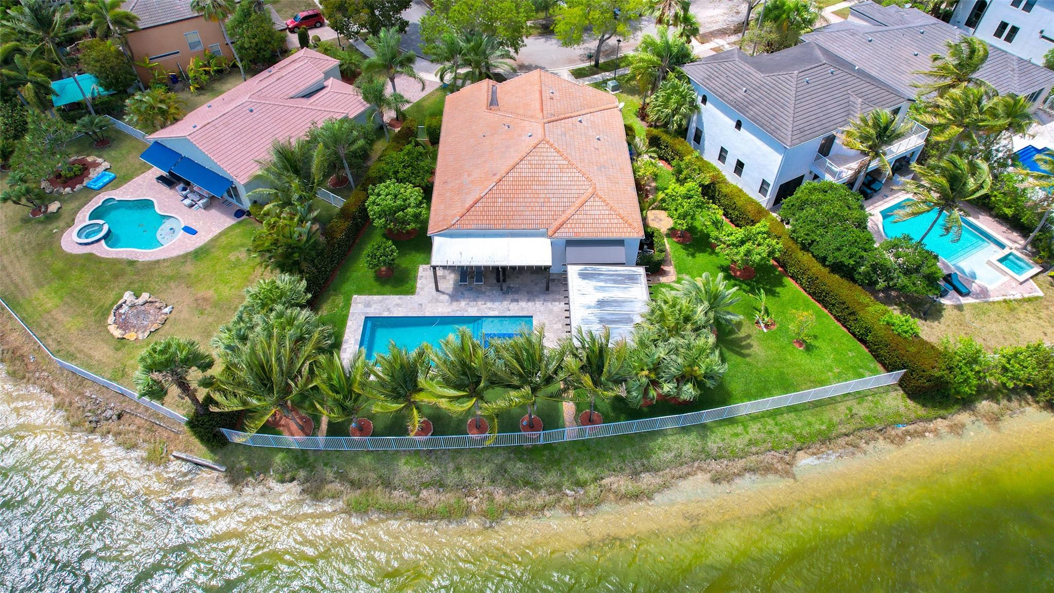 Welcome to an exquisite lakeside retreat boasting porcelain floors, remodeled bathrooms, impact windows& doors, a modern kitchen with quartz countertops with S.S appliances, new A/C units, new thankless water heater, oversized backyard with 14,898 SF lot full of lush landscaping and fruit trees. Take in the endless lake views from every angle. Step outside to discover an entertainer's paradise, featuring an outdoor kitchen, two backyard pergolas, and an oversized pool with a Jacuzzi. With its spacious lot and luxurious amenities, this home offers the perfect blend of elegance and relaxation, creating an unparalleled living experience.