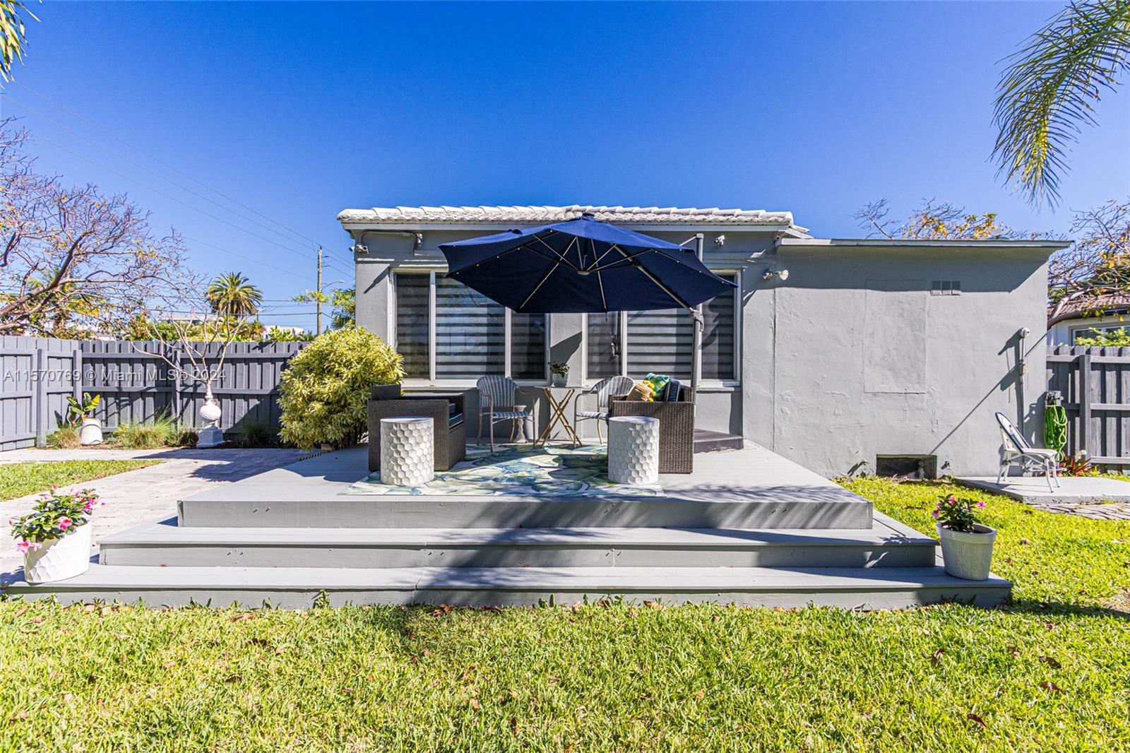 Step into this charming 1956 residence that offers the perfect blend of comfort, style, & convenience! This home is a true gem, with an abundance of natural lighting & original wood floors in the living room, dining room, and both bedrooms. An enclosed private driveway and a spacious fenced-in backyard, you can enjoy the Florida sunshine in peace & privacy. The gallery-styled kitchen is newly updated, featuring a unique polished quartzite countertop & matching backsplash, all new appliances. The stunning copper lighting over the newly installed sink & faucet set adds a touch of elegance. In addition to the polished wood floors, the living room features a wall of shelving that includes a beautiful faux fireplace that is a must-see. This home is truly a dream come true!