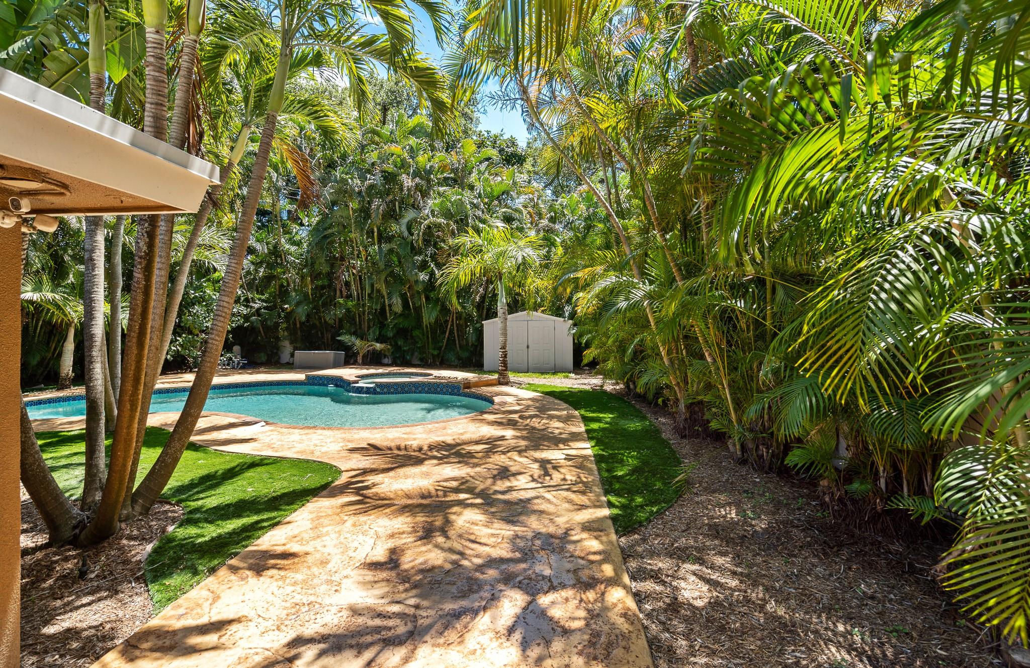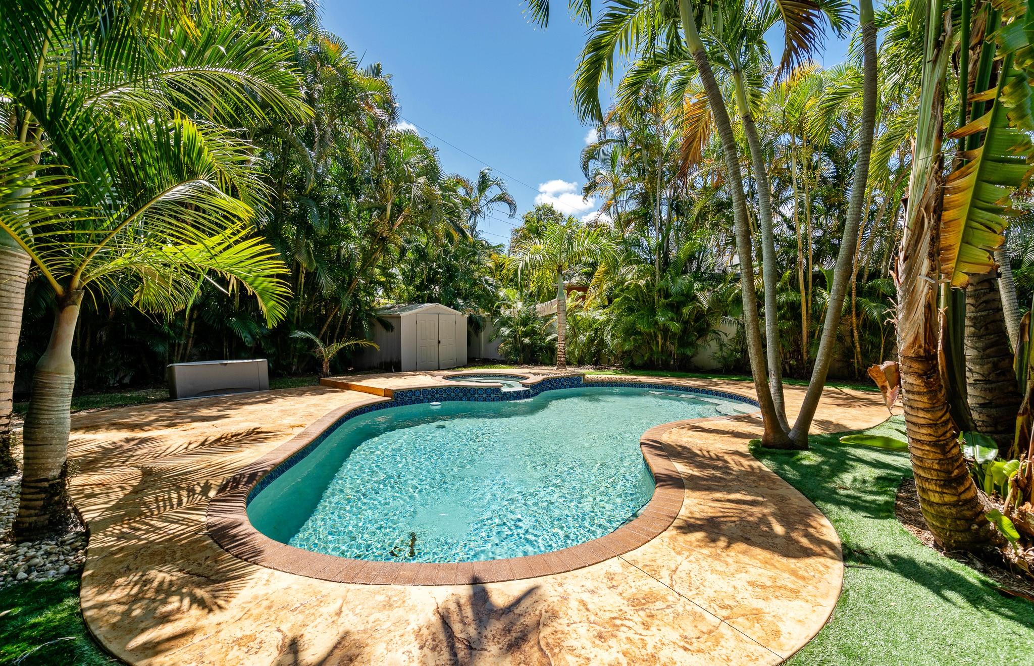 Welcome to a tropical oasis with a lush, back garden paradise. The oversized driveway leads to a spacious 2 bed/1 bath single family home with a gorgeous pool. The house is bright with large picture windows. It has impact doors, hurricane/plantation shutters, blinds and recessed lighting. New kitchen appliances. New ceiling fans. Granite countertops. A Florida/media room. Laundry room. Hot water heater and updated electric (2023). The roof is 2012 but was recently resealed with 3" insulation over the living space. AC inside is 2023 (outside 9 years old). AC motor replaced 2023, sprinkler system. The house was completely reframed with new wood/drywall. It's just a short walk to Snyder Park, minutes to Fort Lauderdale Beach and all the shopping, restaurants and bars on Las Olas. Come see it!