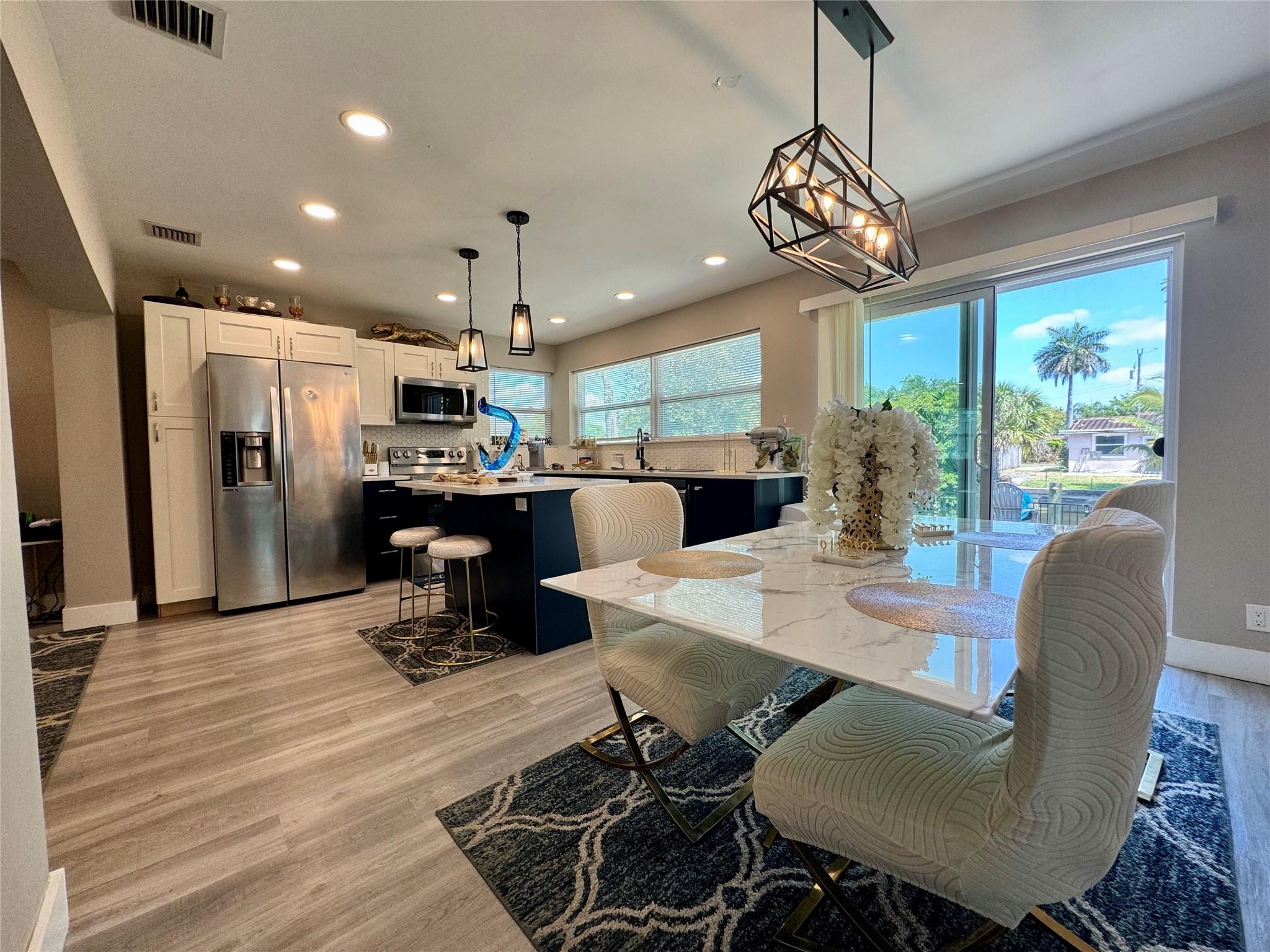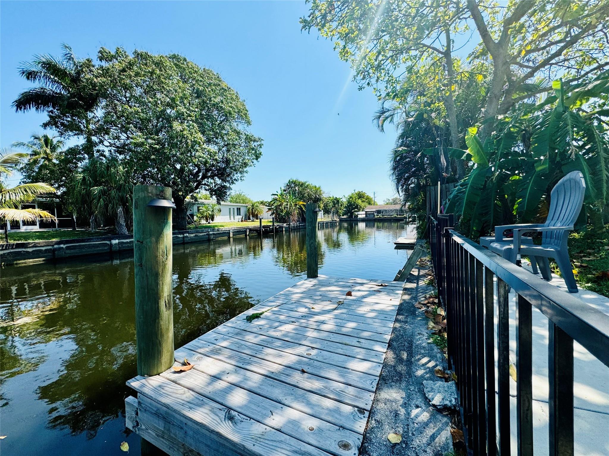 Opportunity is calling on this Royal Palm Acres 3 bedroom 3 bathroom canal front home with private dock, ocean access with fixed bridges, 2 master suites, a 1 car garage, and so many updates. Vinyl Flooring throughout. Impact Windows & Doors throughout. Recessed high hat lighting in living and kitchen areas. Kitchen features stylish 2-tone cabinets with white shaker style uppers and blue shaker style lowers. Mosaic Tile backsplash. Complementing white sparkling quartz countertops with matching middle island for extra kitchen storage. All bathrooms have been updated with marble look tile and vanities to match the kitchen style. Roof installed 2020. AC installed 2021. Mango, Avocado and Banana Trees. The front of the home does face the back of commercial properties.