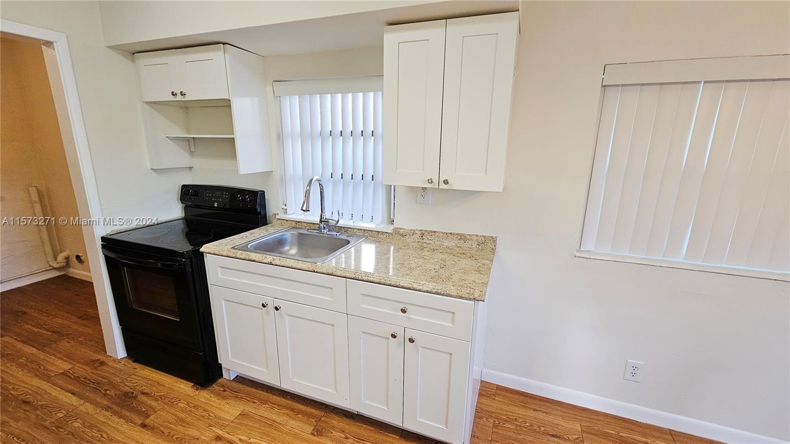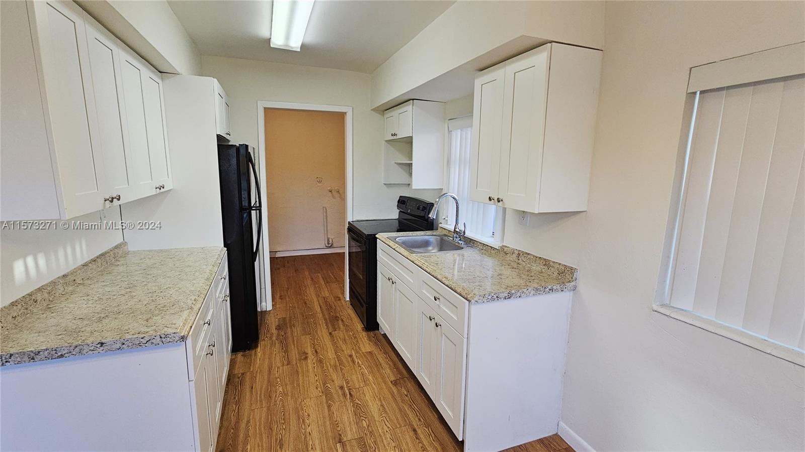 Great opportunity in West Park! Awesome original layout 3 bedroom and 1 bath home. Recently updated white wood kitchen cabinets, granite counters and appliances. Recently installed air conditioner and water heater. Newer laminate floors and carpets in bedrooms. Crisp and clean, freshly painted interior and exterior. Spacious living areas. Separate utility room that is the perfect space for a washer/dryer or adding a 2nd full size bathroom. Large and completely open back yard with plenty of room for a future addition, terrace or a large swimming pool. Ample parking area for an RV or boat. No HOA. Centrally located in a great neighborhood.