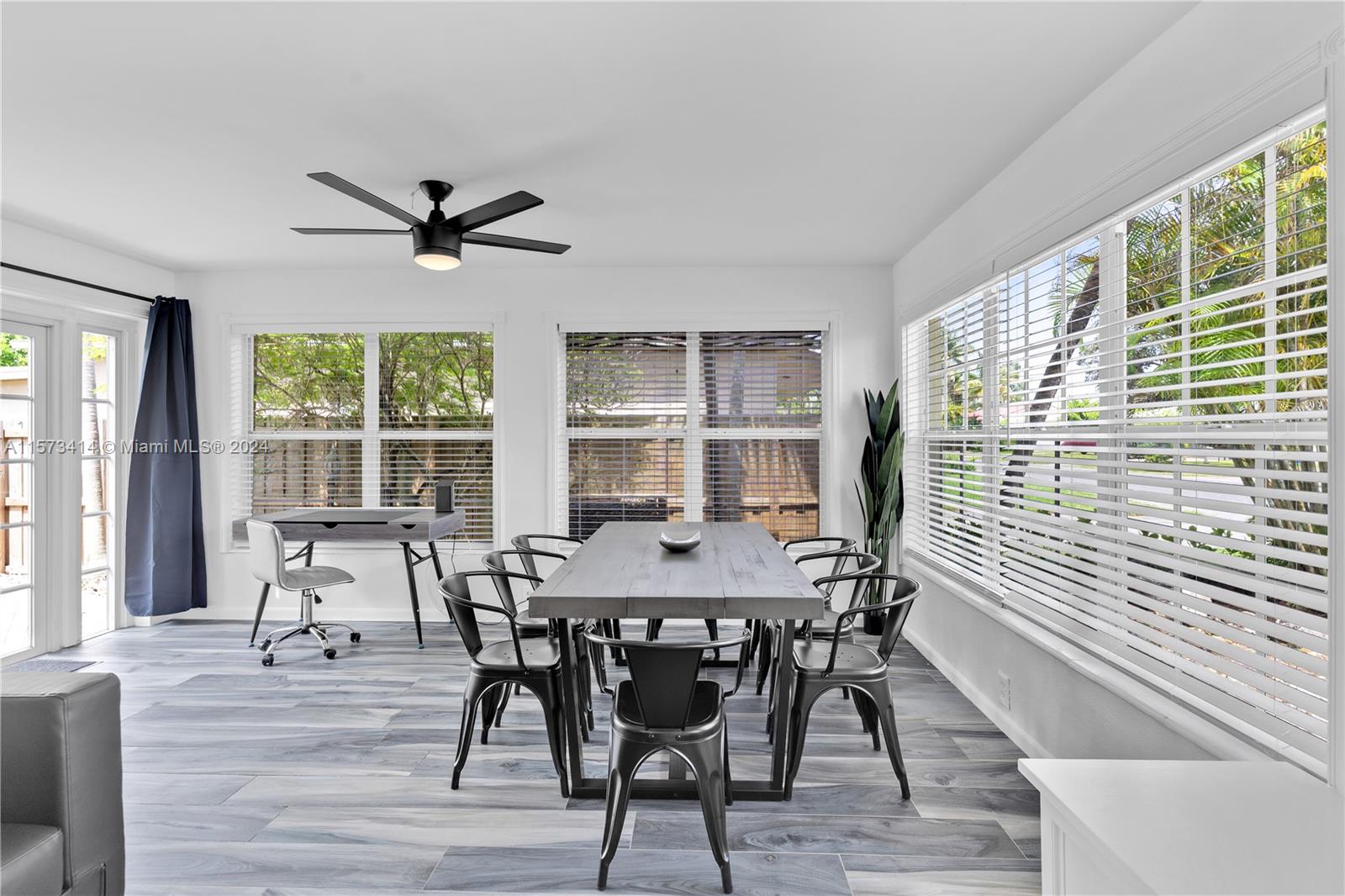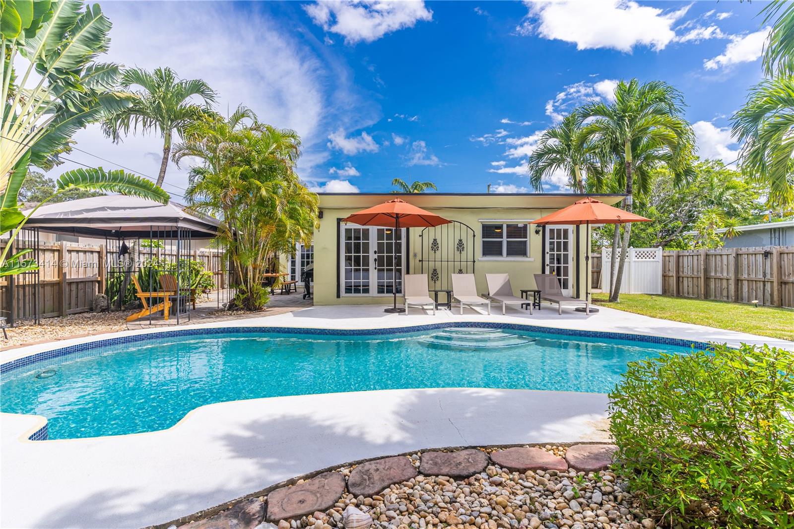 Welcome to your dream home! FURNISHED, and MOVE IN READY, renovated 2 bedroom, 2 bathroom gem boasts a garage and bonus room! Offering the perfect blend of comfort and style.Step inside to discover a spacious living room adorned with french doors, leading to a versatile bonus room that could effortlessly serve as a 3rd bedroom. the!Enjoy the luxury of walk-in closets in both bedrooms, providing ample storage. Outside, a tropical oasis with Pool. Just minutes from the beach, major highways, and an array of shopping and dining options, this home offers the perfect blend of tranquility and convenience. Don't miss out on the chance to call this paradise your own. Schedule a showing today and make this your forever home! Call Listing agent for showings and more info.