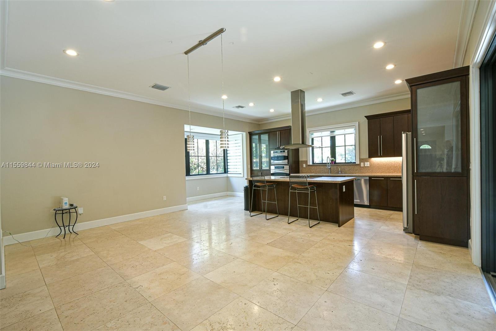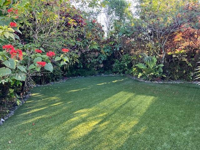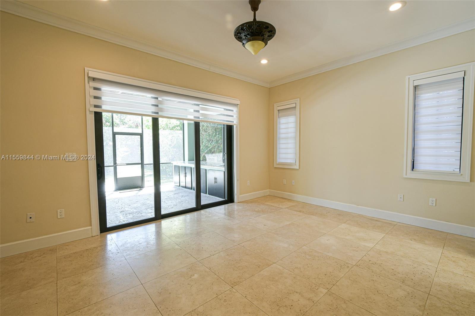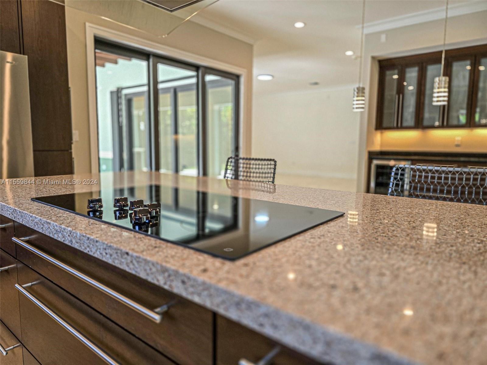 You do not want to miss visiting a gorgeous 3 beds 3 bath home. No detail spared, 10' high ceilings w/crown molding, marble, stone floors, wood baseboards, windows & doors impact resistant. Front & back doors are Mahogany. Large closets. Eat-in Kitchen, SS appliances, pantry. All windows have Zebra blinds, bedrooms also have black-out blinds. Dining has Bar, Mini-fridge & with Living & Master bedroom have slide-away impact glass doors. Open to enjoy covered/screened-in porch, then step outside to open-air seating area facing beautiful lush worry free back garden w/orchids, flowering bushes, Lychee tree, Astro-turf, automatic sprinkler watering system, and an outdoor shower. 1-car garage with auto/gate & Tesla car charger. Driveway for 6 cars. Ring doorbell, Lights/Cameras around perimeter.