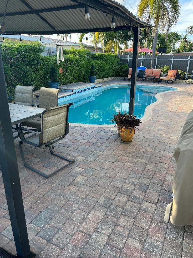 Beautiful single-family home, move in ready. Within a mile of I-95 and shopping: from the big box stores, restaurants, Costco, Publix, parks, and the beach. The house has been updated with the following renovations: - New floors throughout - New baseboards - Stainless Steel Appliances - New paint inside and out - In-ground pool - New hurricane impact picture front window - New patio sliding back door - New asphalt driveway - AC is 4 years old - New Rinnai tankless hot water heater installed 2023 - New patio pavers - New GE washer and dryer - Front and Back rain gutters - Fenced in backyard - Roof was replaced 2011 - 10' x 12' Gazebo included This is the perfect starter home that has all the amenities.