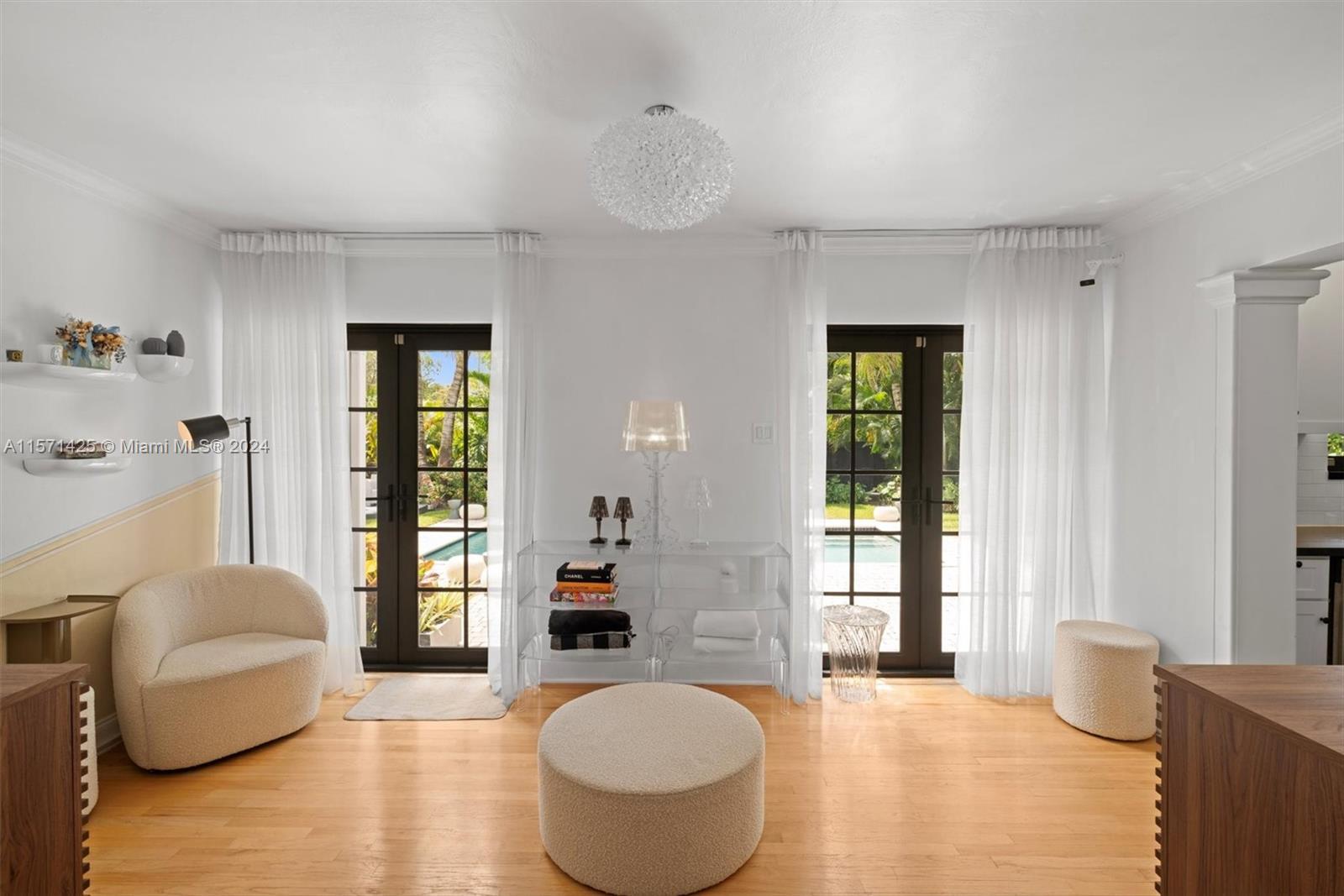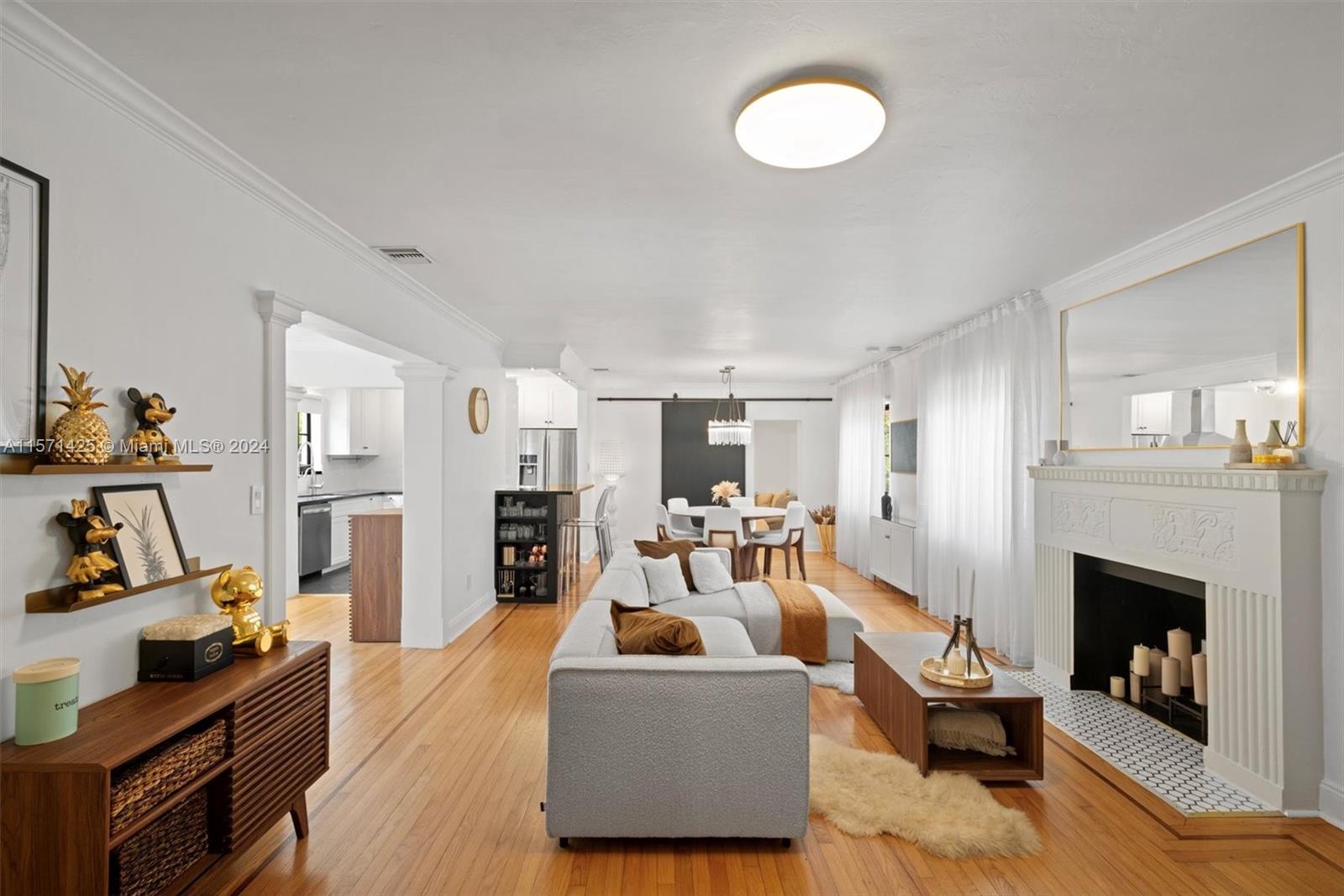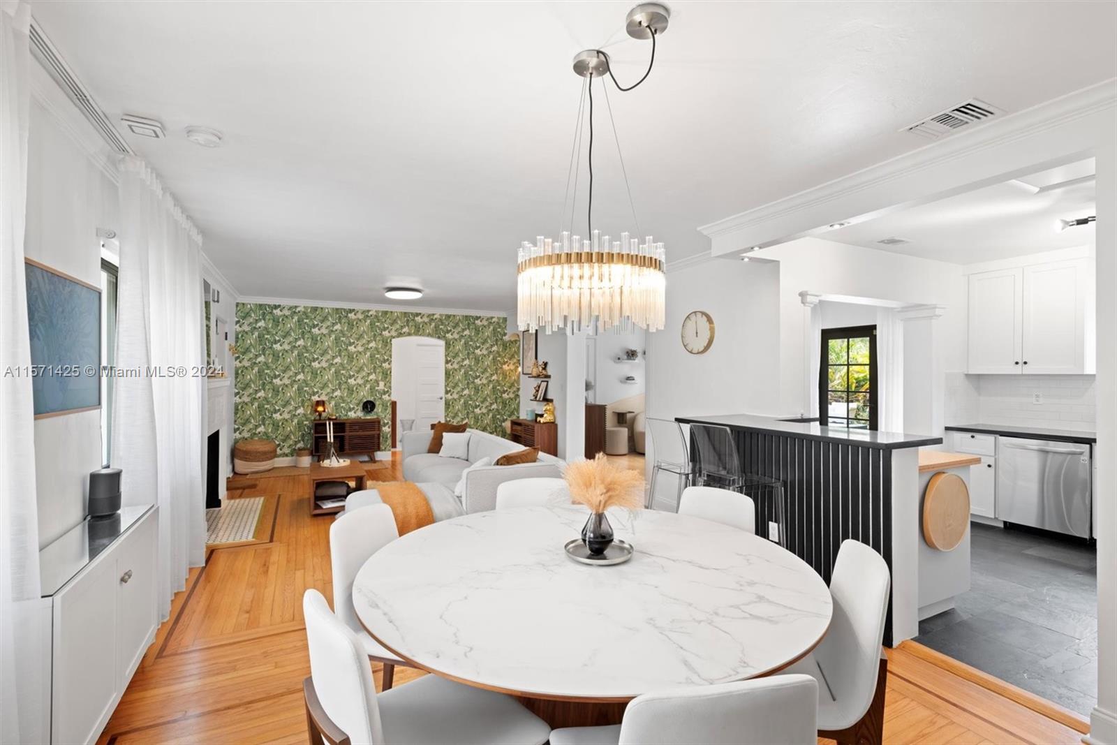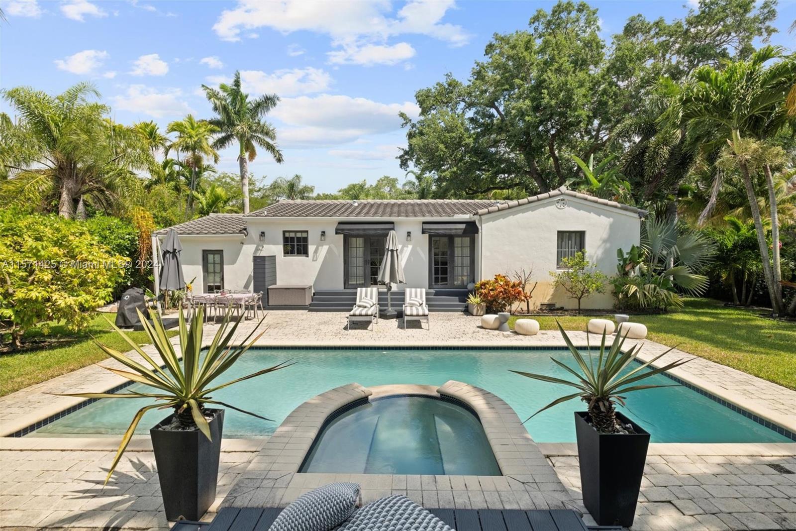 Spotless 3 bed/2 bath pool home in the heart of Miami Shores. Don't look any further! This home offers super charming interior features combined w/ modern details. Hardwood floors, fireplace, updated kitchen w/ stainless steel appliances and black granite countertops. Newer roof and A/C, impact windows, and French doors leading to the tropical back yard and pool area. Corner lot! Every detail of this home has been thoughtfully considered. Pristine saltwater heated pool w/hot tub surrounded by breathtaking landscape and tropical fruit trees, ideal for entertaining, completely fenced in w/ outdoor shower and plenty of storage. This home is a true sanctuary. Amazing location offers walking distance to shops and restaurants. Best schools!